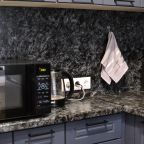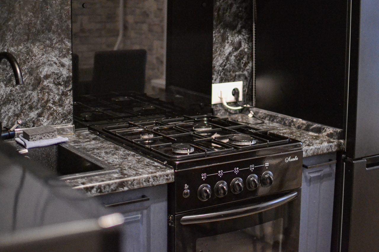 Кухня оснащена необходимой посудой и техникой: СВЧ-печью, холодильником, электрочайником, газовой плитой, духовым шкафом. Перекусить вне стен дома можно в кафе «ОтVинта».