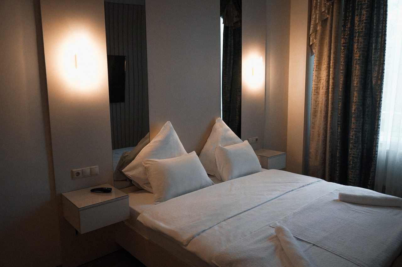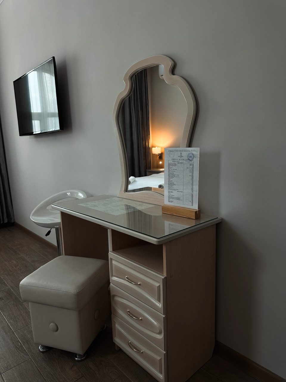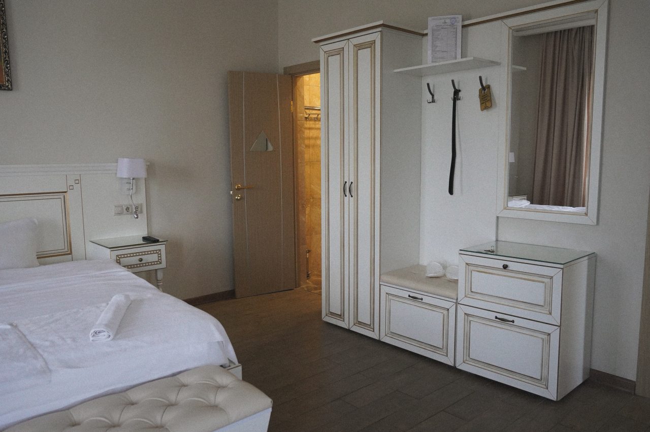 Отель Пирамида очень понравился. Понравилось все, все красиво и чисто. В первый раз останавливались в двухместном номере. И он хорош. Во второй раз бюджетных номеров не было, поэтому бронировала улучшенный люкс. Ну этот номер выше всяких похвал. Просторный, чистый , уютный, с красивым видом из окна на коттеджный поселок