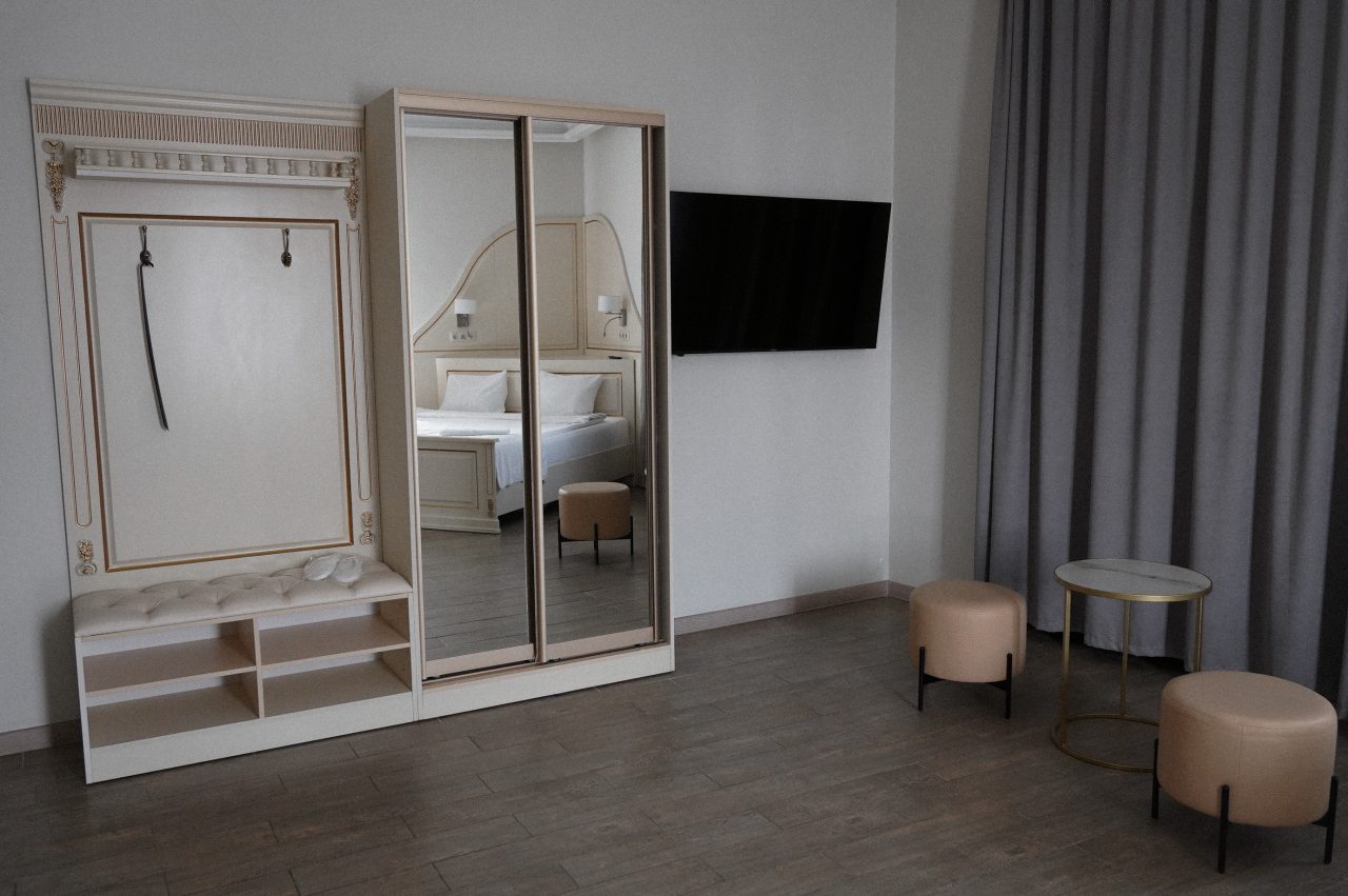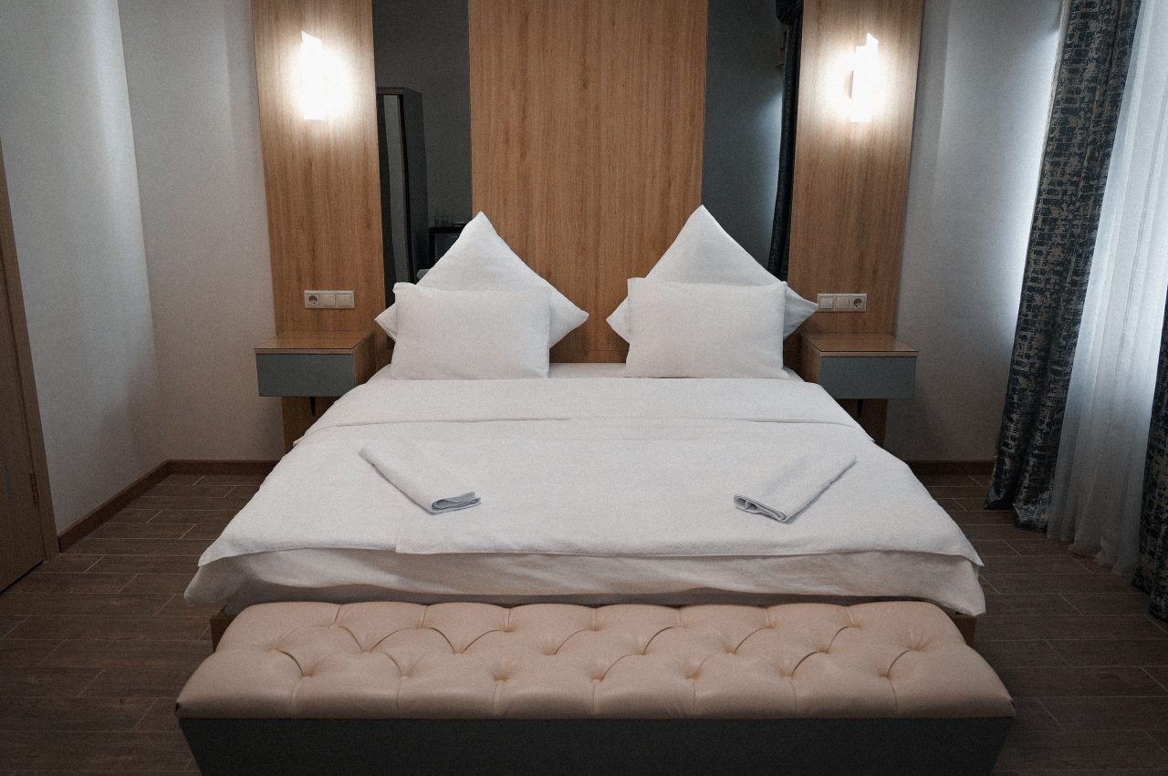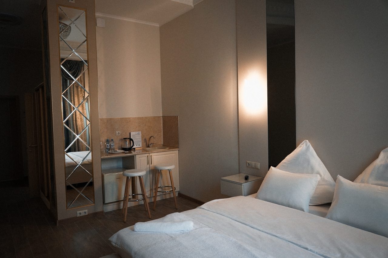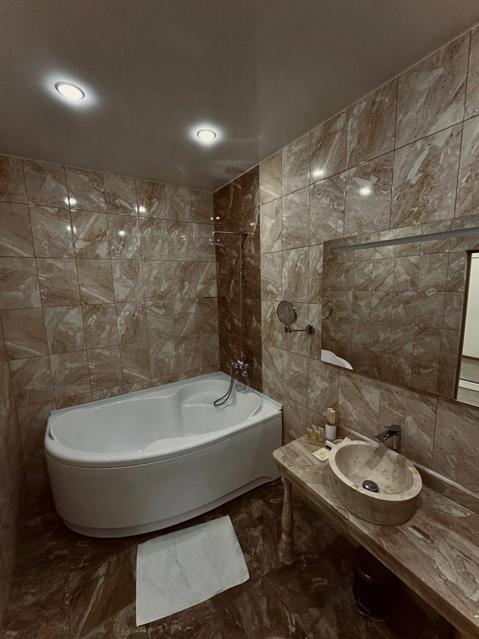 Отель Пирамида очень понравился. Понравилось все, все красиво и чисто. В первый раз останавливались в двухместном номере. И он хорош. Во второй раз бюджетных номеров не было, поэтому бронировала улучшенный люкс. Ну этот номер выше всяких похвал. Просторный, чистый , уютный, с красивым видом из окна на коттеджный поселок