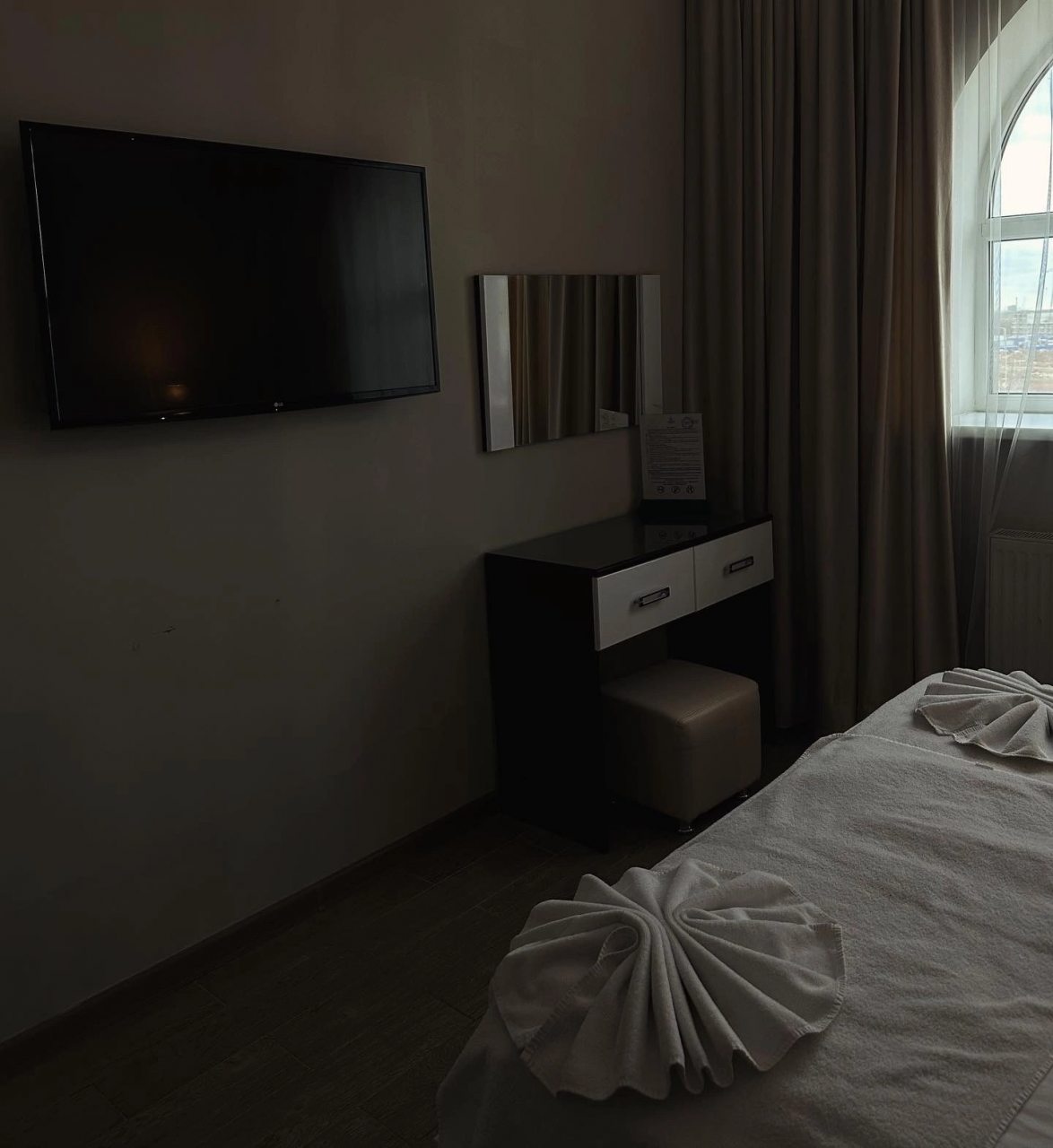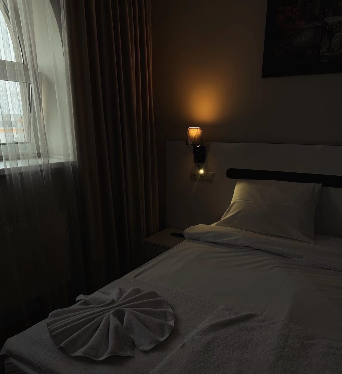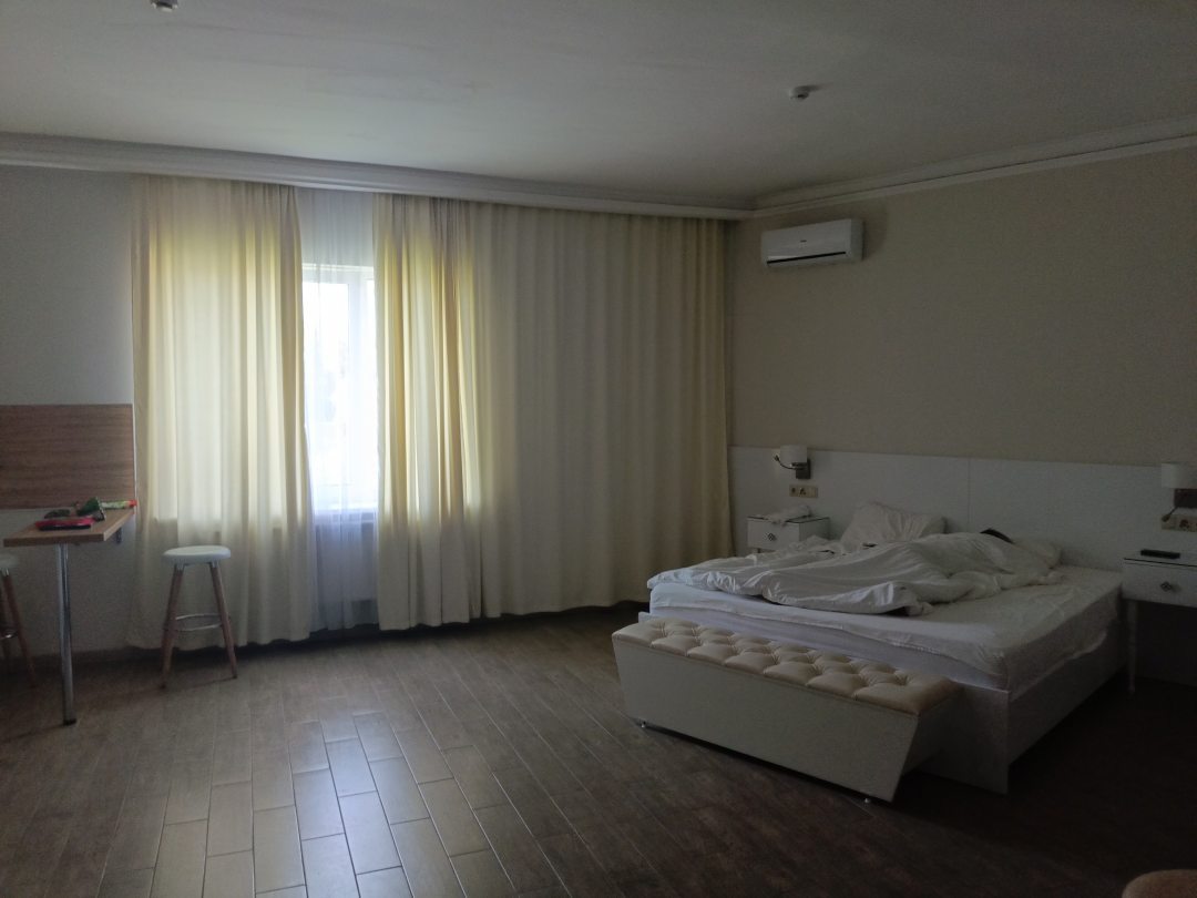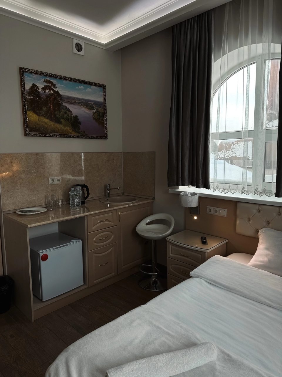 Этот отель подойдёт для путешествующих на своём авто, есть отличная стоянка ( открытая, но под камерами ), лифт в отеле работает. Отель опрятный , но есть нюансы по номеру. .Номер огромный, всё необходимое имеется. Есть претензии к качеству гигиены : чайничек грязный, постельное бельё прям сильно застиранное и уже расползается на глазах ( видимо от изрядного колличества отбеливателя ). По моей просьбе принесли новый комплект