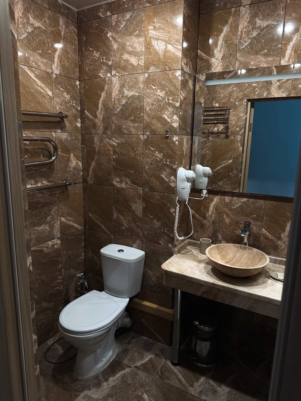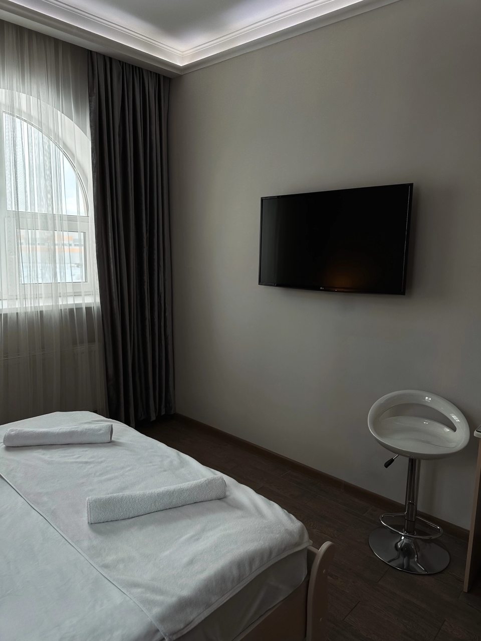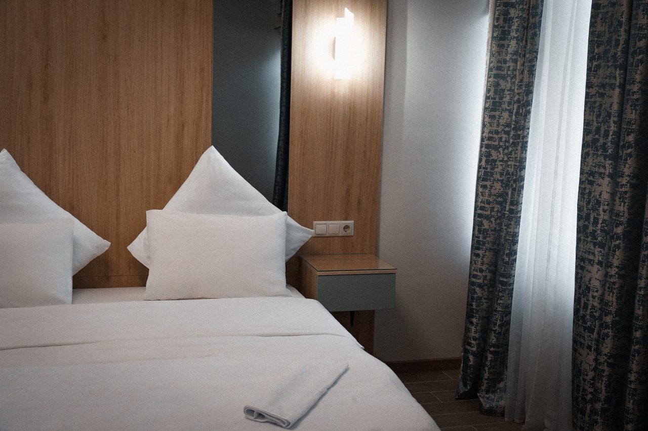 Этот отель подойдёт для путешествующих на своём авто, есть отличная стоянка ( открытая, но под камерами ), лифт в отеле работает. Отель опрятный , но есть нюансы по номеру. .Номер огромный, всё необходимое имеется. Есть претензии к качеству гигиены : чайничек грязный, постельное бельё прям сильно застиранное и уже расползается на глазах ( видимо от изрядного колличества отбеливателя ). По моей просьбе принесли новый комплект