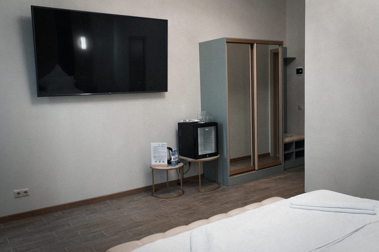 Были проездом втроем семьёй, отличный номер, большой. Всё что нужно, чайник, холодильник, туалетные принадлежности, на первом этаже Пятёрочка. Гостиница прямо по трассе, очень удобно при выезде из города. Завтраки есть в ресторане за 350 р. Рекомендую.