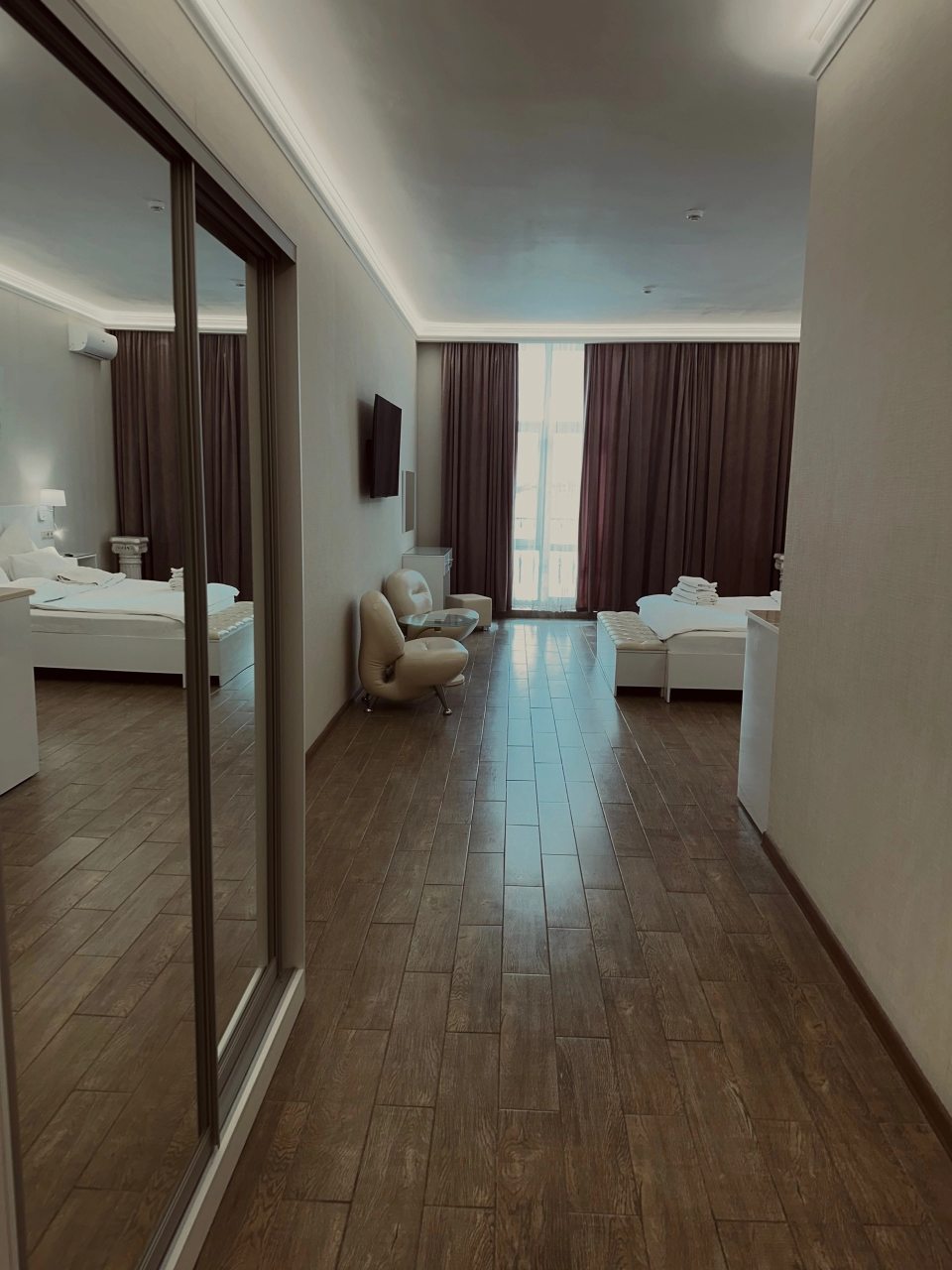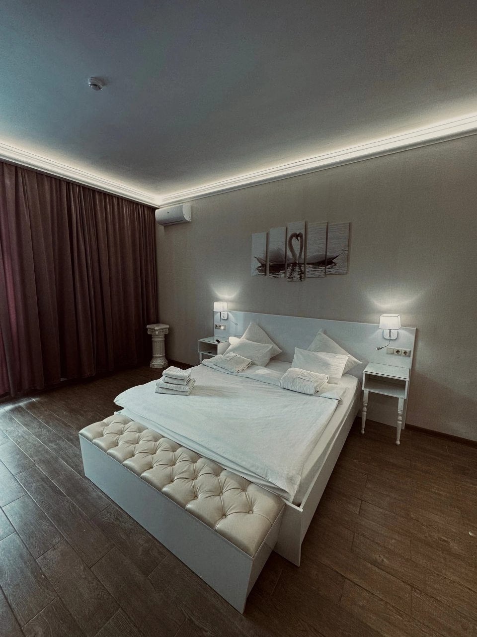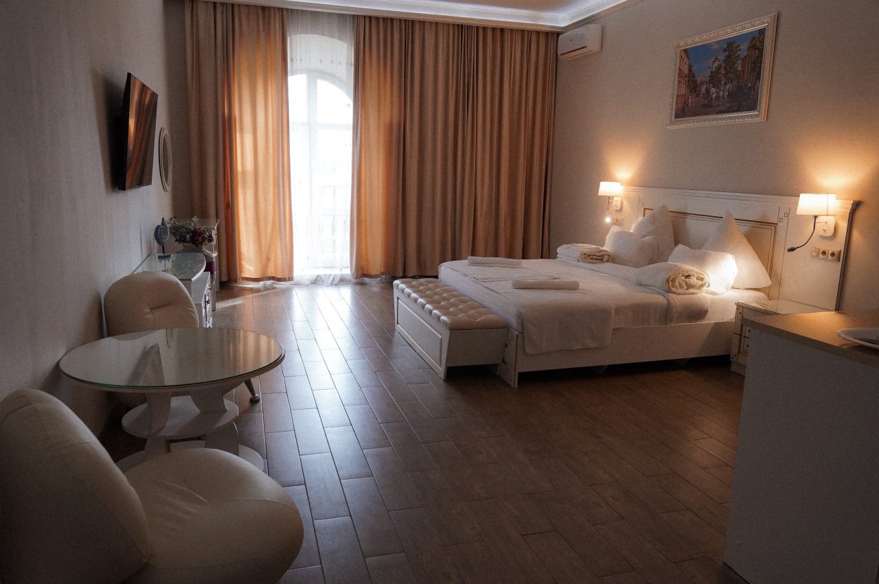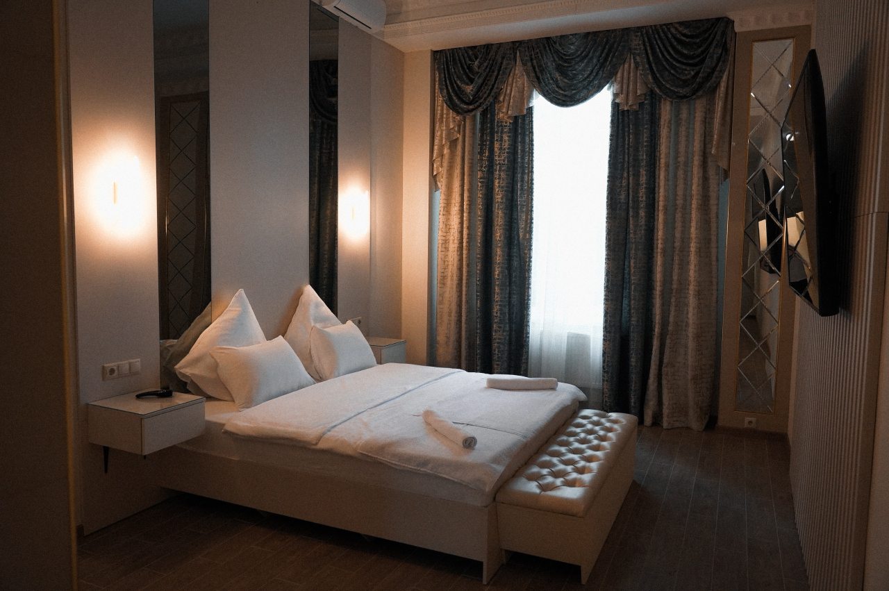 Первый раз взяли номер люкс , очень просторный , большой балкон , вид во двор . Шикарная люстра, красивые шторы, все аккуратно , чисто . Всегда уборку делает один мужчина. Бывает шумно , когда какие-то работы , но в целом нормально. Часто останавливаемся здесь !!! Спасибо !