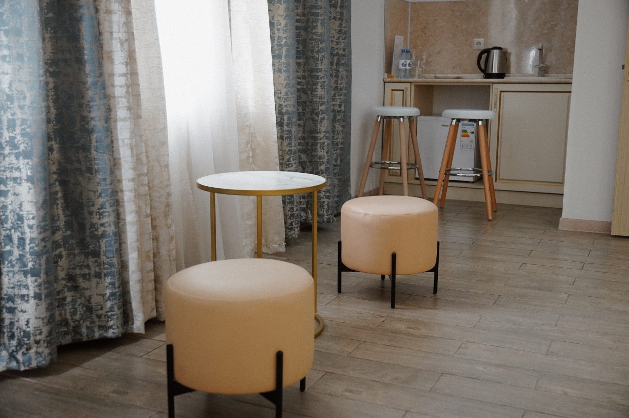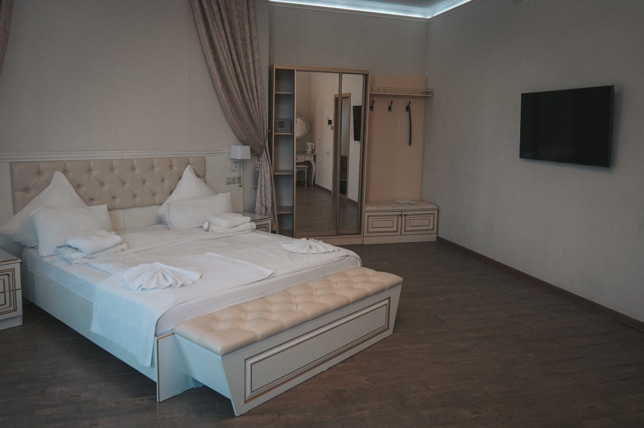 Номерной фонд составляет 20 категорий. Каждый номер располагает эргономичной мебелью, удобными кроватями и телевизором. Есть ванная комната с туалетом и раковиной. К услугам: общественные бани за отдельную плату.