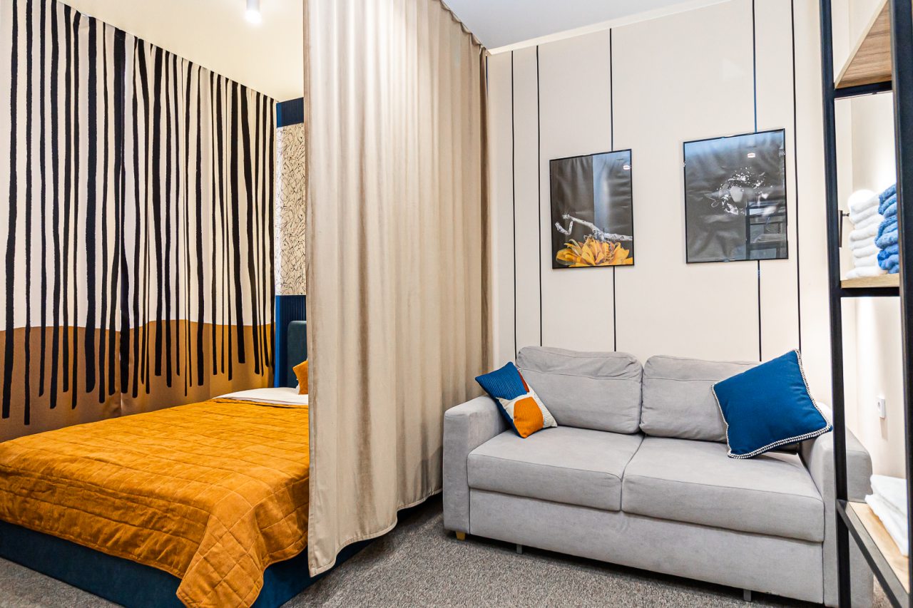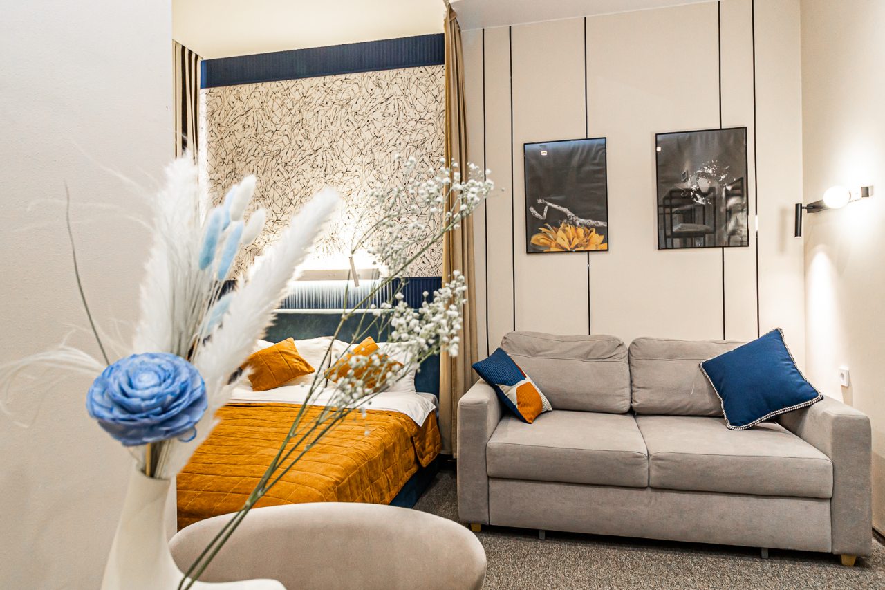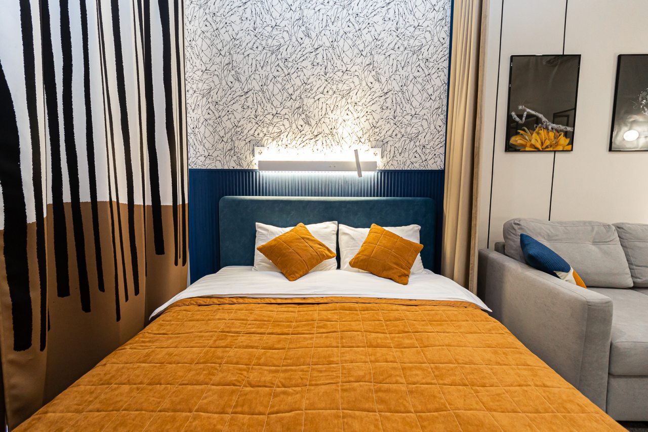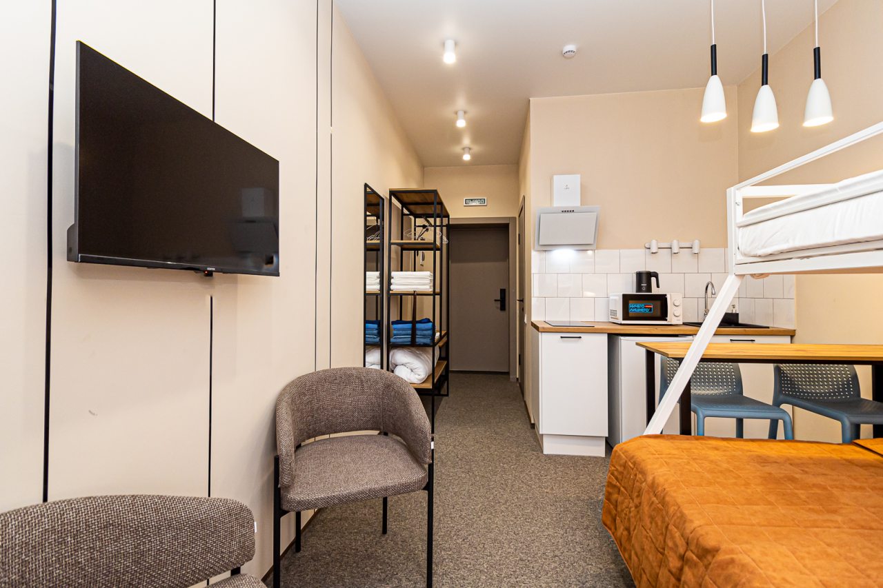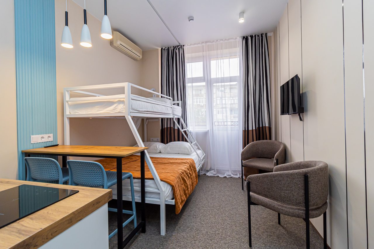 Гостям предлагаются комфортные и стильные номера, оснащённые всем необходимым: широкой двуспальной кроватью со свежим бельём, диваном, плазменным телевизором, высокоскоростным интернетом. В ванной комнате есть вся необходимая сантехника, халат, тапочки, набор полотенец, фен, косметические средства.