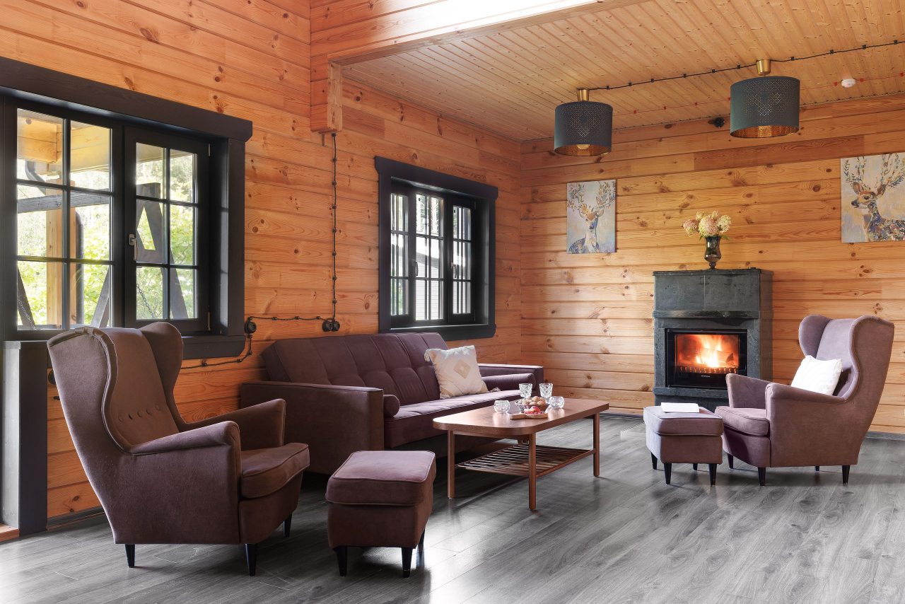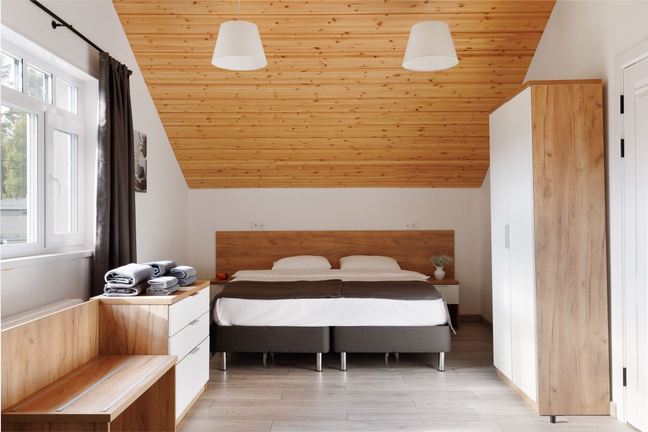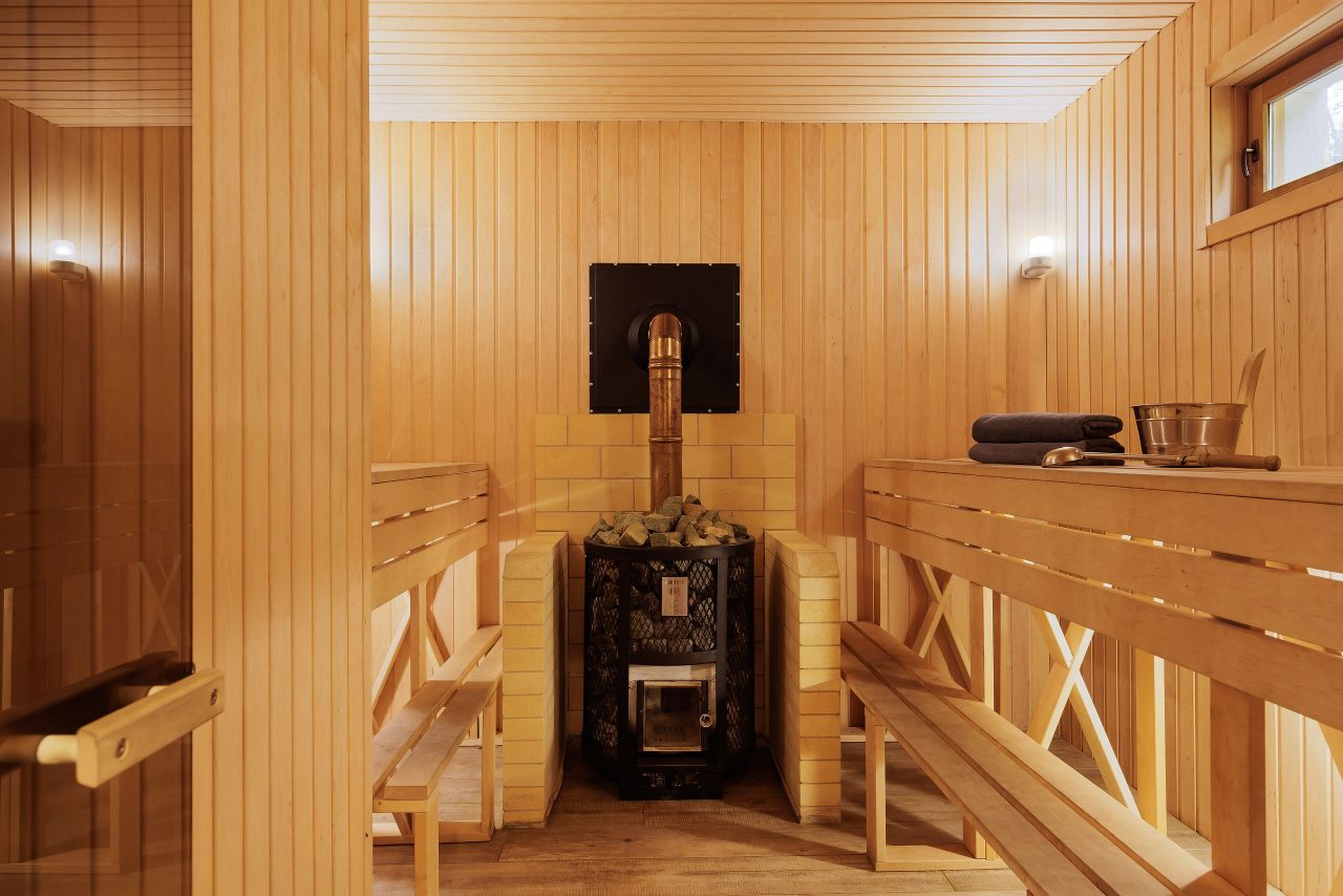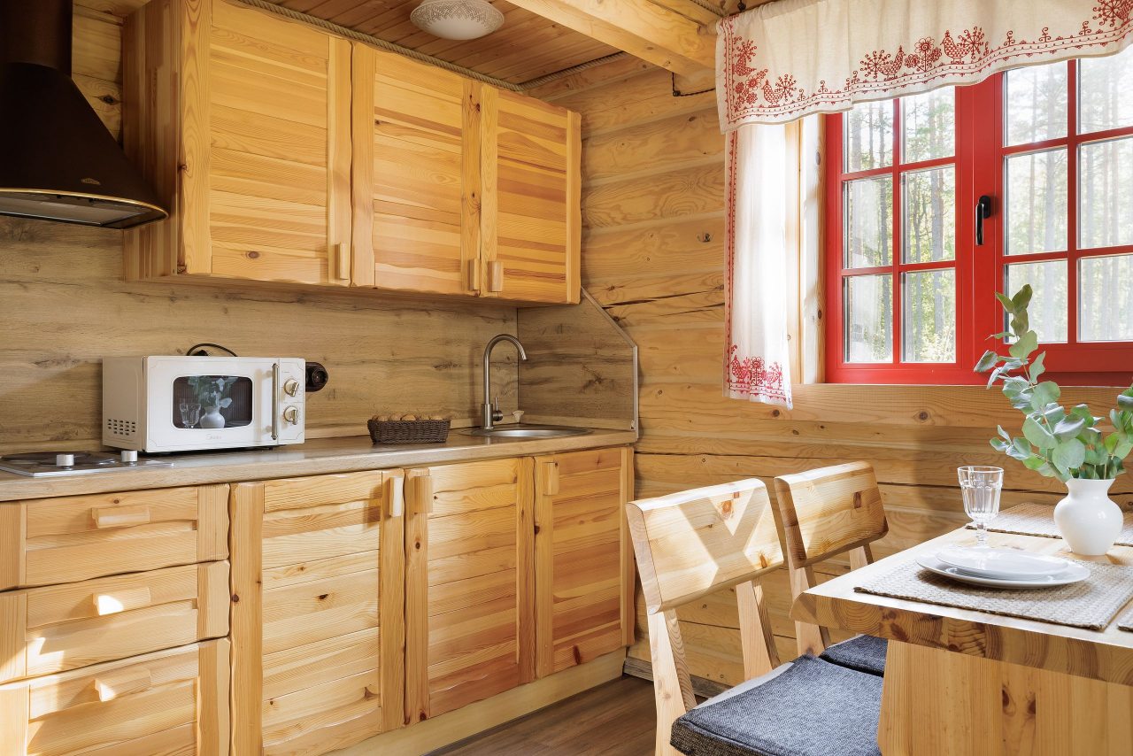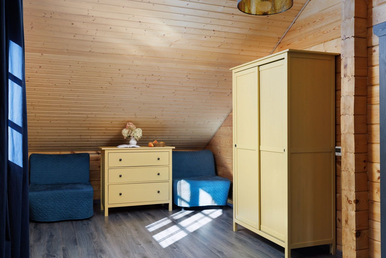 Все коттеджи полностью оборудованы, на первых этажах просторные гостиные с диванами и телевизором, ванные комнаты, кухня со всем необходимым оборудованием, сауна на дровах. На втором две спальни с одно и двухместными кроватями. Все имеют балконы и террасы или мансарды. Для маленьких постояльцев предоставляется высокий стульчик и детские кроватки.