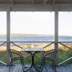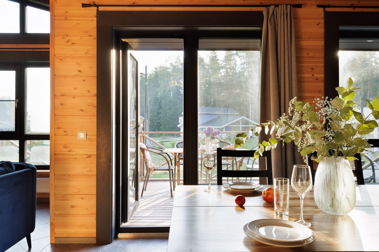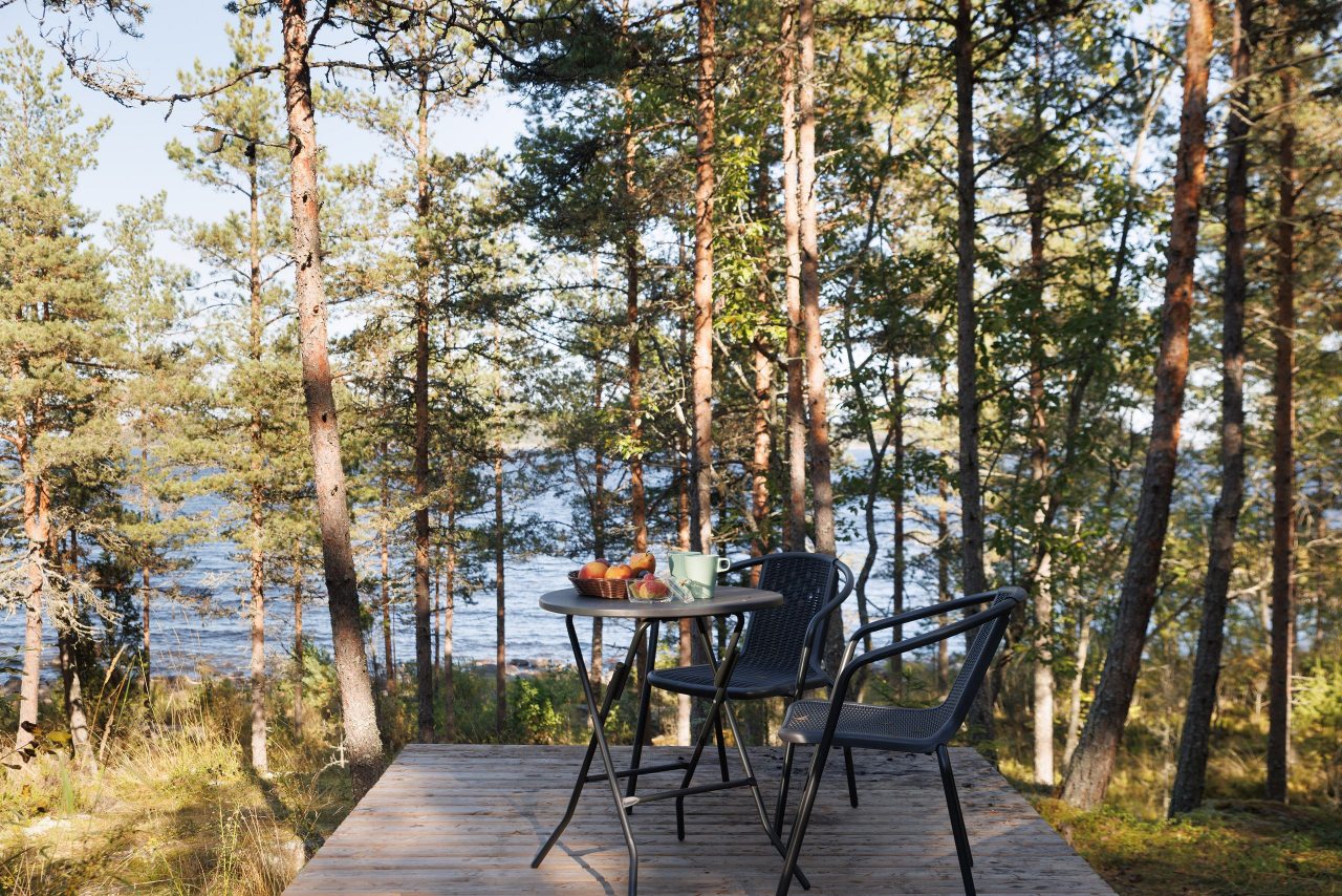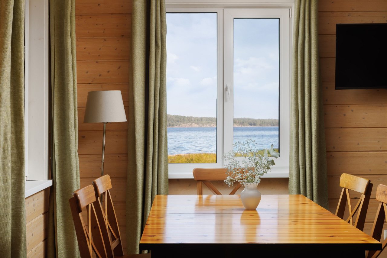 Отличное местоположение. Всего 10 минут на автомобиле от города. Прямо на берегу Ладоги. Восхитительные пейзажи, на которые стоит полюбоваться! Тропа Ладоги простирается в обе стороны от базы, мы гуляли, наслаждаясь природой — какая красота! Мы остановились в апартаментах на втором этаже. Комната просторная и очень комфортабельная. С балкона открывается вид на озеро. Однако у этих номеров есть один заметный минус. Похоже, что при строительстве использовались материалы, которые не пропускают воздух. Внутри создается парниковый эффект. Даже с открытыми окнами все равно остаётся жарко и душно. Ночью трудно из-за духоты. Насчет других домиков не знаю, возможно, там это не так чувствуется. Но база нам все равно очень понравилась, отдых был замечательный! Остались приятные воспоминания!