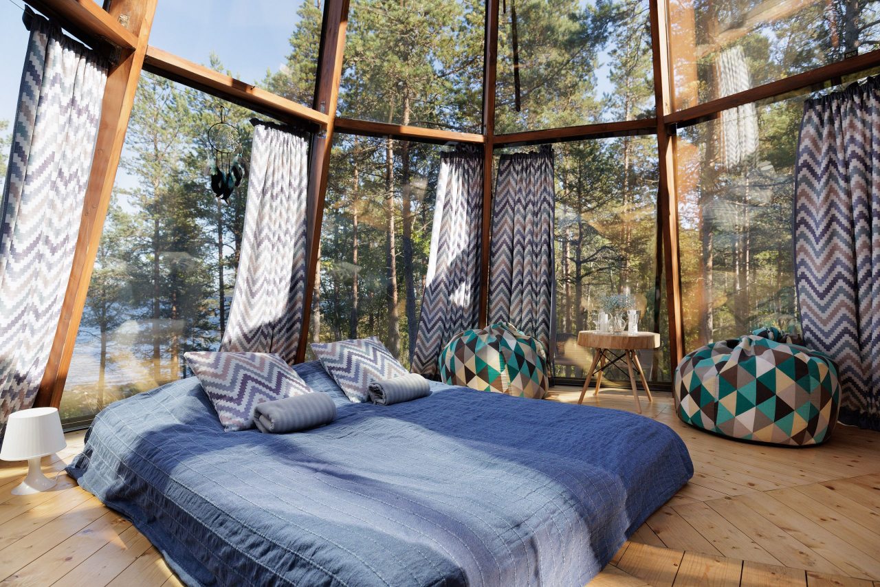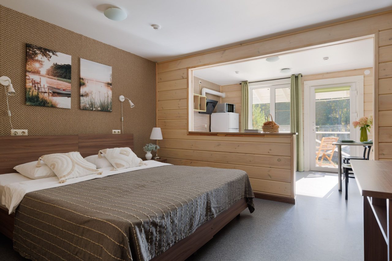 На территории комплекса для размещения гостей предлагается номерной фонд состоящий из апартаментов с видом на озеро, коттеджи разной вместимости от 4 до 12 человек. Каждый коттеджи имеет своё название и соответственно ему стилизован: Сосновый бор, Дом у ручья, Дом рыбака, Дом грибника, Дом охотника и Дом у причала.