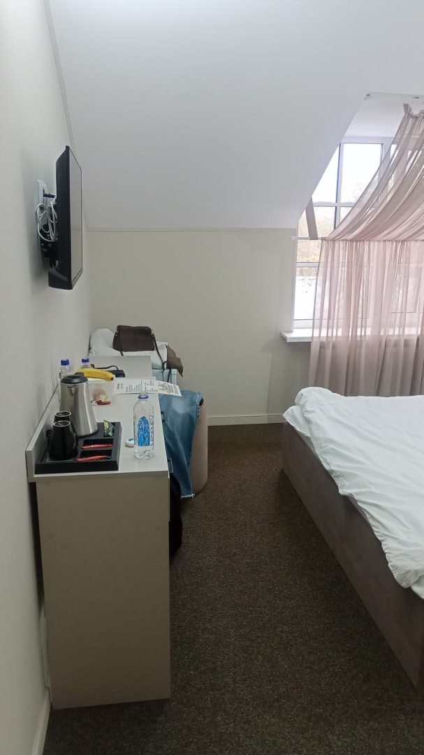 Современной ремонт, уютный номер со всем необходимым, включая холодильник и чайник, вкусные завтраки. Вежливые девушки на ресепшн. Рядом уютное кафе для ужина и пятёрочка. Парковка на территории.