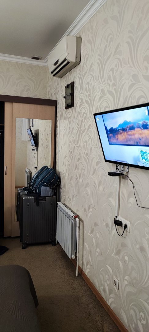 Отдыхали в двухместном номере на втором этаже. Номер чистый, симпатичный с часами на стене, есть всё необходимое. На стене сплит-система, для охлаждения в жару и обогрева в холод. Есть чайник. Вода в кулере на первом этаже. Персонал приветливый, встретили и проводили тепло. Есть завтрак, который состоит из заморозки разогретой в микроволновке: гречка с котлетами, блинчики с джемом и чай. Сытно и вкусно. Полотенца, гель и шампунь - это всё имеется. В наличии даже освежитель для туалета, чего не встречал во многих отелях нашей необъятной Родины. В целом всё понравилось. По близости есть магазины Магнит и Пятёрочка. В пяти минутах ходьбы есть детский парк развлечений. Рядом с отелем остановка откуда можно на автобусе добраться до исторической части города.