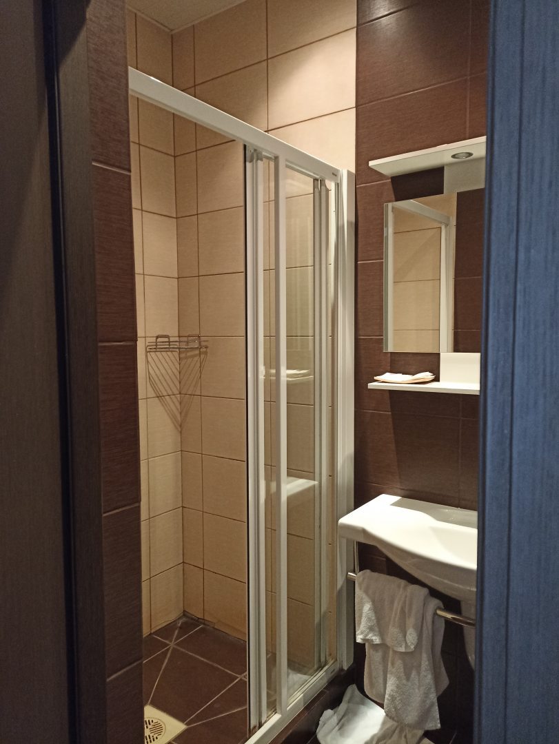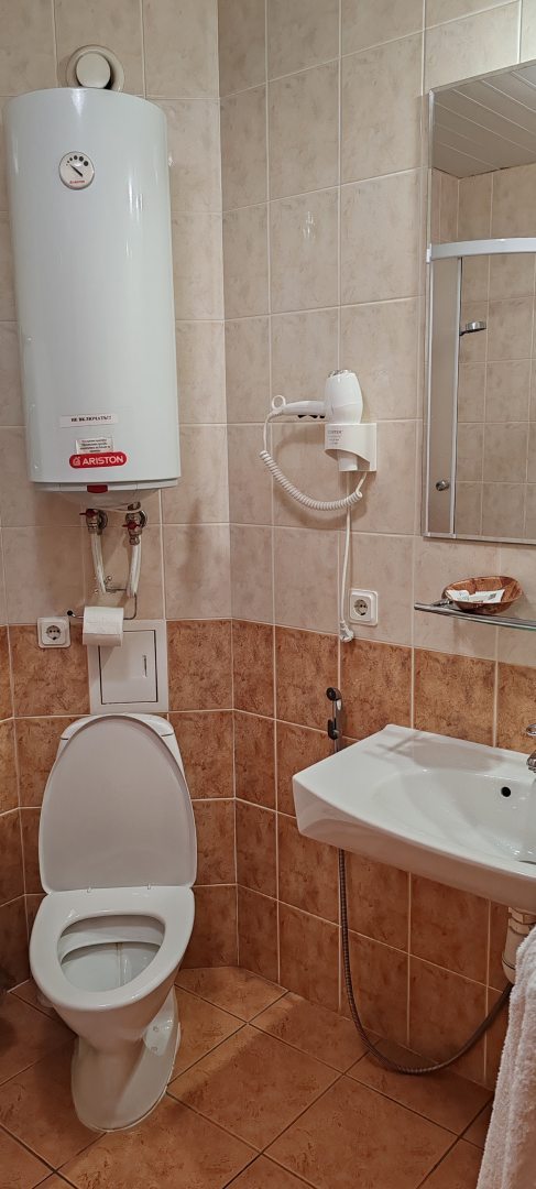 Прекрасное расположение - в центре, но на тихой улице ( спали с открытым окном). Просторный светлый номер с двумя окнами, был балкон. Хорошо оборудованная ванная комнета: горячий полотенцесушитель, гигиенический душ рядом с унитазом, душевся кабинка удобная, крючки для одежды.