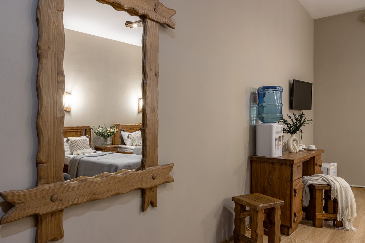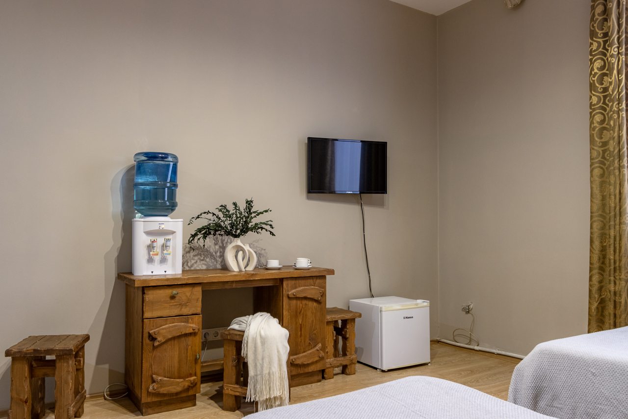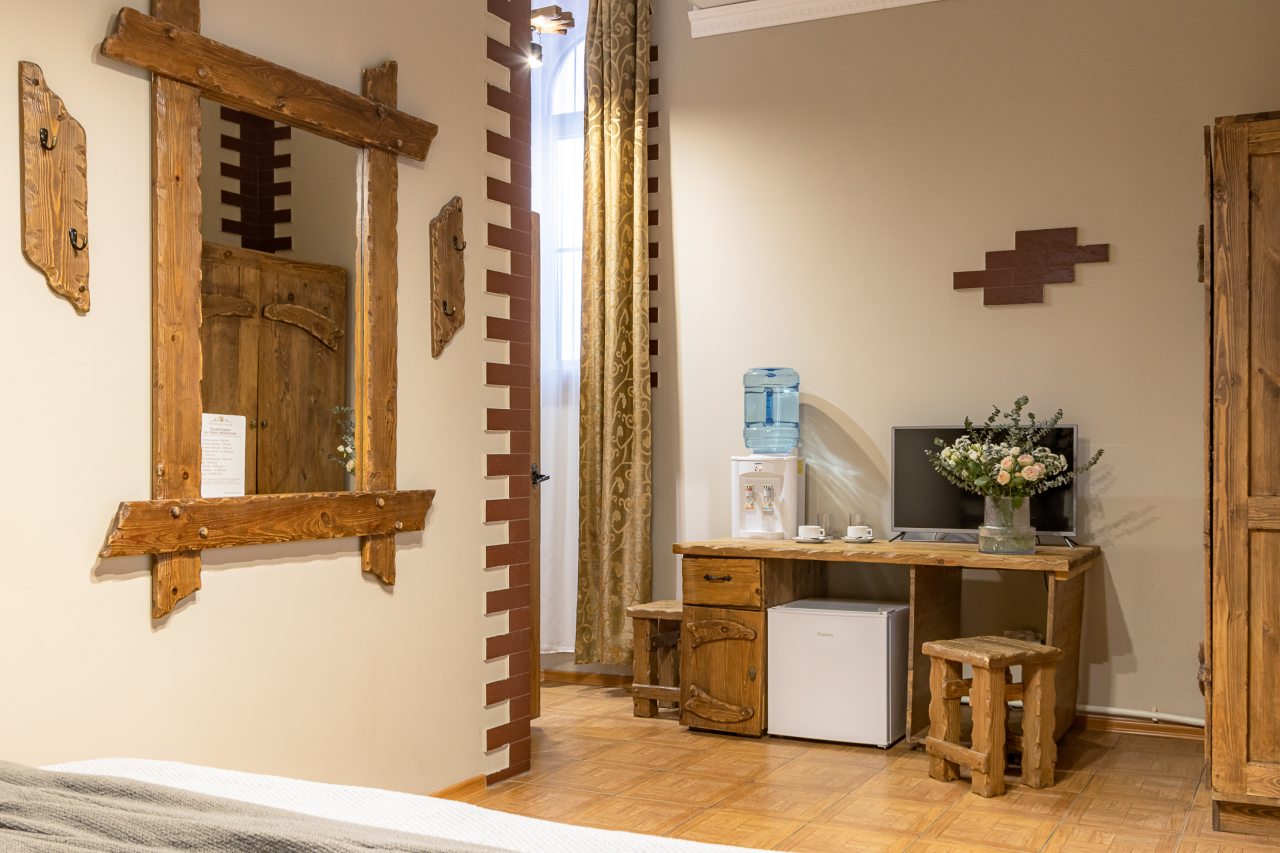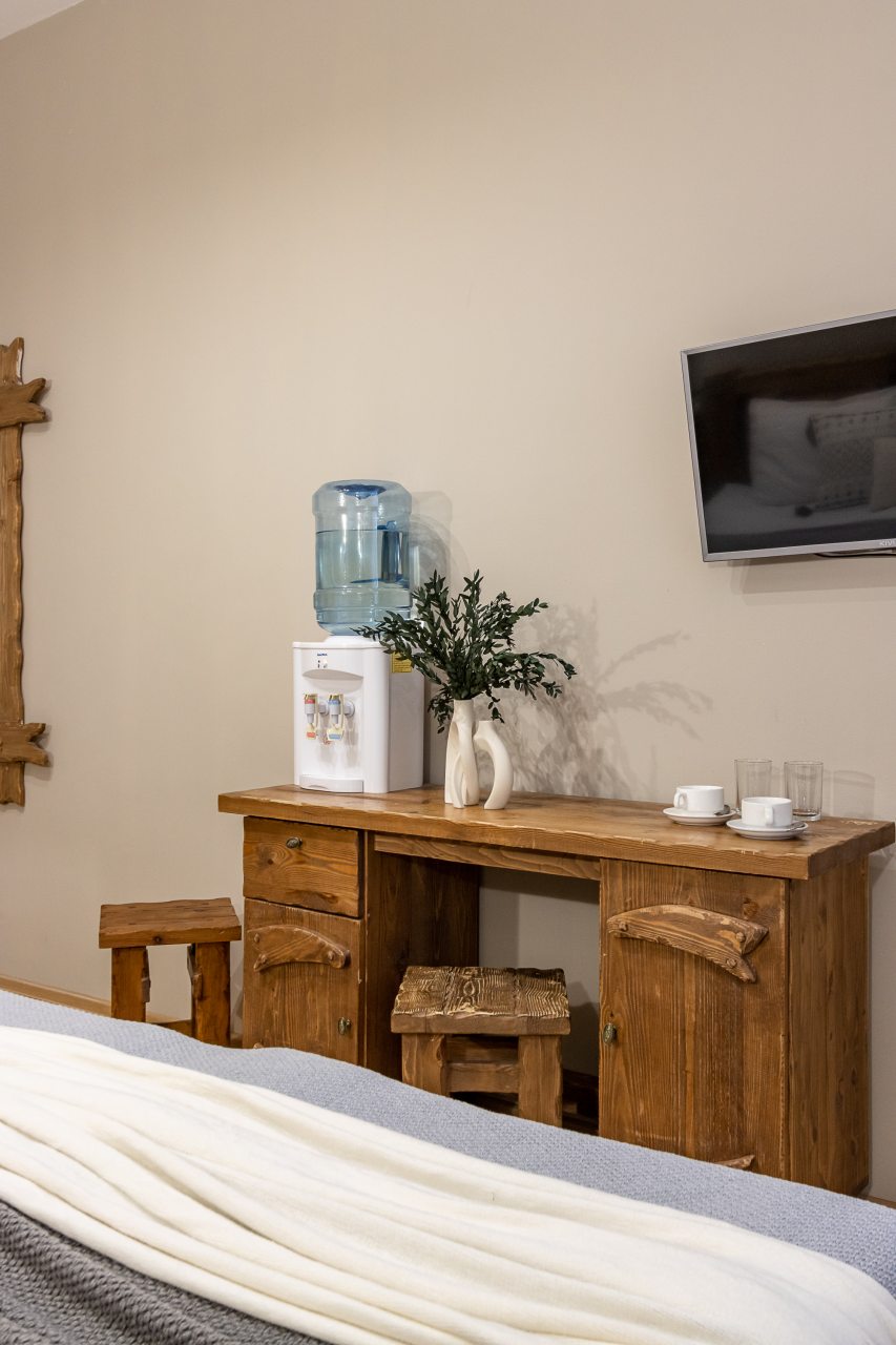 Хороший отель, чистота на высоте, оформление номеров на мой вкус очень приятное, много дерева: и кровати, и шкаф, и стол, табуретки, даже люстра - всё деревянное, "тёплое". Чай,сахар каждый день клали на стол, кому мало, могли в холле взять добавку. В номере кулер с холоднойгорячей водой.