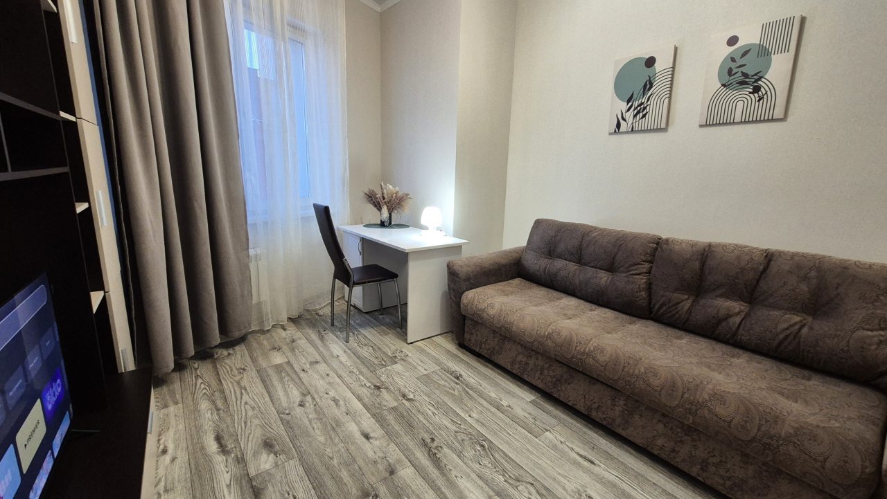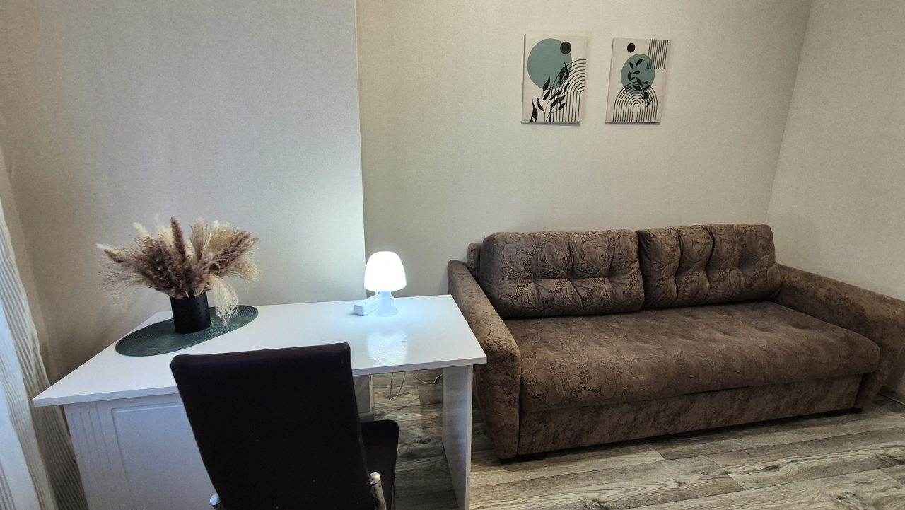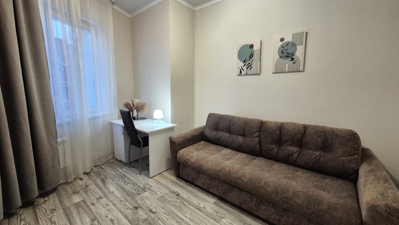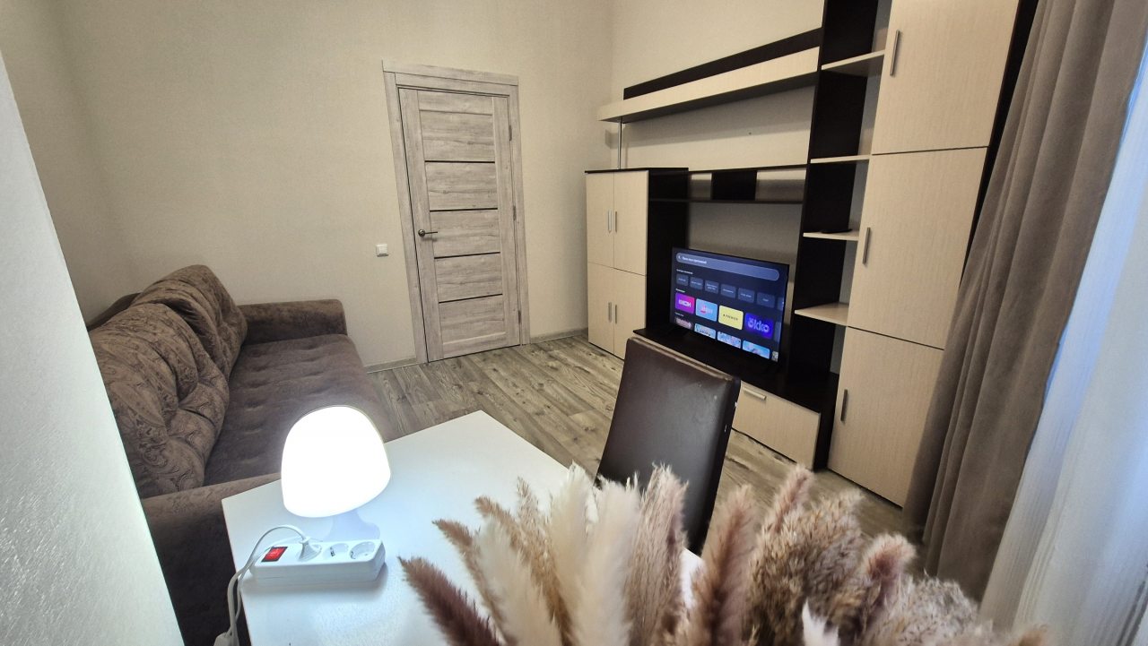 Светлые апартаменты оснащены всей необходимой мебелью и техникой для комфортного проживания например: двуспальной кроватью, телевизором, письменным столом, балконом и др. Санузел раздельный и укомплектован качественной сантехникой. Доступна точка wi-fi.