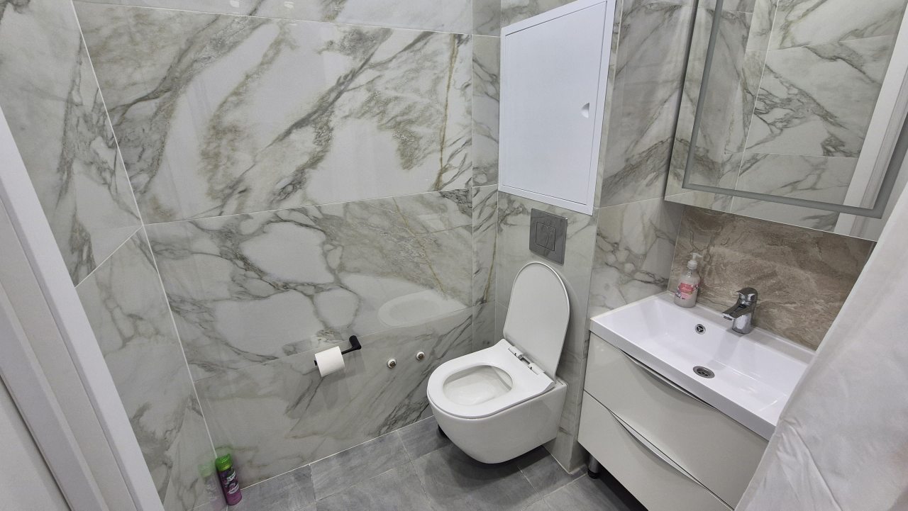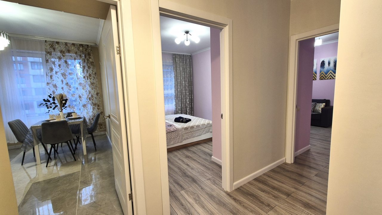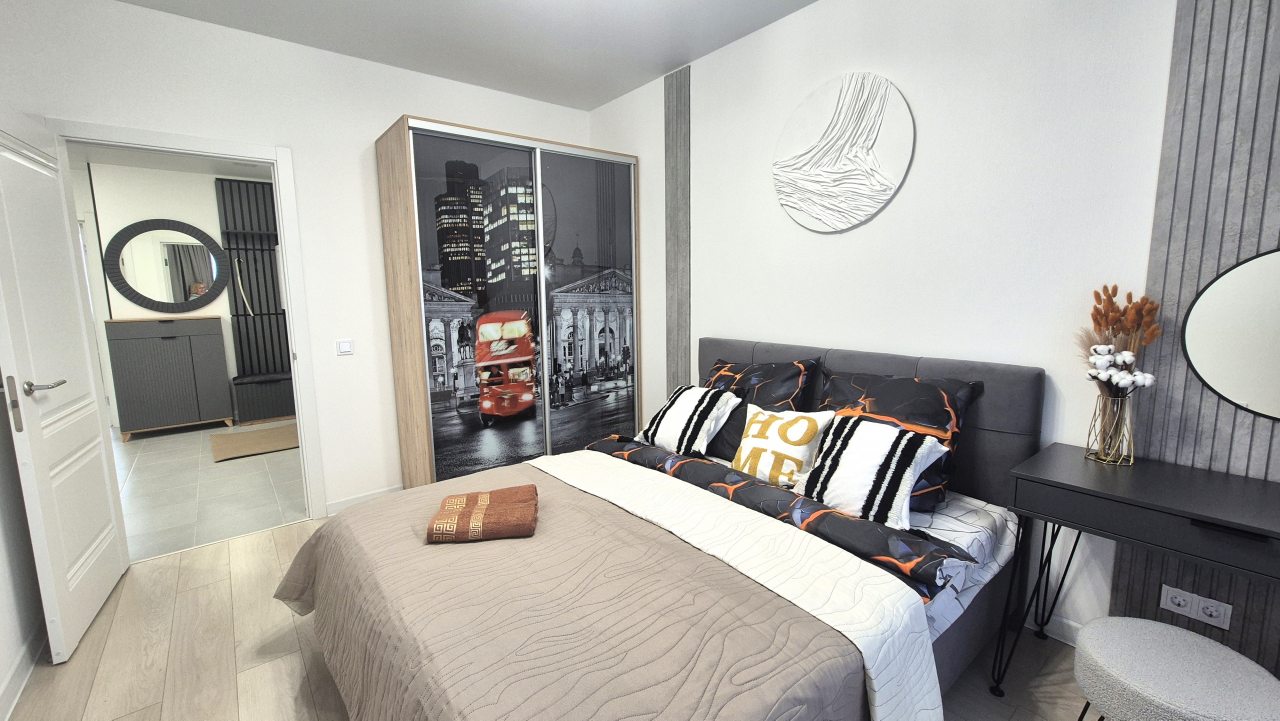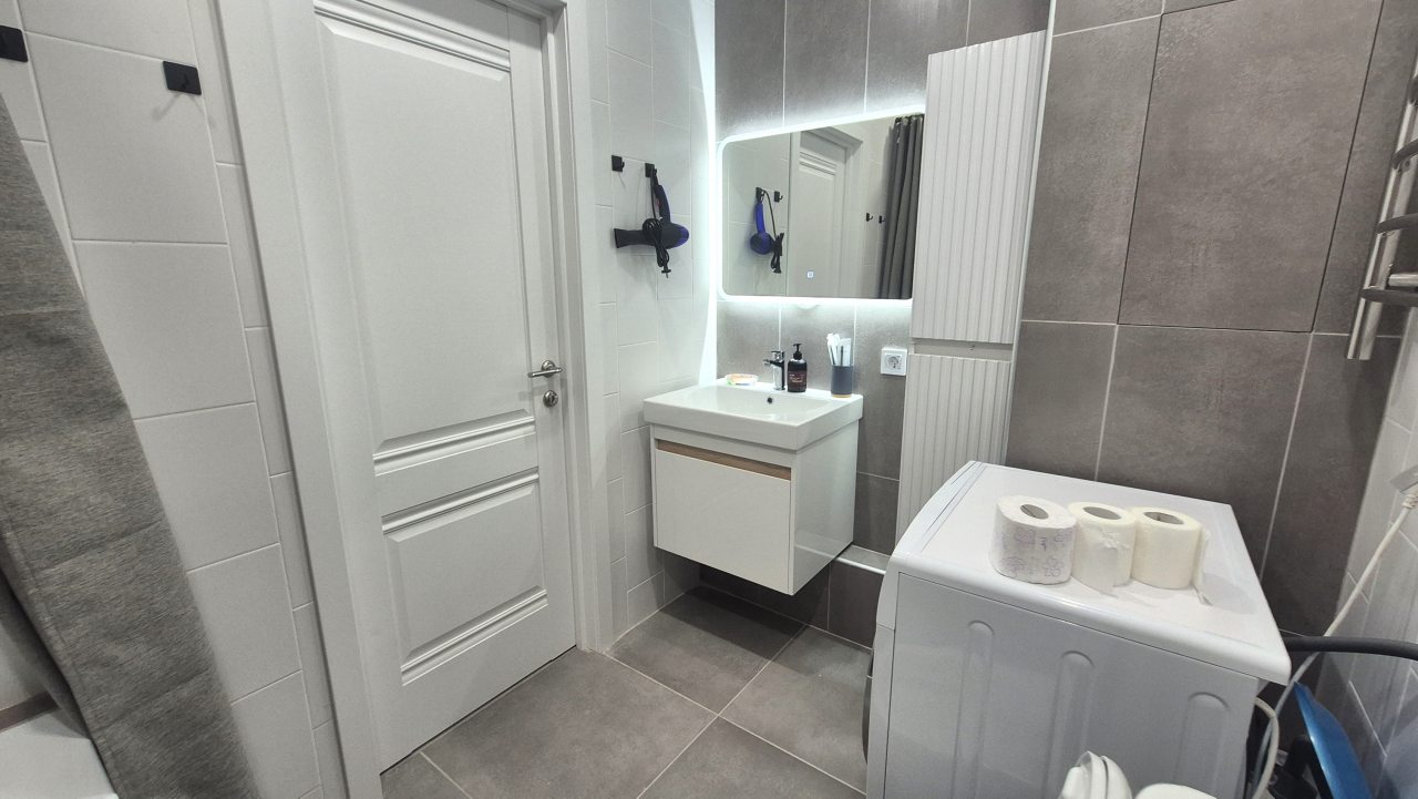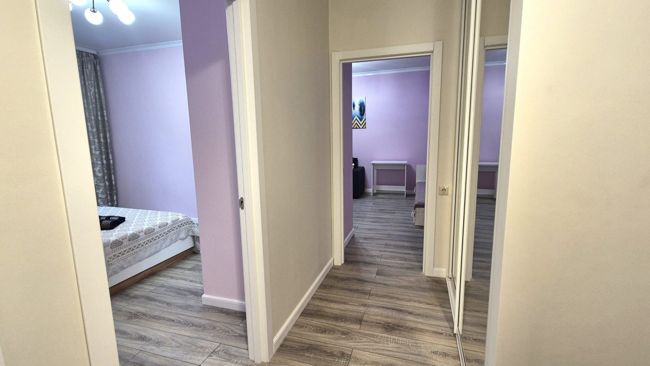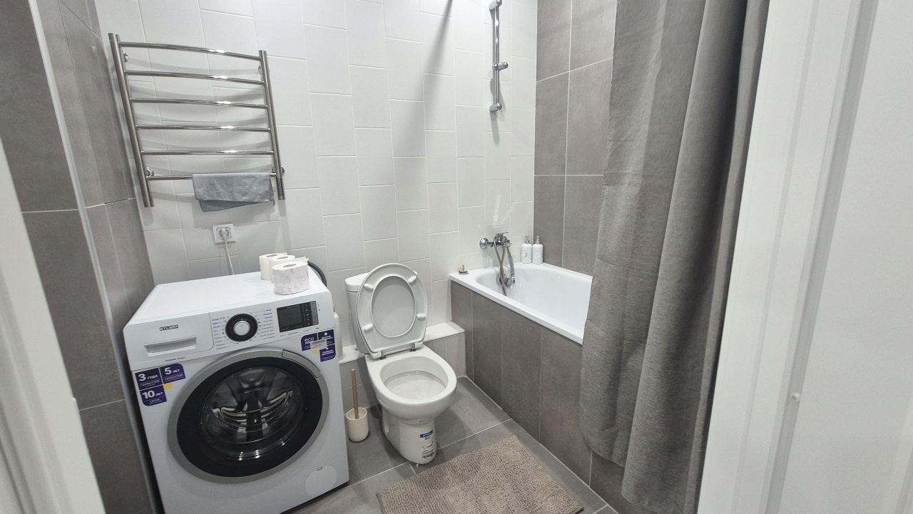 Это хороший вариант для размещения семьей или небольшой компанией, так как в наличии удобная двуспальная кровать и мягкие диваны, а также кондиционеры, телевизор, шкафы, ванная комната со стиральной машиной, средствами для личной гигиены, феном.