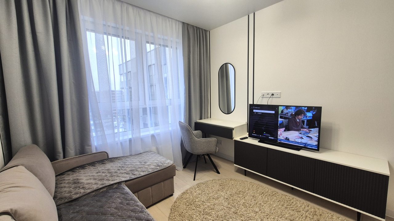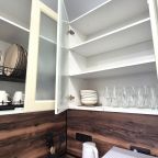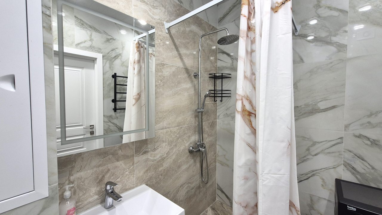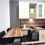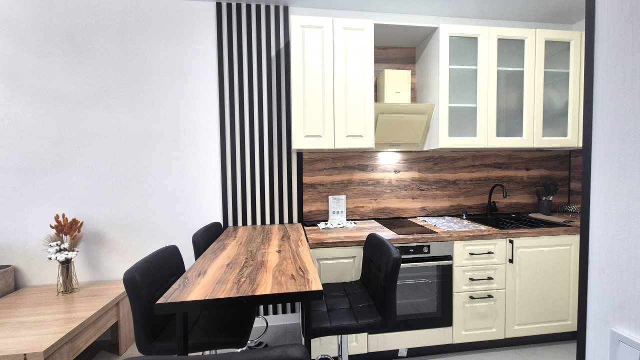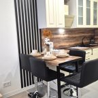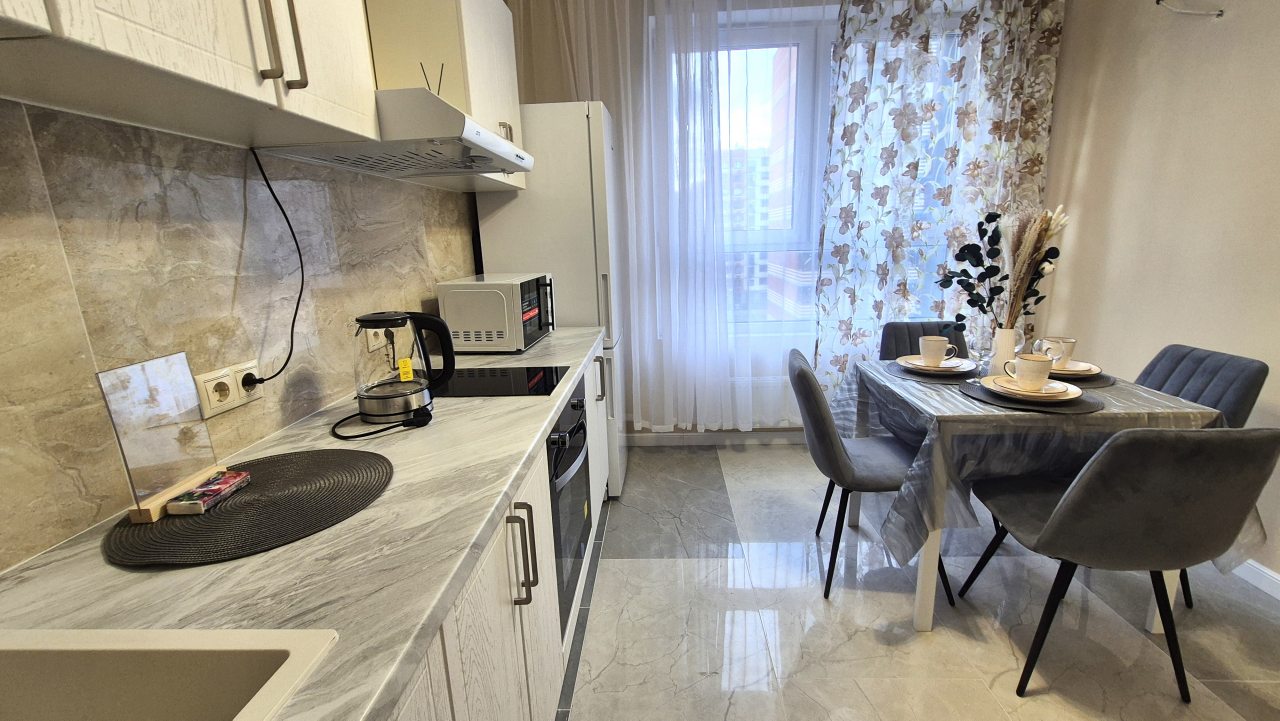 Кухонная зона укомплектована варочной панелью, духовым шкафом, СВЧ, холодильником, чайником, обеденным столом и стульями, чтобы вы всегда могли порадовать себя любимыми напитками и блюдами.