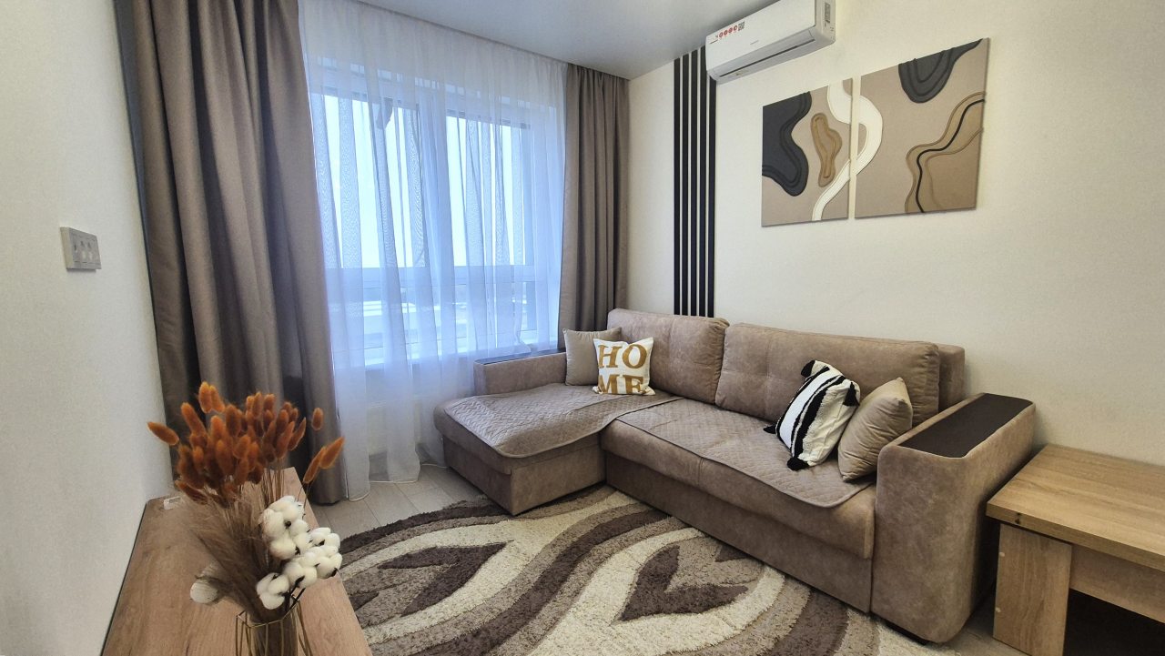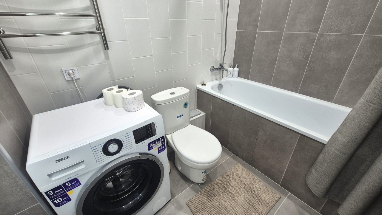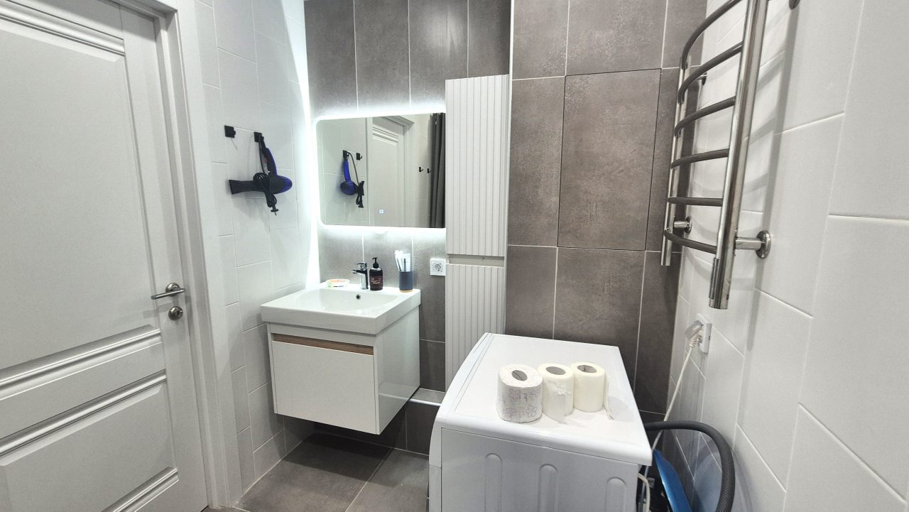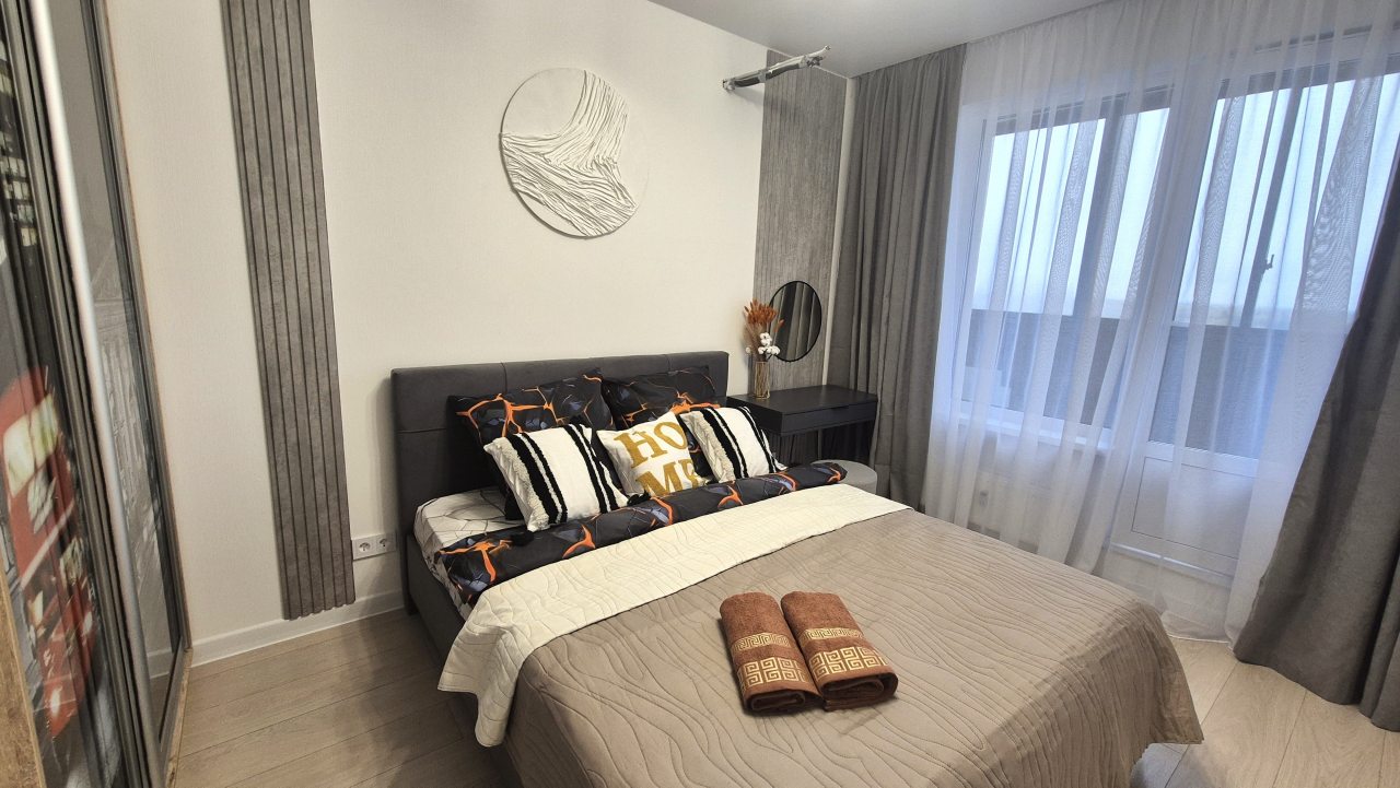 Внутри вас ожидает двуспальная кровать с качественным матрасом, мягкий и удобный диван, телевизор, кондиционер, полноценная ванна, стиральная машина, балкон с зоной отдыха, шкаф.