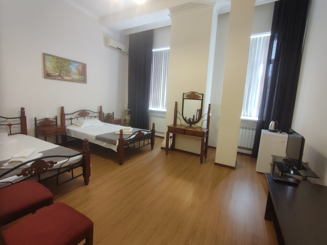 Номер просторный, чистый(Белье тоже идеально чистое) , есть все необходимое - холодильник, чайник, посуда. Персонал приветливый, на все интересующие вопросы отвечает. Отдельное спасибо Светлане Николаевне за то что разрешила оставить вещи после выселения, в то время как её сменщица запретила, объяснив это тем, что это небезопасно. В то время как всегда говорила оставлять ключи от номера на ресепшене. Рядом с гостиницей продуктовые магазины, все достопримечательности в шаговой доступности