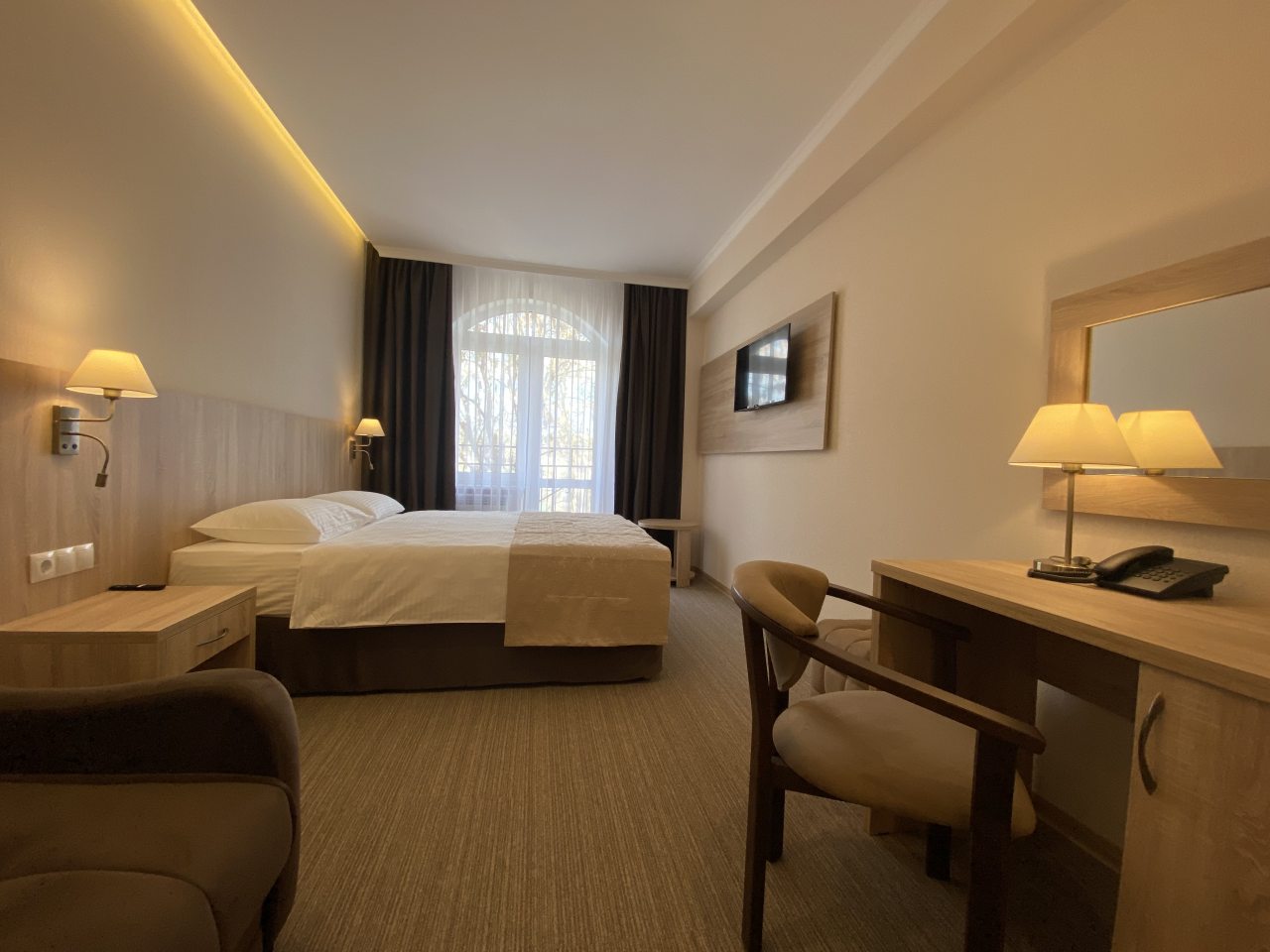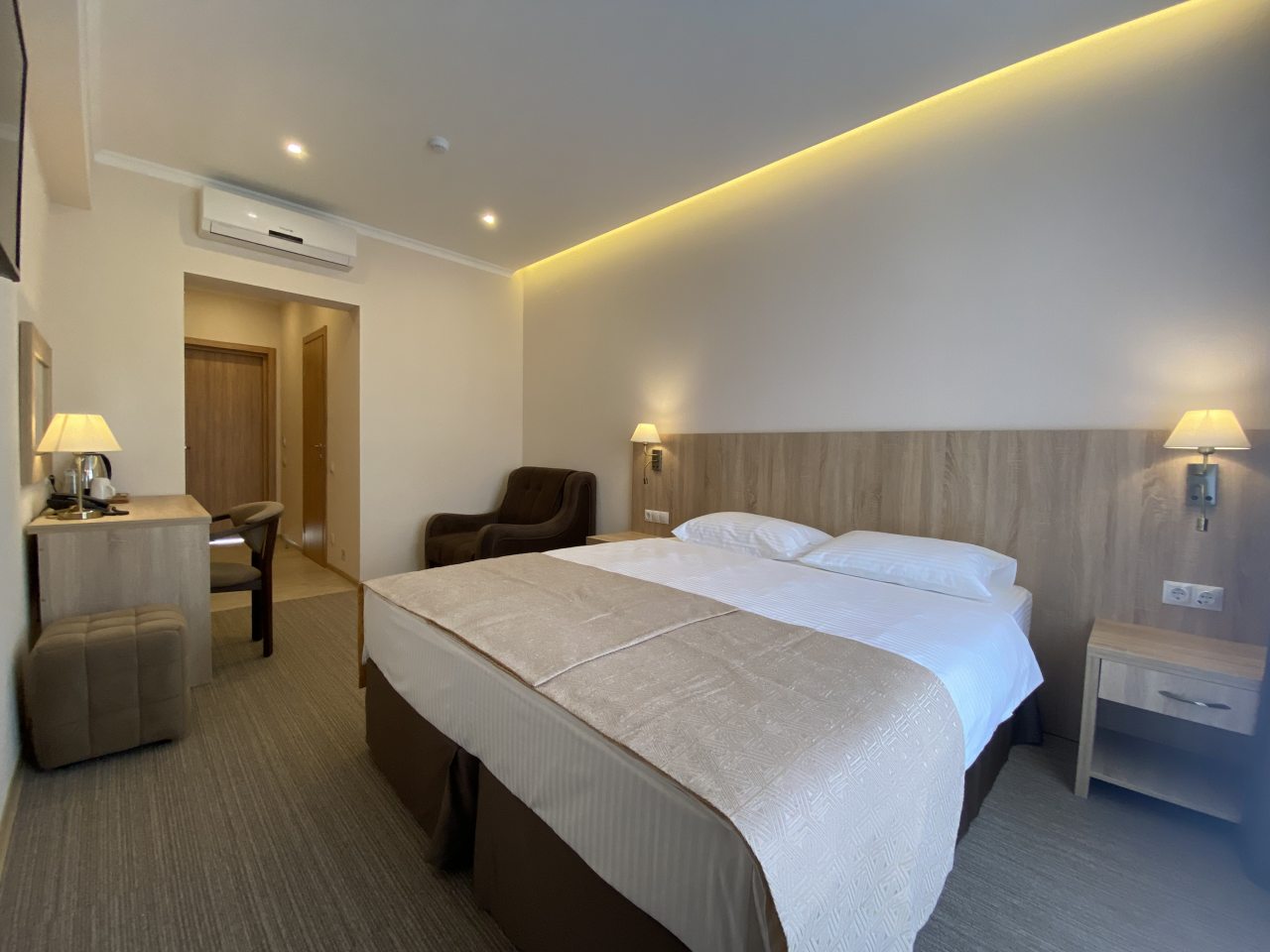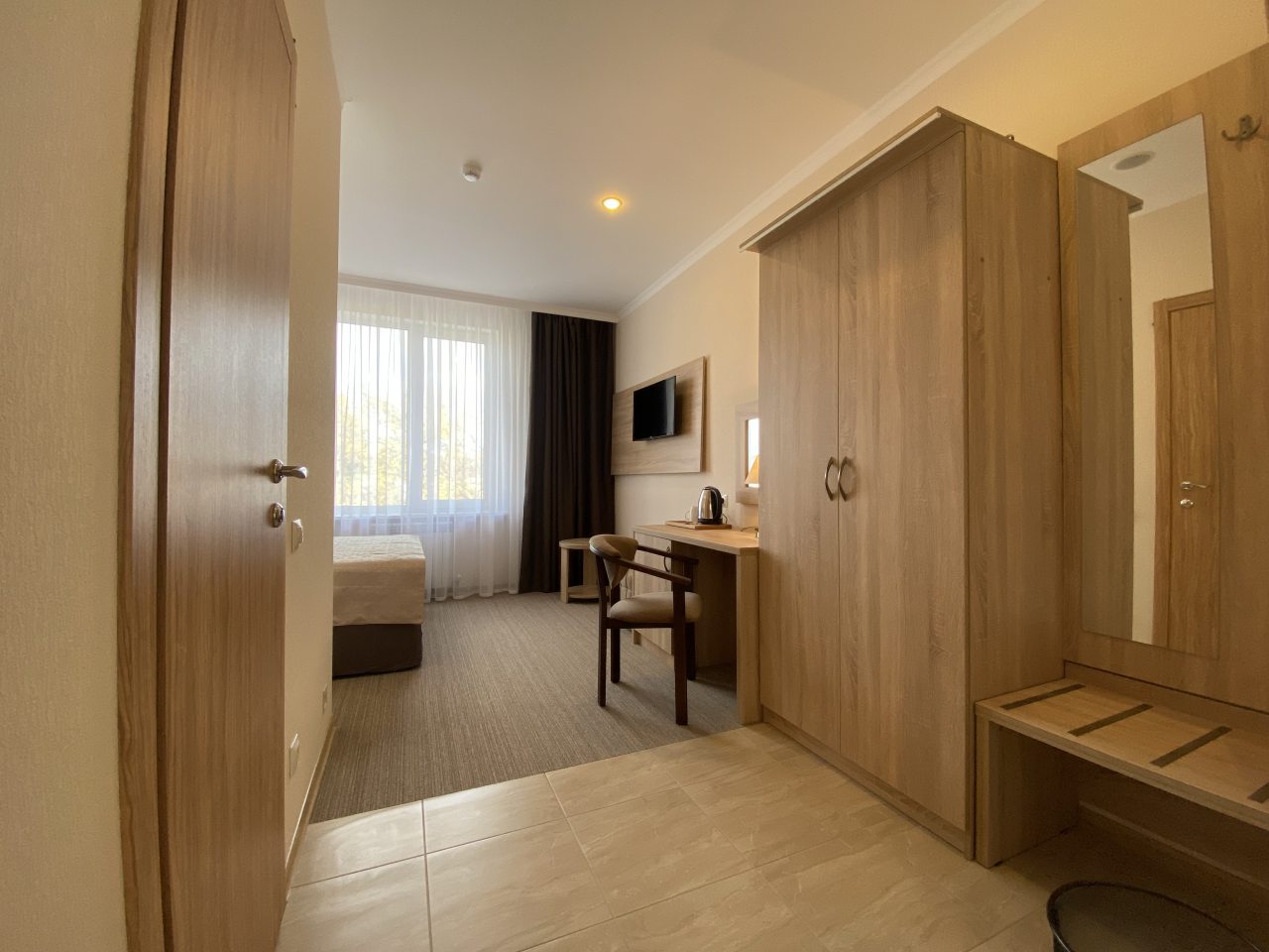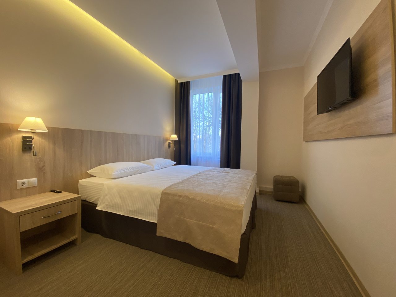 Номерной фонд представлен одноместными и двухместными номерами разного уровня комфорта. Среди удобств личный сейф, сплит-система, кабельное телевидение, быстрый Wi-Fi и ванная комната с косметическими принадлежностями и мягкими полотенцами.