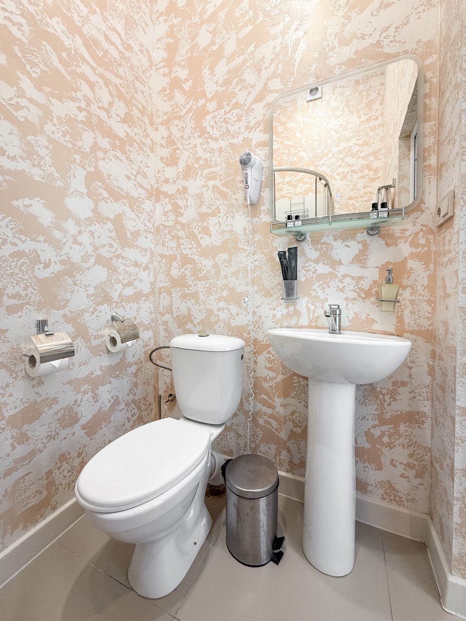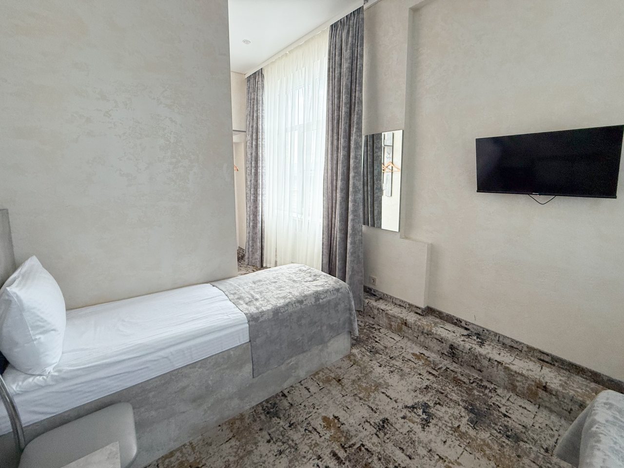 Приятно удивила цена: для такой чистоты и свежести —адекватный вариант. Всё в отеле новое, в том числе сантехника, что приятно радует глаз. Мы были проездом, и ночлег здесь оказался выше ожиданий — заселение прошло за пять минут. Район тихий, и спалось отлично, особенно после долгой дороги. Отдельно хочется отметить персонал: помогли с вызовом такси и подсказали, где поужинать. Кровать удобная, бельё белоснежное, запах в номере приятный. Отсутствие назойливого сервиса оказалось плюсом — никто не мешал и не заглядывал.