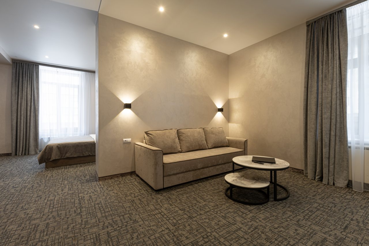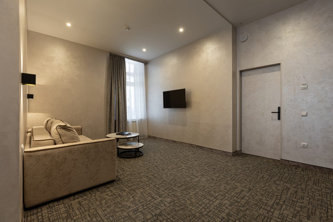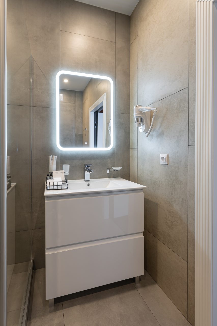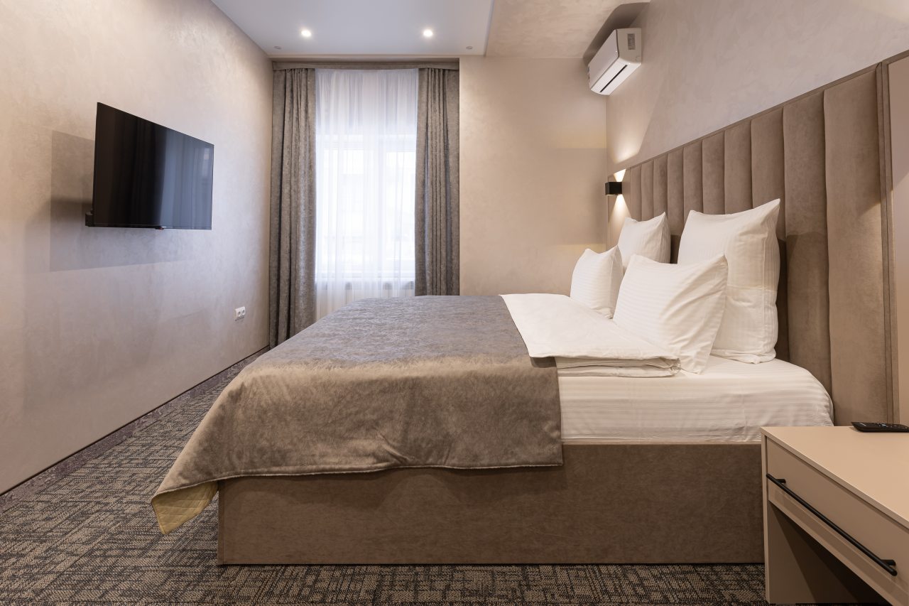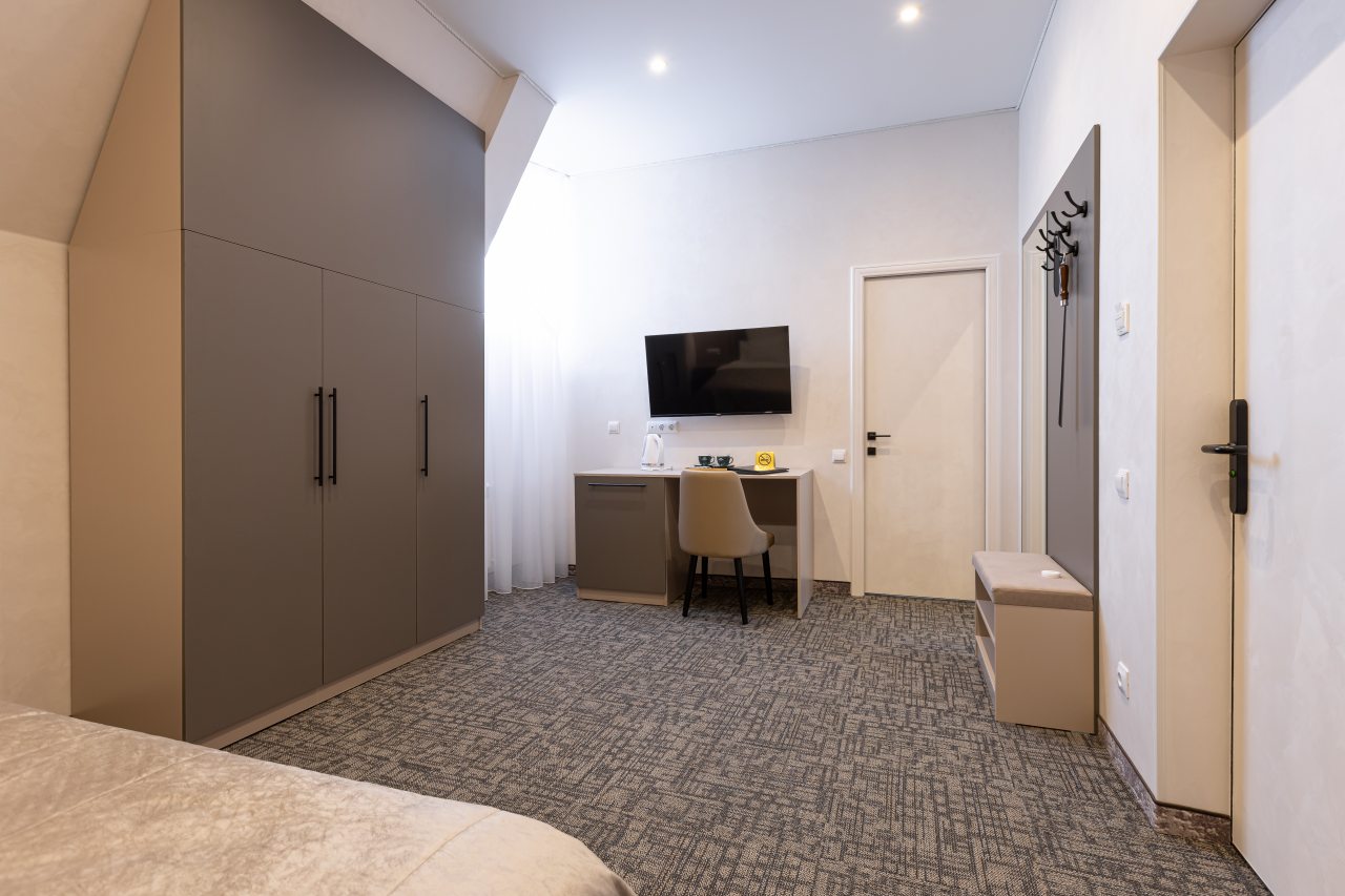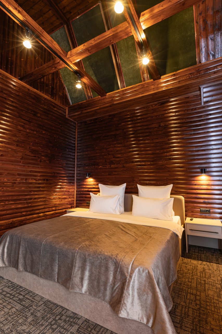 Для выбора представляются номера разнообразных категорий, в каждой из которых вас ожидает качественная и современная мебель и техника, в том числе удобная кровать, прикроватные светильники и розетки, вместительный шкаф, кондиционер, бесплатный Wi-Fi, телевизор, а также индивидуальный санузел с душевой.