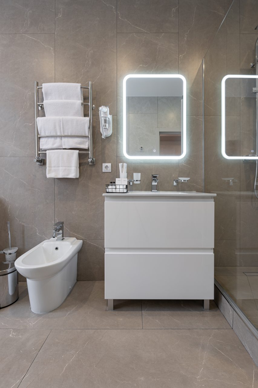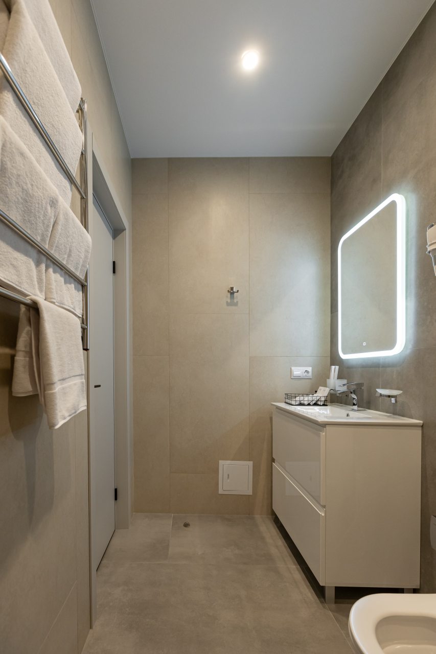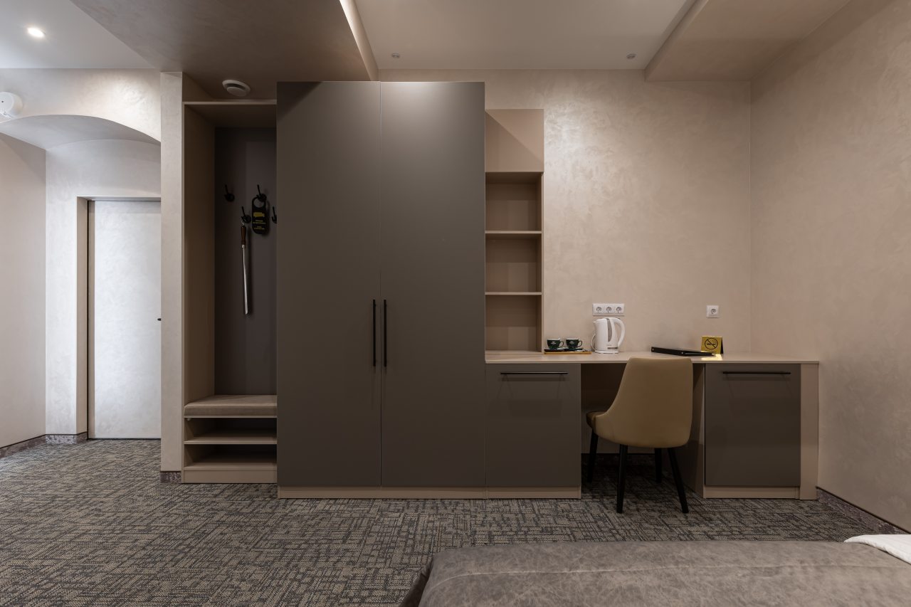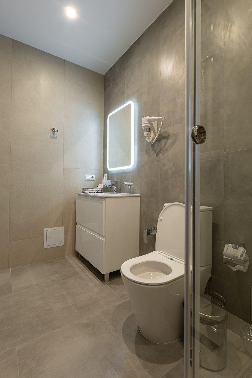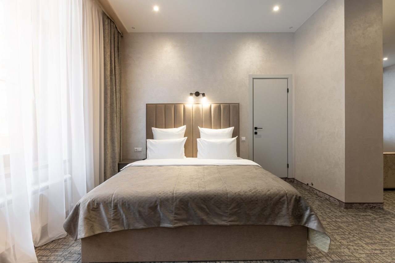 Для выбора представляются номера разнообразных категорий, в каждой из которых вас ожидает качественная и современная мебель и техника, в том числе удобная кровать, прикроватные светильники и розетки, вместительный шкаф, кондиционер, бесплатный Wi-Fi, телевизор, а также индивидуальный санузел с душевой.