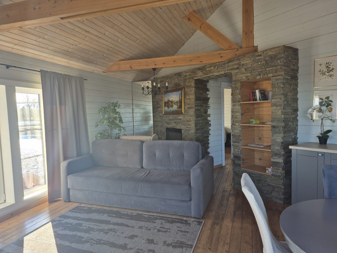 Дом уютный, просторный. Хоть и от вокзала долго добираться, это не помешало нашему отдыху. Нам понравилось, что есть сауна, а также недалеко есть озеро. Что касается дома, из плюсов могу отметить, что есть камин, он придает особого уюта. Спальные места комфортные, подушки удобные, не плоские. Рекомендую.