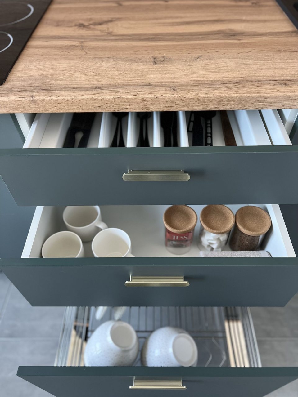 Комплектация кухонной бытовой техники может отличаться. В каждых предусмотрена варочная панель, чайник, холодильник, уютная обеденная зона.