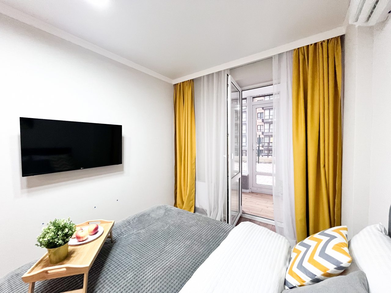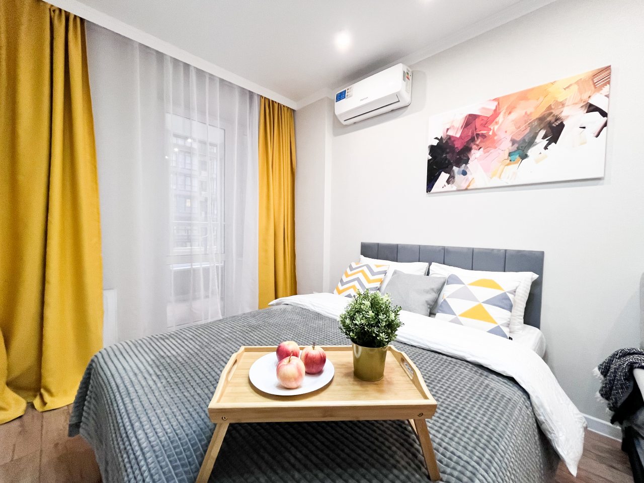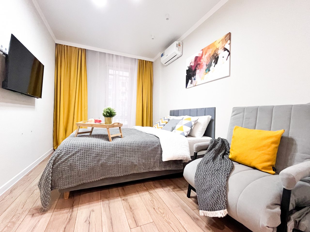 Гостям предлагается расположиться в уютных однокомнатных апартаментах. В пользование предоставляется функциональная мебель, современное техническое оснащение, ванная комната и рабочая зона.