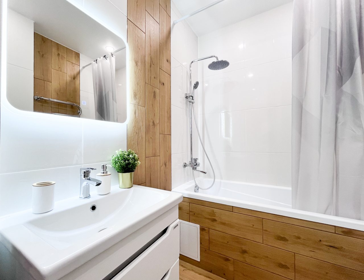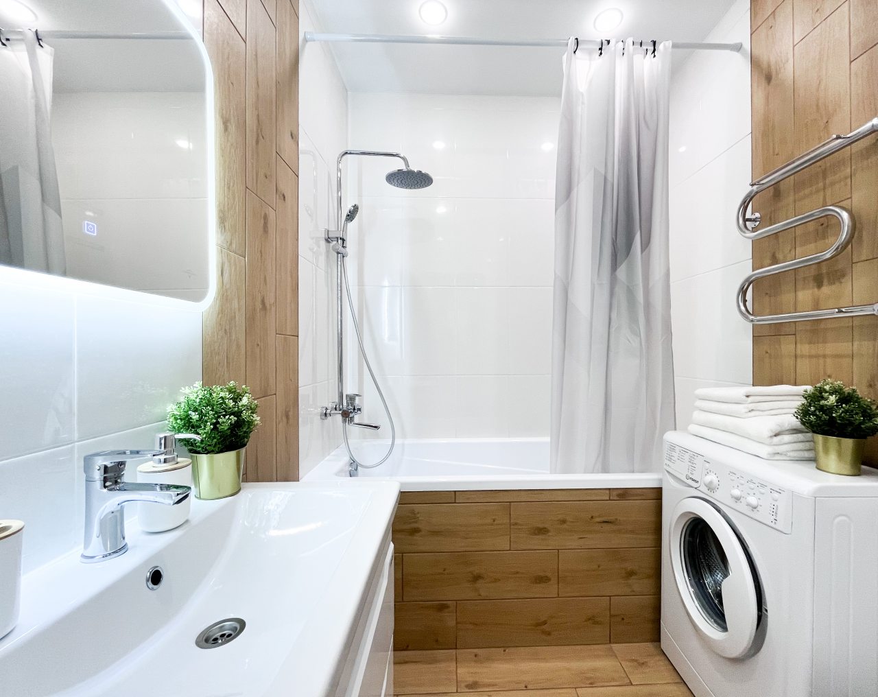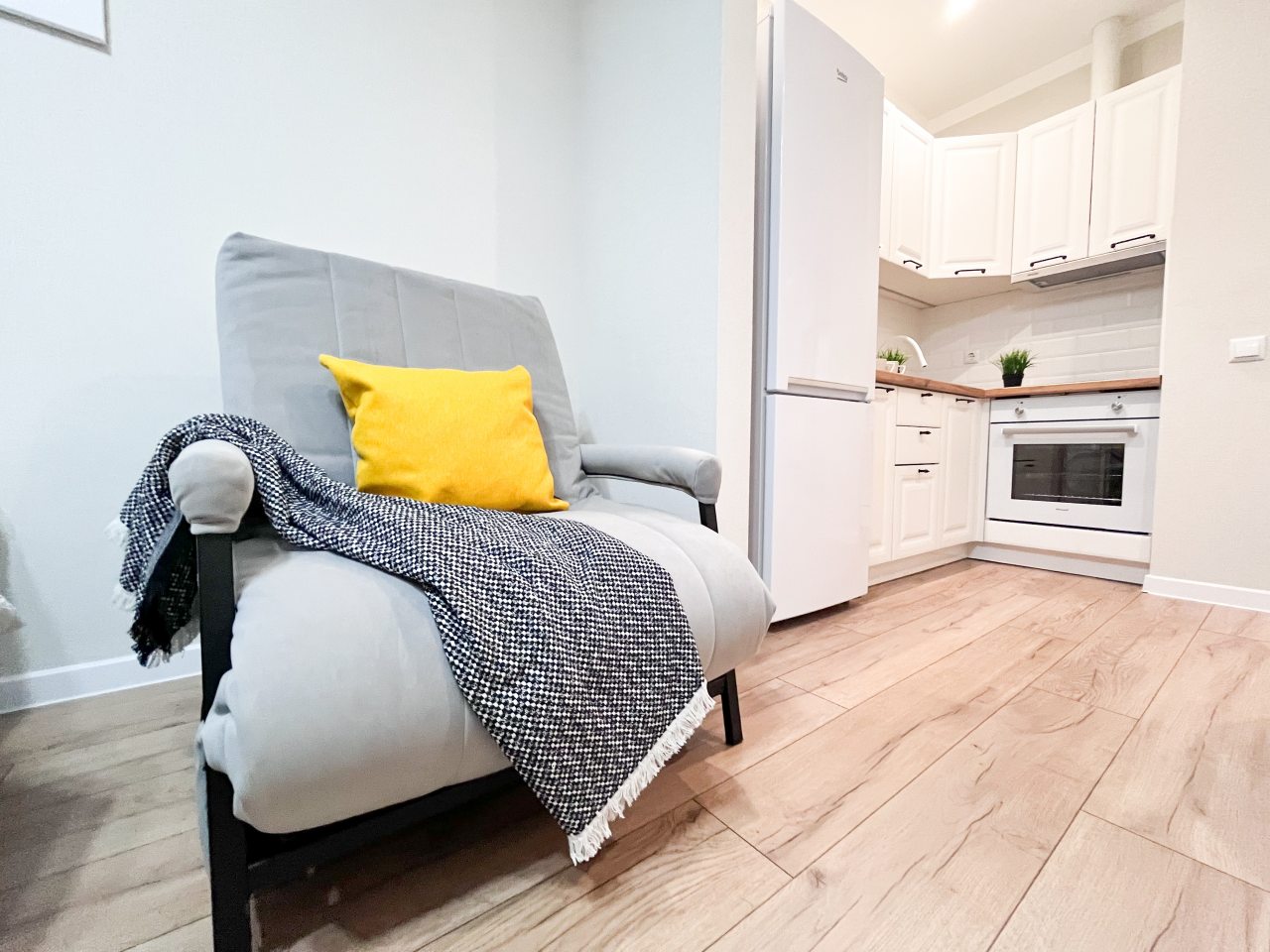 Остались хорошие впечатления от этих апартаментов. Понравился хороший ремонт и дизайн интерьера, новая бытовая техника, удобная мебель. Нареканий по поводу уборки у нас никаких нет, очень чисто, перед нашим приездом убрались. Кухня большая, отлично обустроена. Также в квартире предоставили полотенца, если бы знали, то не везли бы свои)