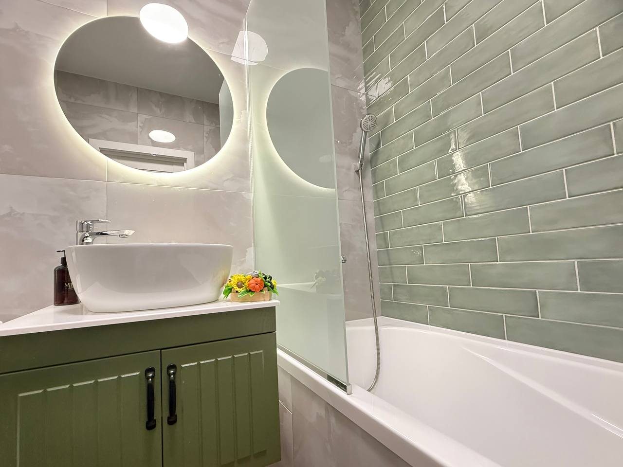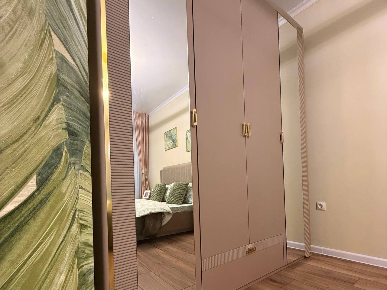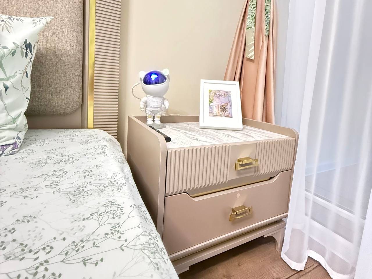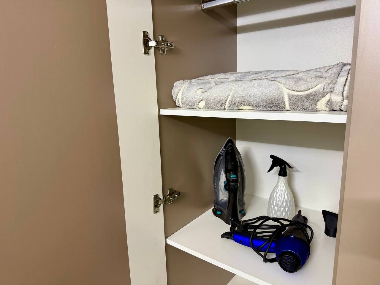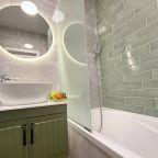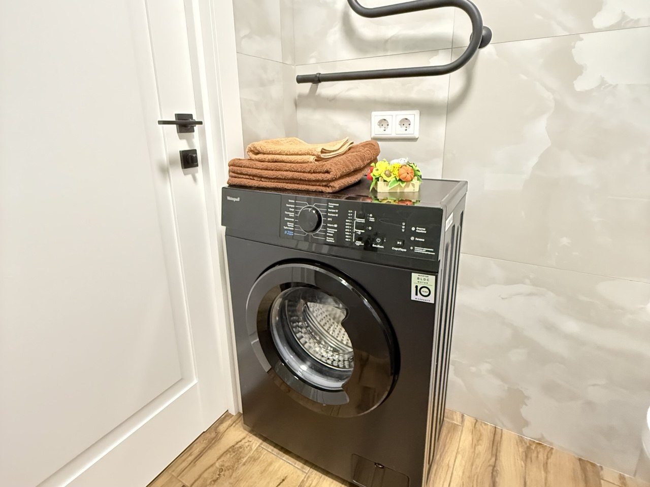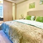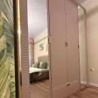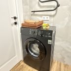 Светлая и уютная квартира оборудована двуспальной кроватью, прикроватной мебелью, шкафом, гладильными принадлежностями, диваном, кондиционером, телевизором с кабельным телевидением, точкой высокоскоростного интернета. Стильная ванная комната укомплектована современной сантехникой, средствами личной гигиены, стиральной машиной, феном.