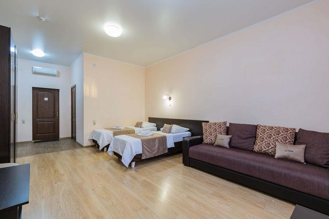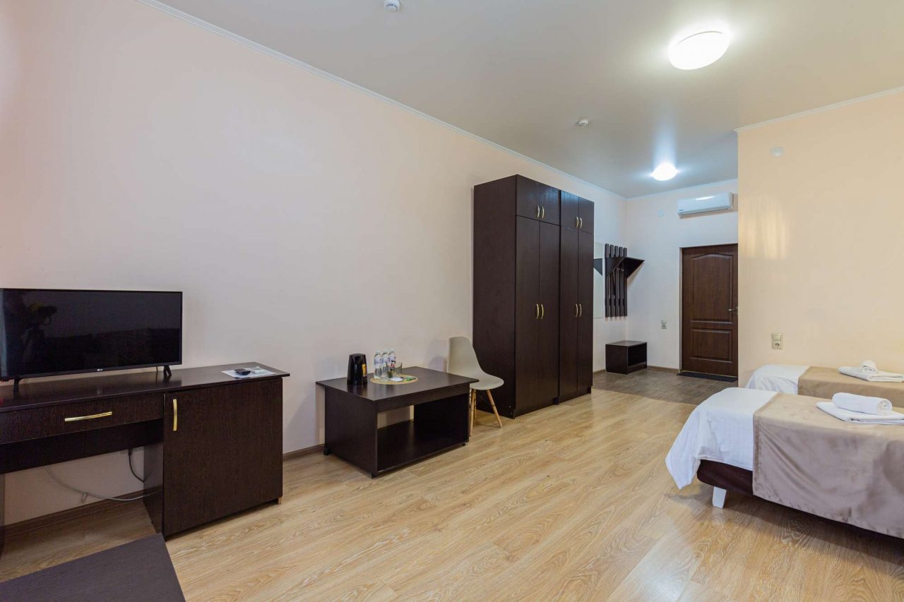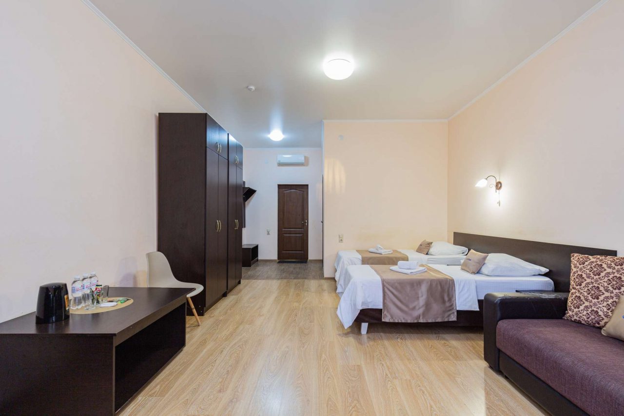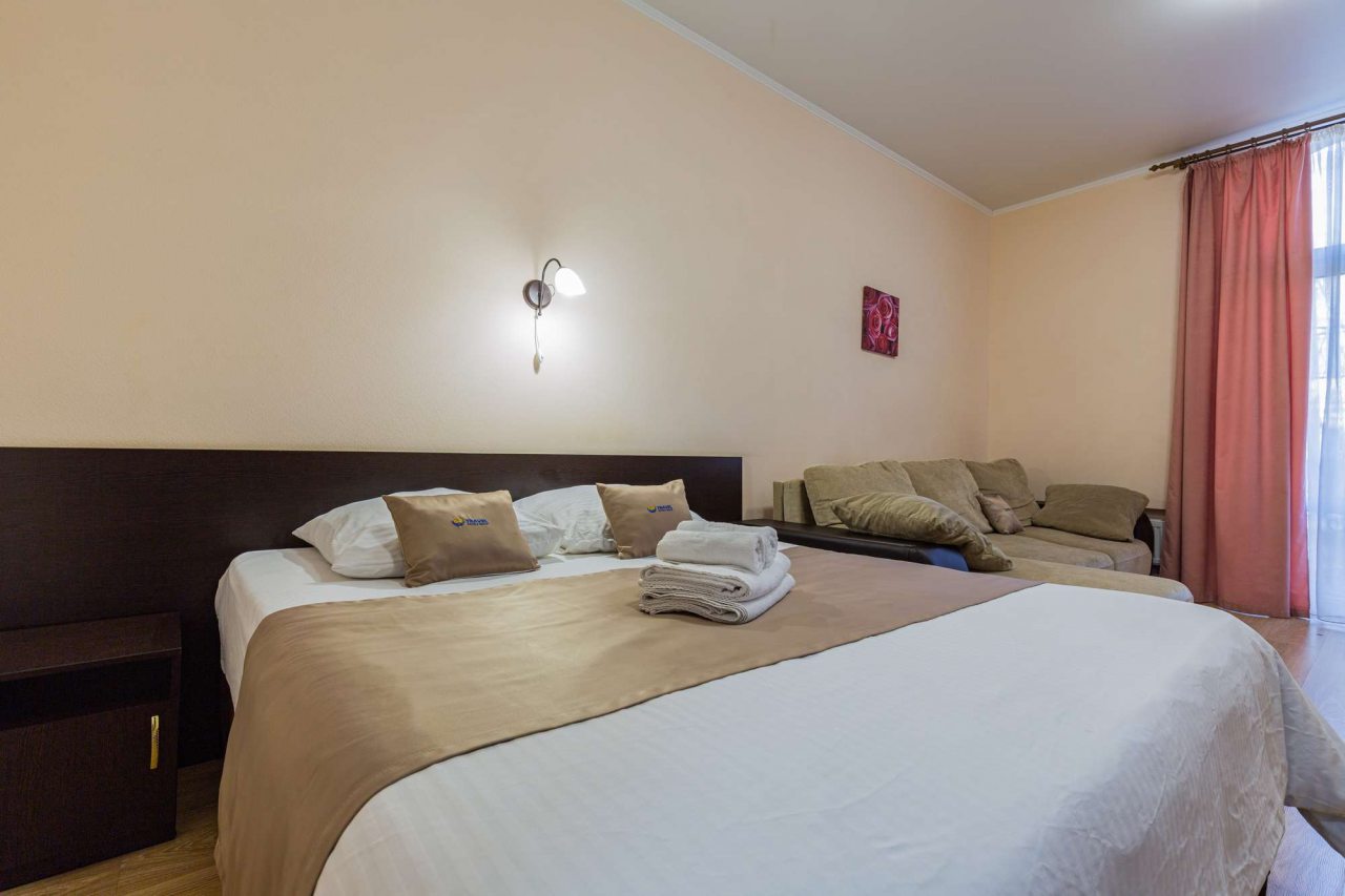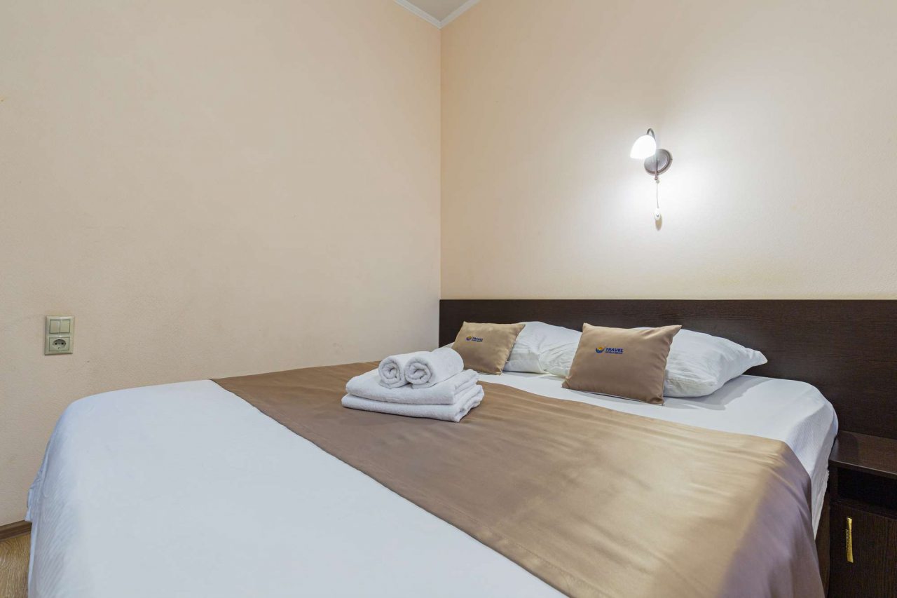 В номерном фонде имеется достаточное количество номеров для удовлетворения запросов отдыхающих. В распоряжении комнаты класса «стандарт», «семейные апартаменты», «люкс». Комната оборудована мягкой кроватью, функциональной мебелью для личных вещей; работает кондиционер с регулировкой температуры, телевизор с дополнительными каналами, холодильник. Внутри всех номеров есть собственный санузел, в котором стоит душевая кабина, раковина, туалет. В пользование выдается набор полотенец, гигиенические средства. Помещения имеют достаточную шумоизоляцию, поэтому постояльцы могут полноценно отдохнуть в атмосфере тишины.