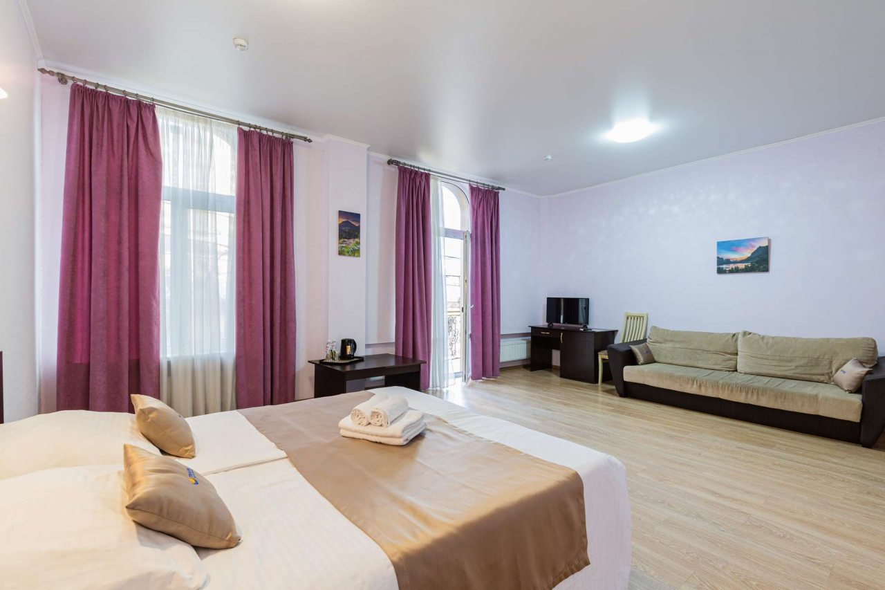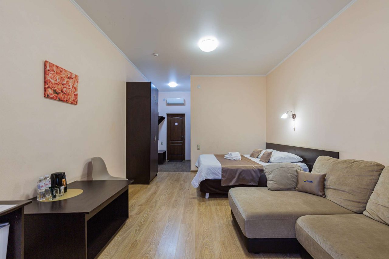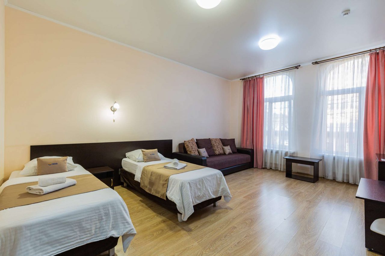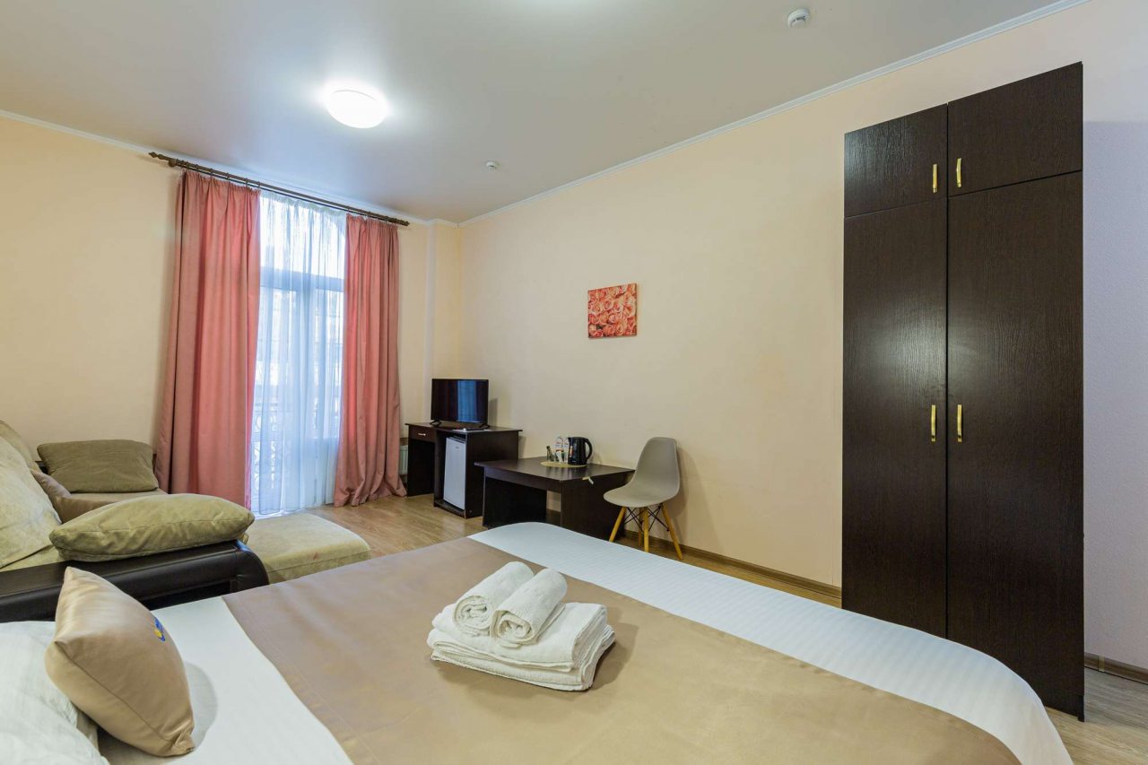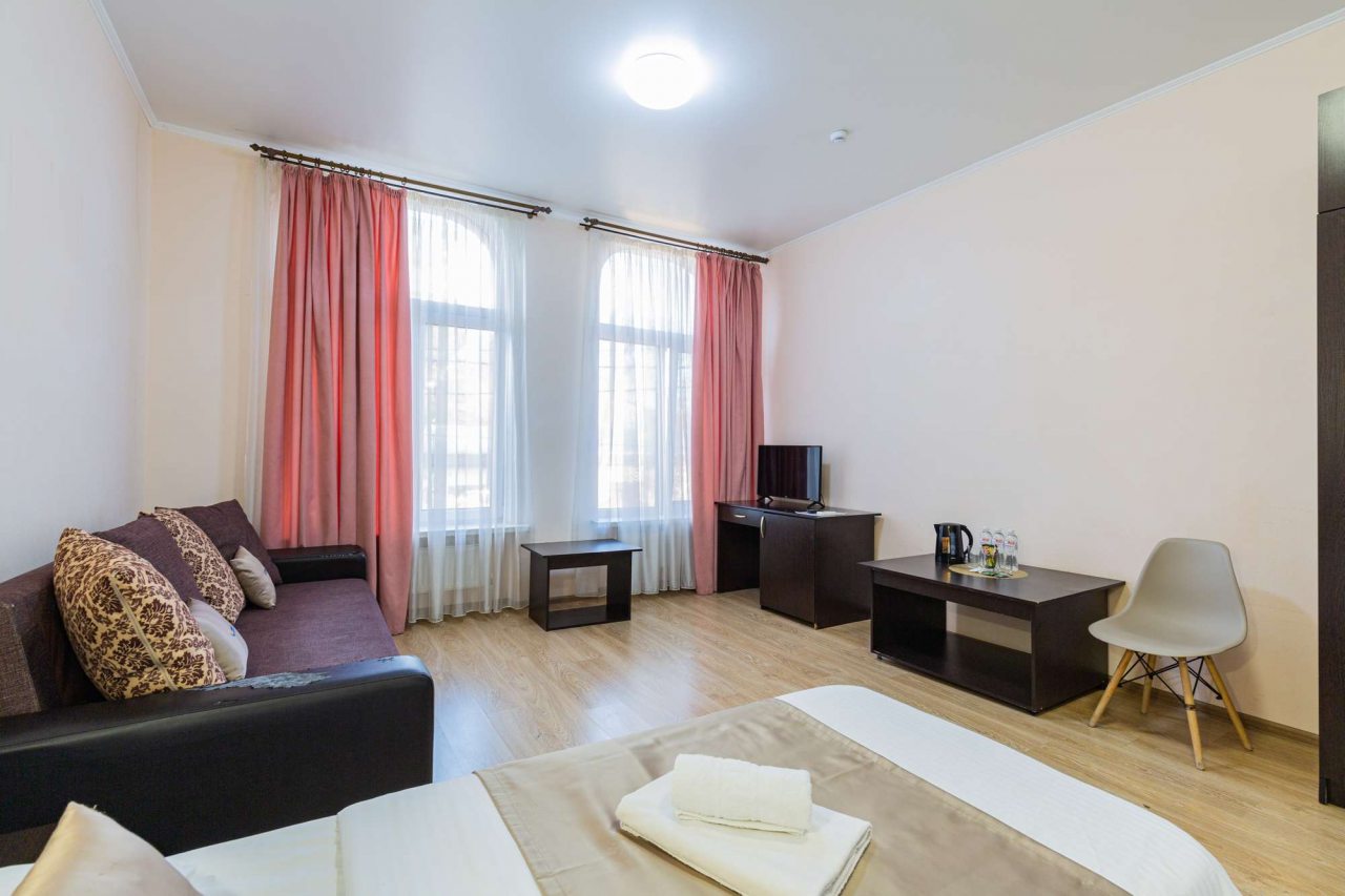 Этот отель в Ростове-на-Дону нам подошел идеально. Мы приехали вчетвером вступать в наследство. Пока решали семейные дела, нужно было где-то ночевать и есть. Вот и выбрали это место. Взяли два номера. В каждом было удобно, свои ванные, все чистенько, тихо спать было. Есть кухня с техникой и столы для питания.
