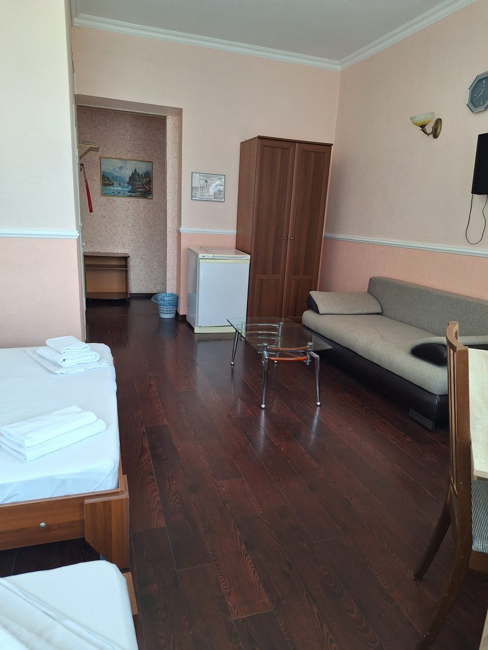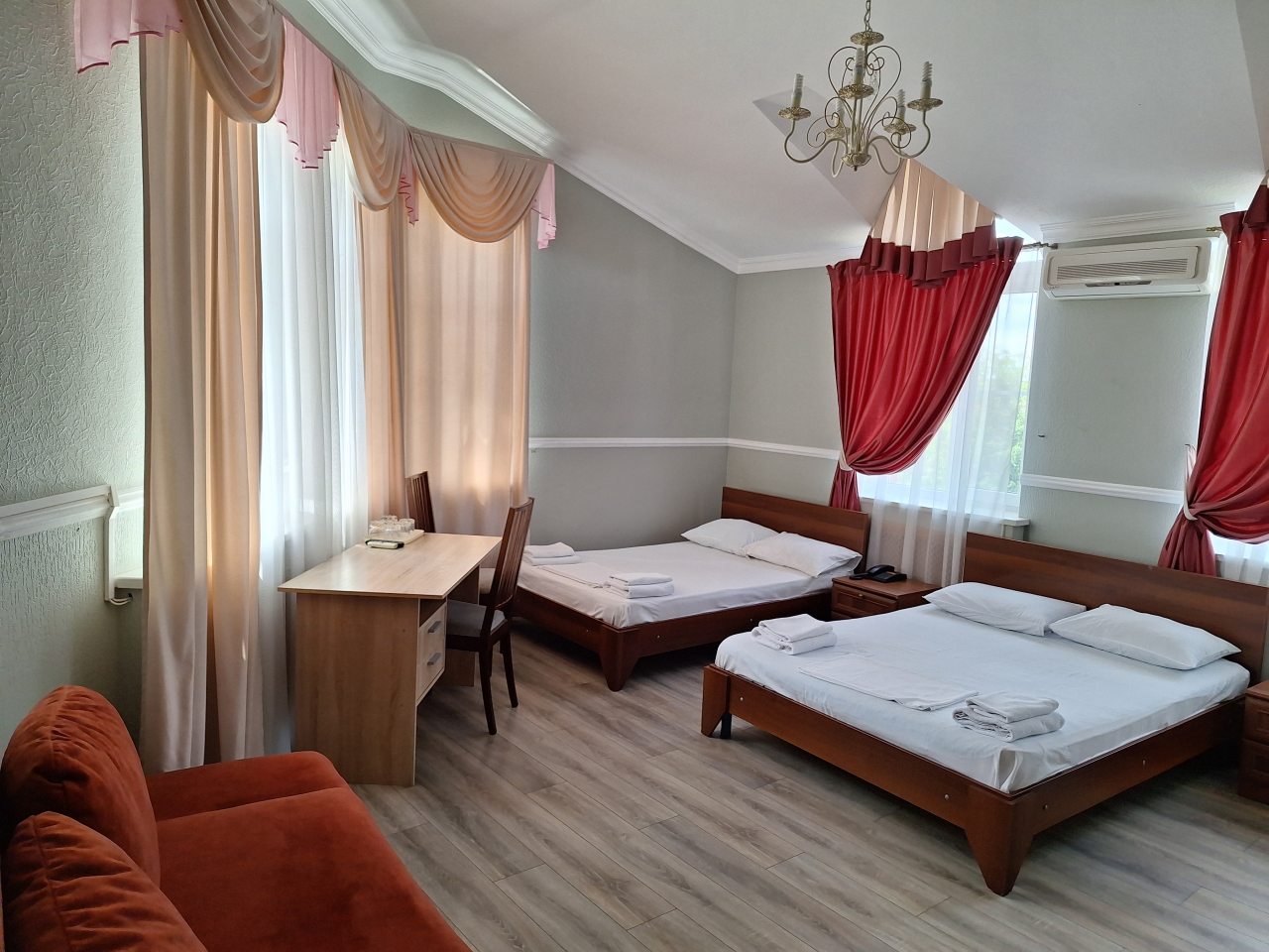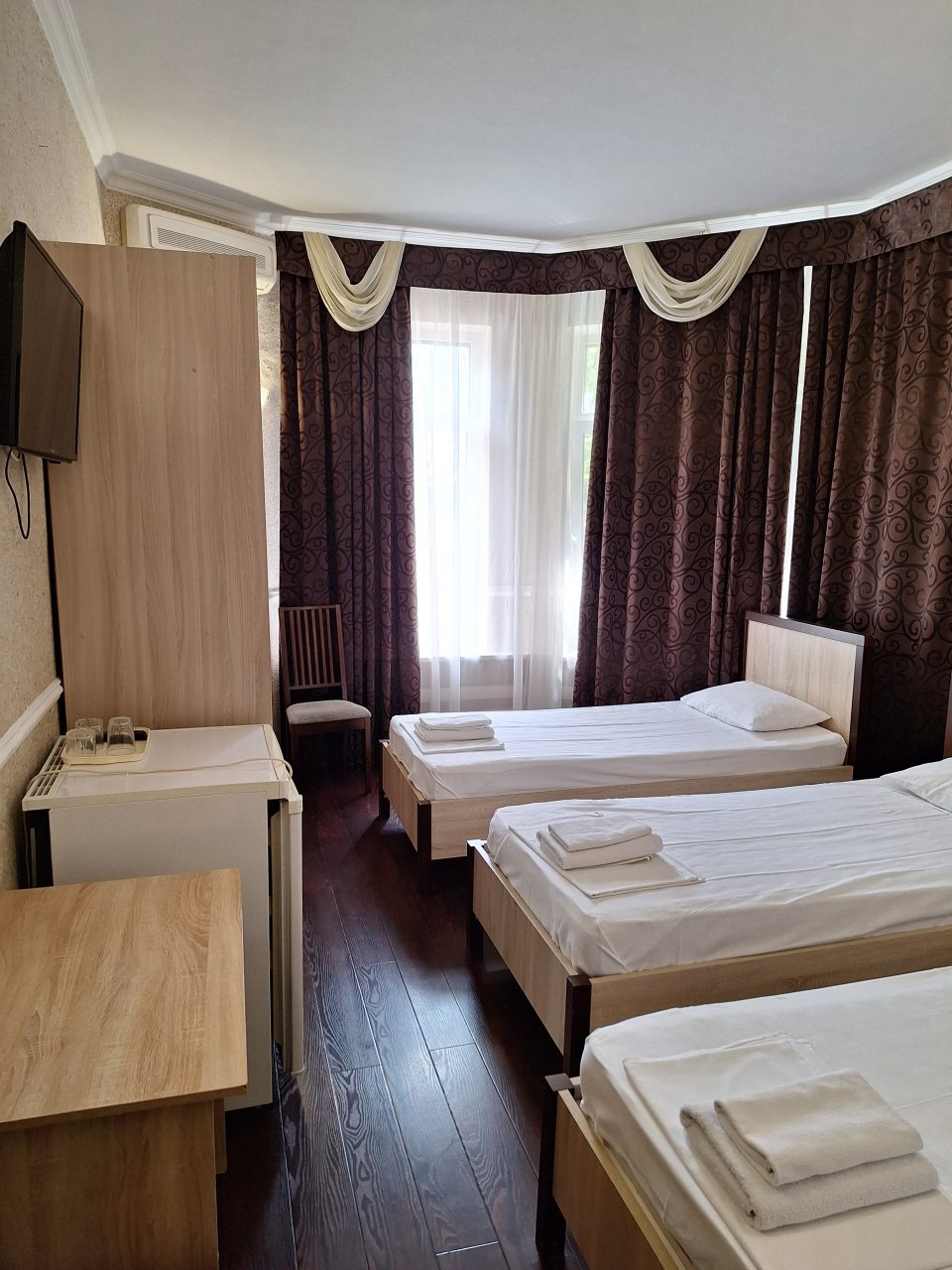 Отель находится в частном секторе, в тихом районе. Понравилась обстановка внутри и во дворе. В номере, коридоре, на улице все чисто. Недалеко от гостиницы есть небольшой рынок с фруктами, палатки с разливным пивом, магазин магнит.