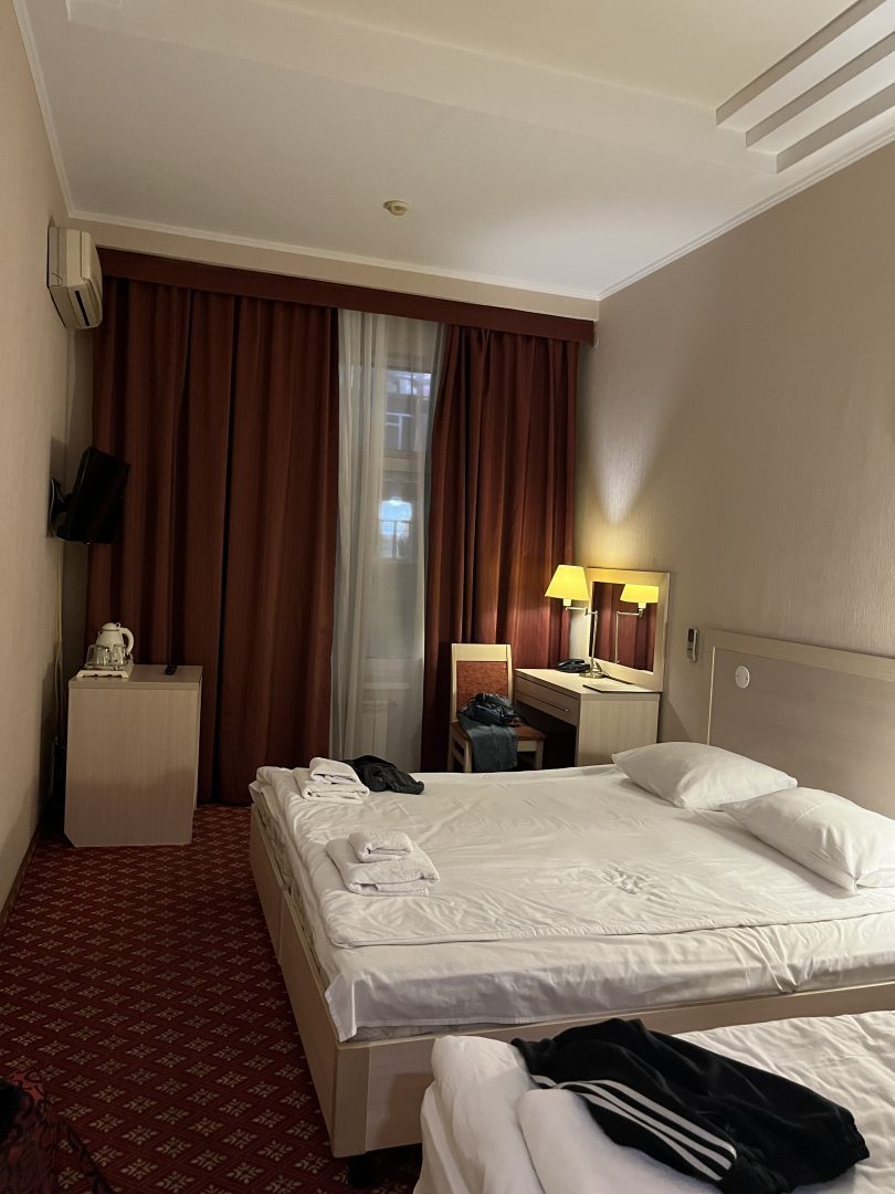 Номер не плохой, ремонт конечно еще с 2000х годов, но в номере чисто, все работало, есть холодильник, чайник, телевизор, в сан узле есть фен. Были в декабре, в номере очень тепло