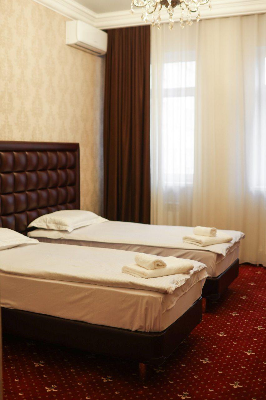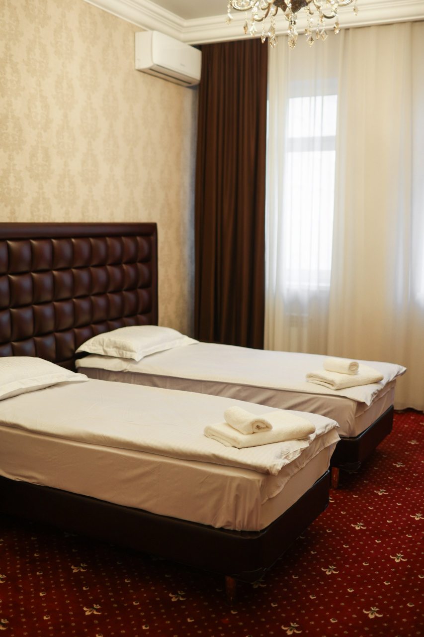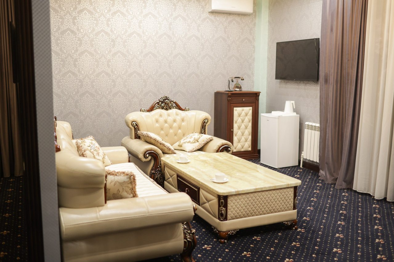 Номера доступны различных категорий, чтобы каждый гость смог подобрать подходящий ему вариант. Внутри каждого вас ожидает качественная мебель и техника, в том числе удобные кровати, кондиционер, индивидуальный санузел с душевой, раковиной и туалетом.