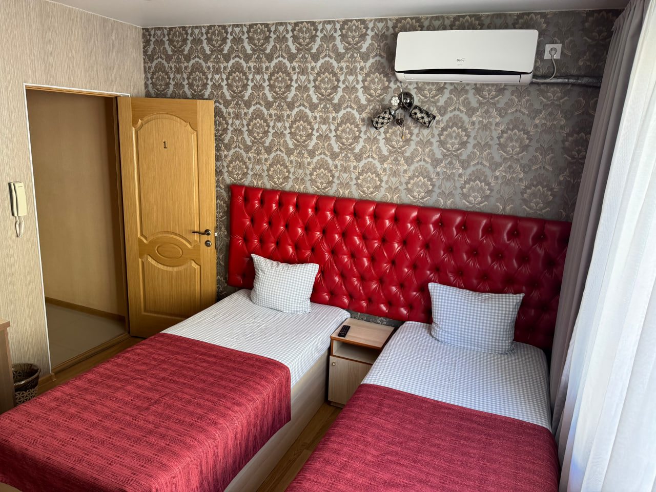 Внутри номера есть всё для качественного отдыха: от двуспальной кровати с мягким изголовьем и белоснежным постельным бельём до кондиционера и вместительного шкафа. Среди дополнительных удобств — затемнённые шторы для крепкого сна и доступ к Wi-Fi. Санузел оборудован душем, феном и средствами для личной гигиены.