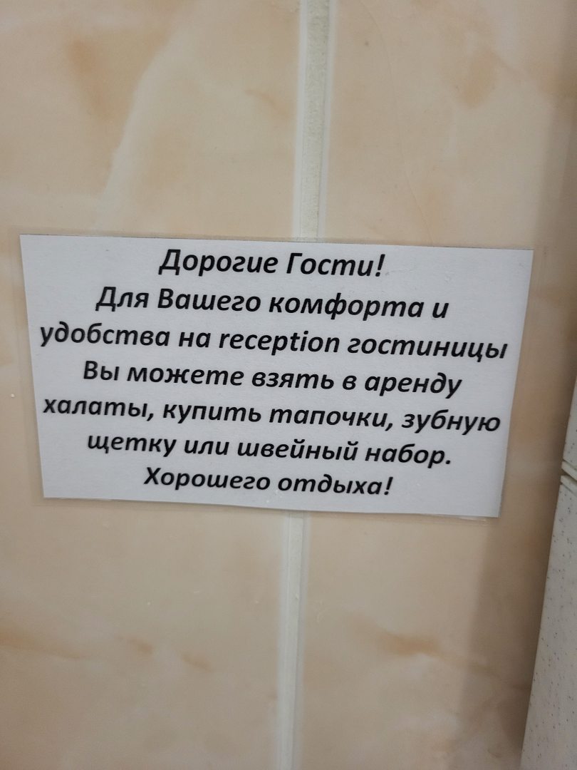 Из недостатков: к приезду номер был не готов,в номере люкс старая душевая кабина,которую давно пора выбросить,неудобные пружинные матрасы,номер требует ремонта,зубная паста и зуб щетка,тапочки,халаты,пакетики чая и кофе платные.
