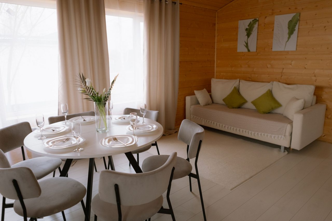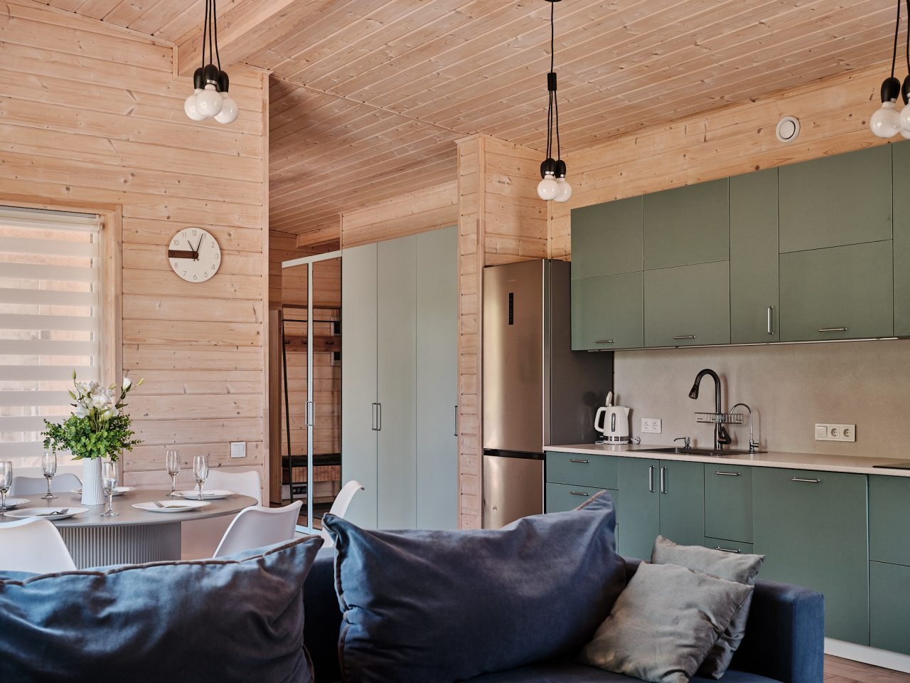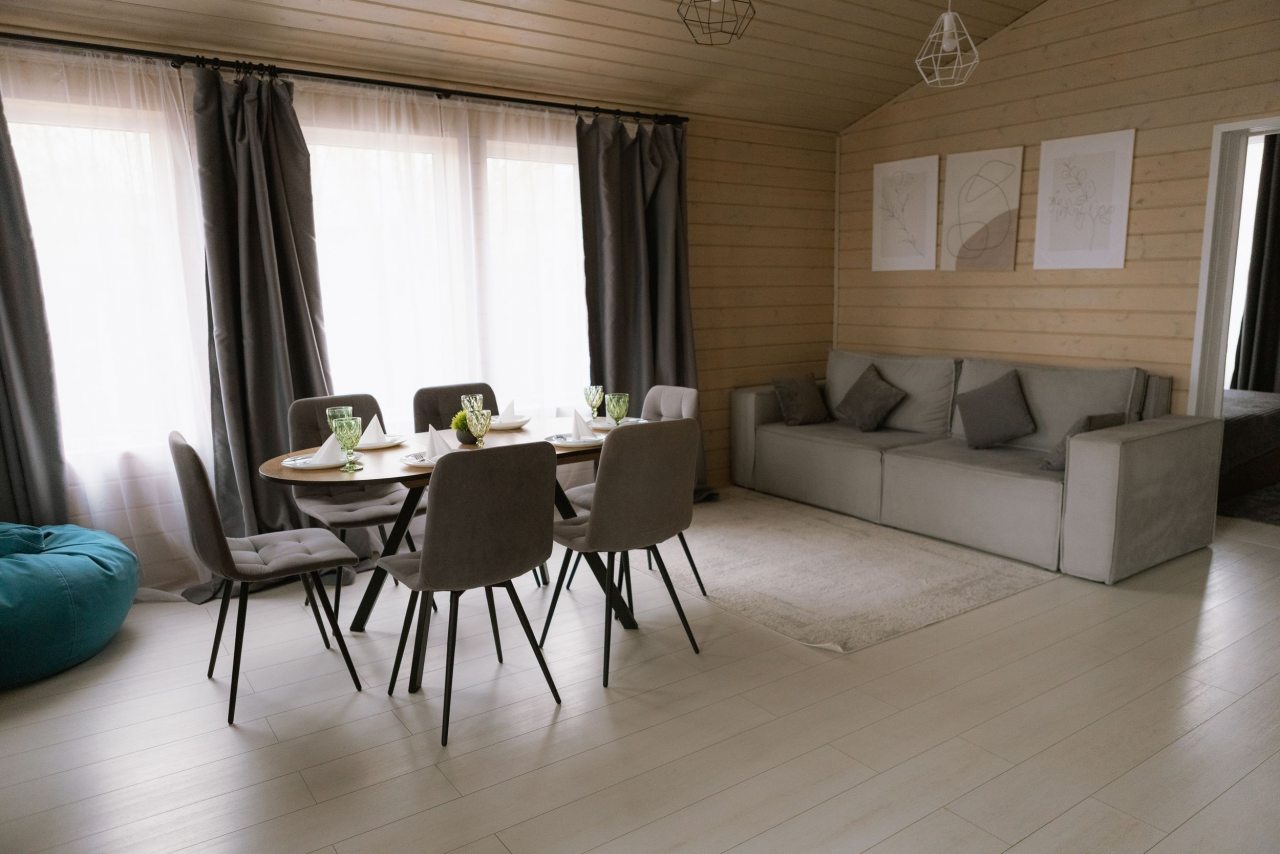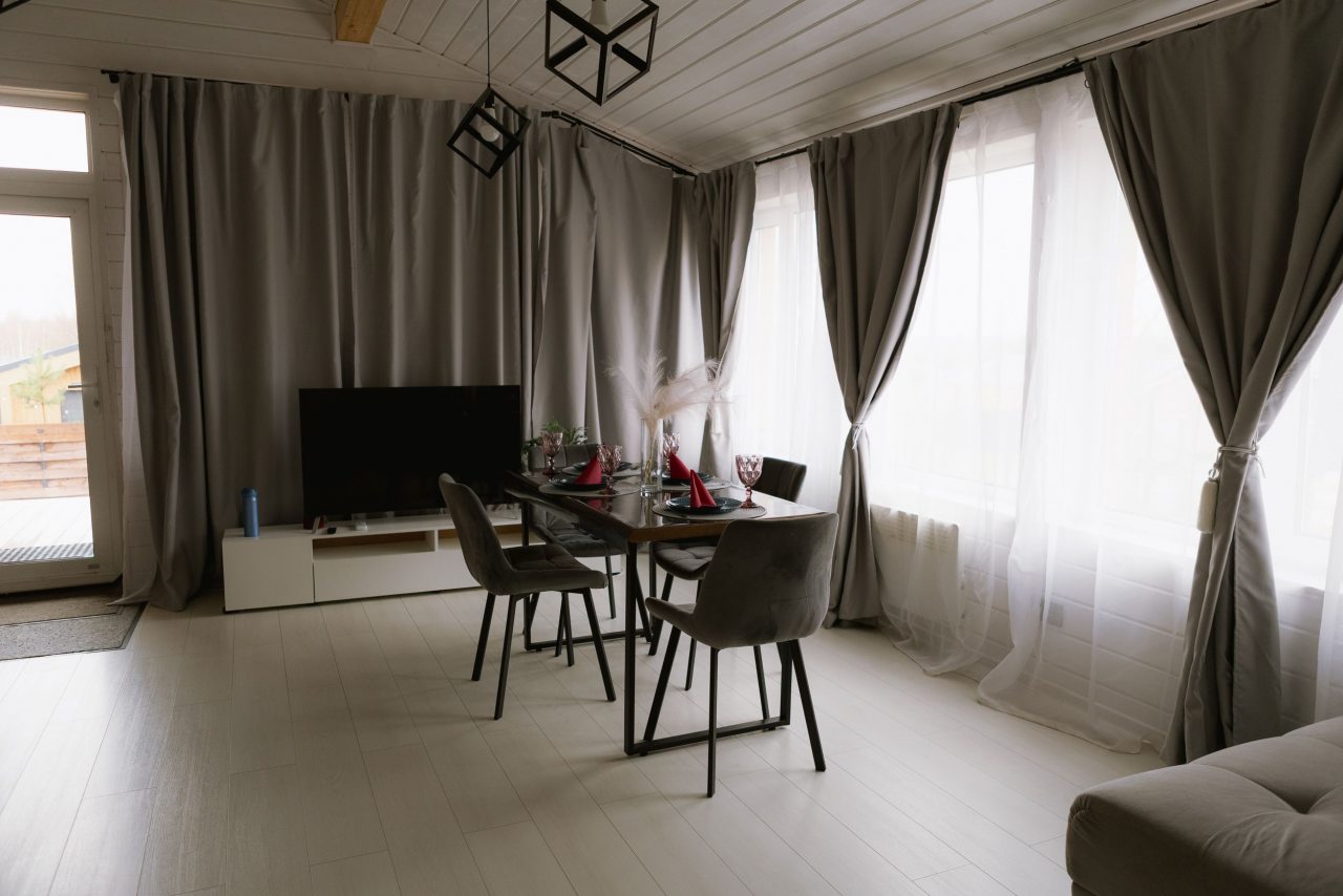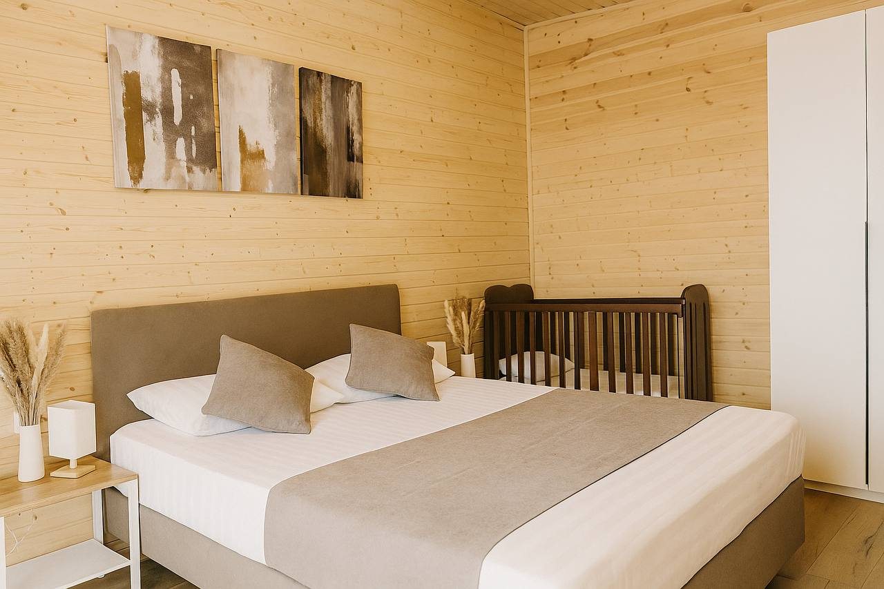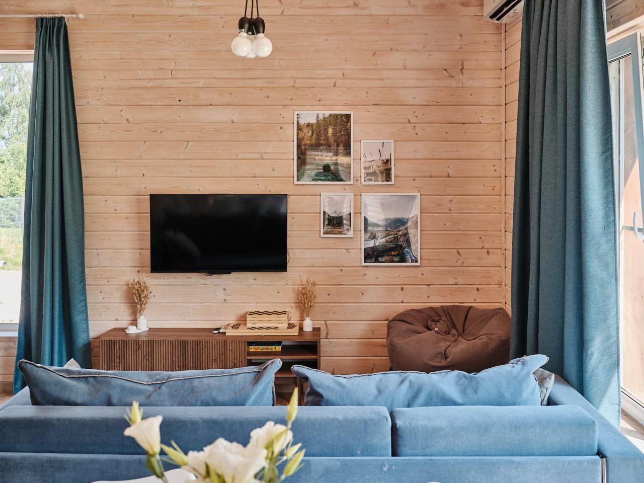 Предлагаемые коттеджи с тремя спальнями, террасой и просторной гостиной-кухней, оснащены комфортными спальными местами (до восьми мест включительно), мебелью, широким диваном, телевизором со Smart TV с сотнями лучших фильмов и сериалов, а также Wi-Fi для доступа к интернету. В ванной комнате есть стиральная машина, набор полотенец, фен и средства личной гигиены.