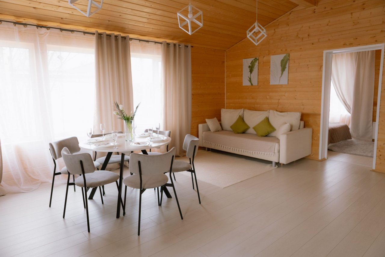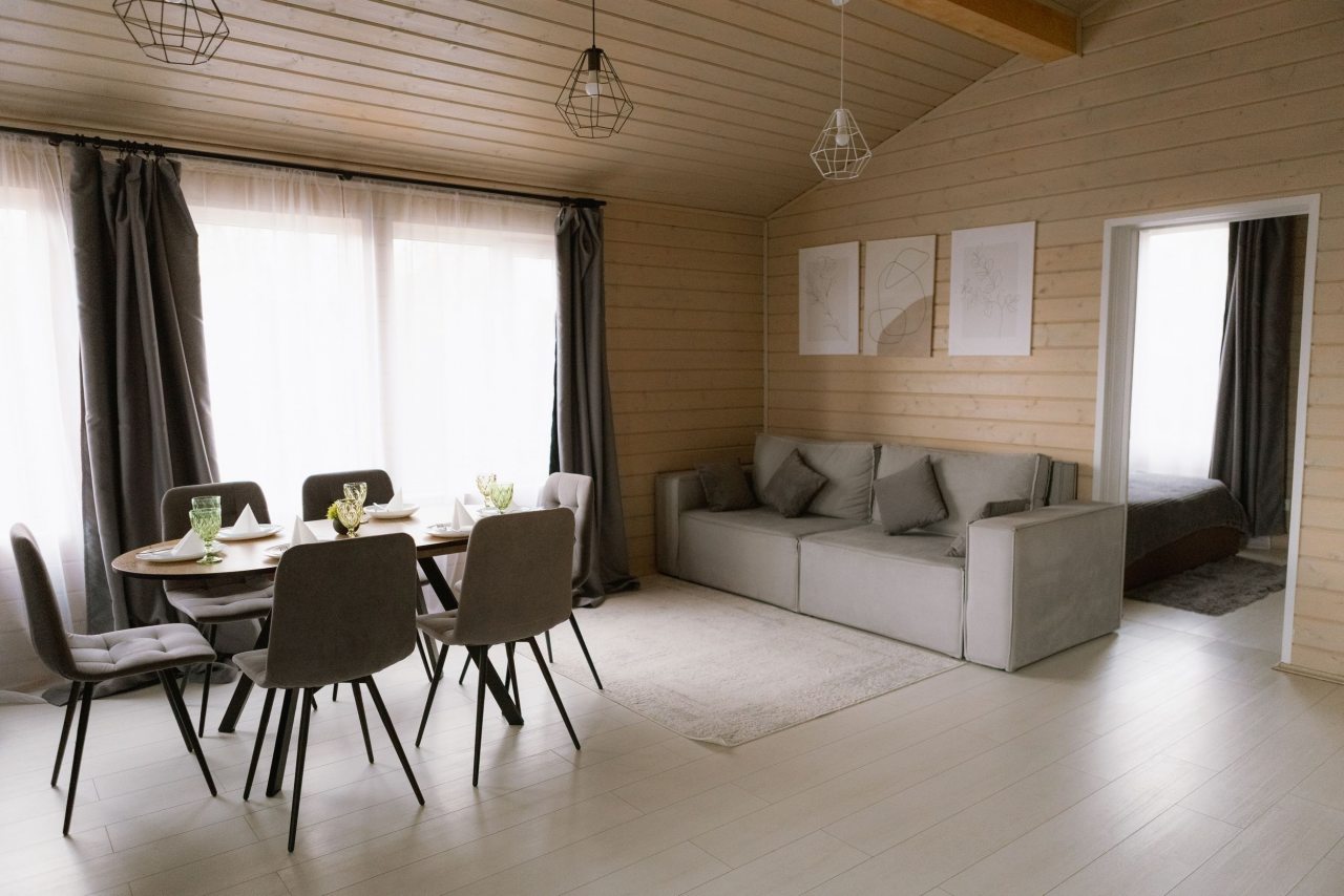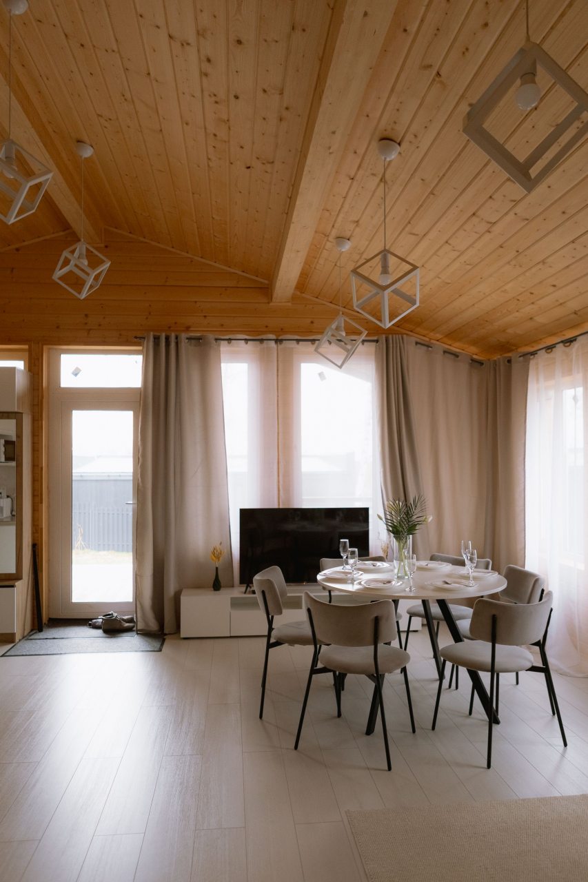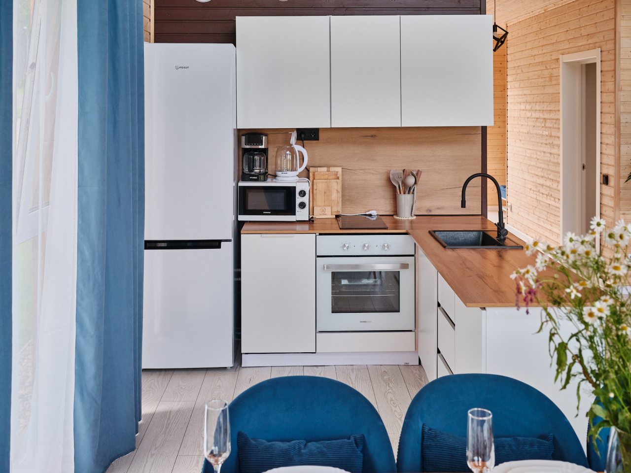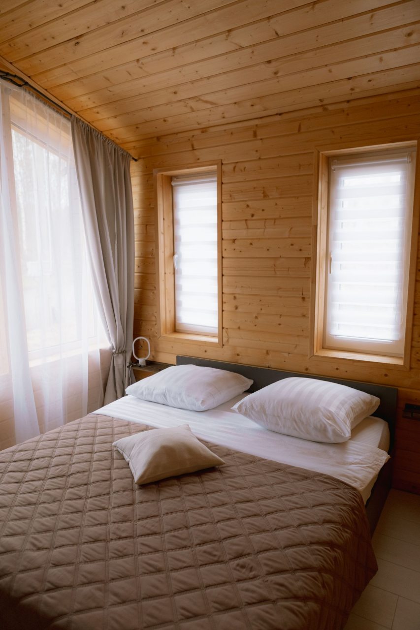 Предлагаемые коттеджи с тремя спальнями, террасой и просторной гостиной-кухней, оснащены комфортными спальными местами (до восьми мест включительно), мебелью, широким диваном, телевизором со Smart TV с сотнями лучших фильмов и сериалов, а также Wi-Fi для доступа к интернету. В ванной комнате есть стиральная машина, набор полотенец, фен и средства личной гигиены.