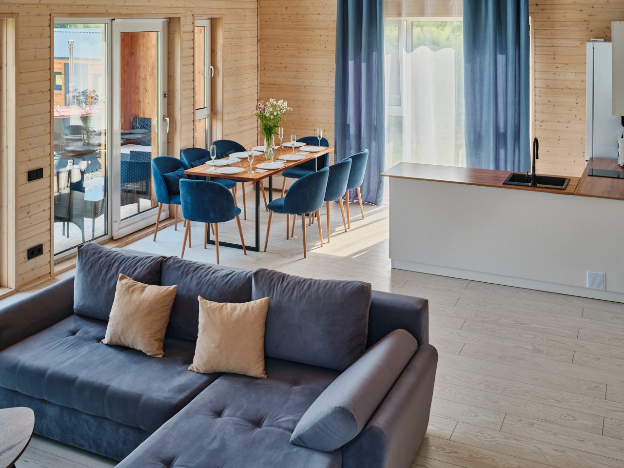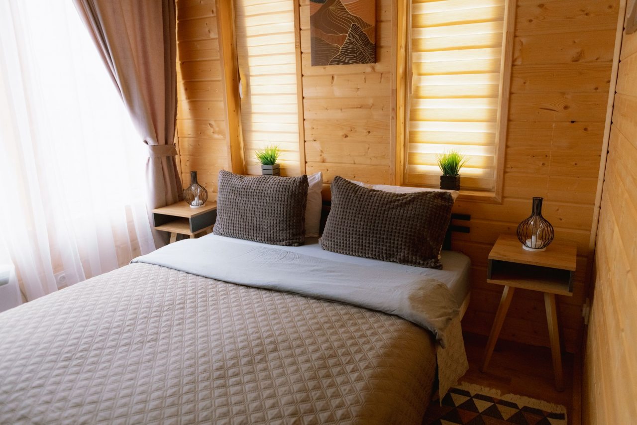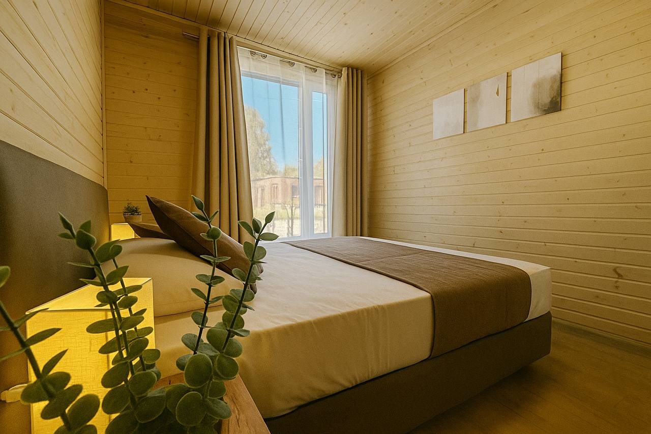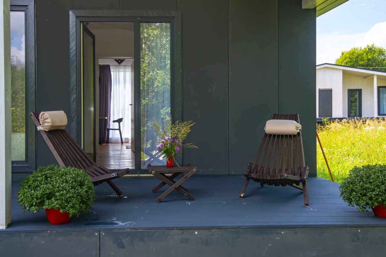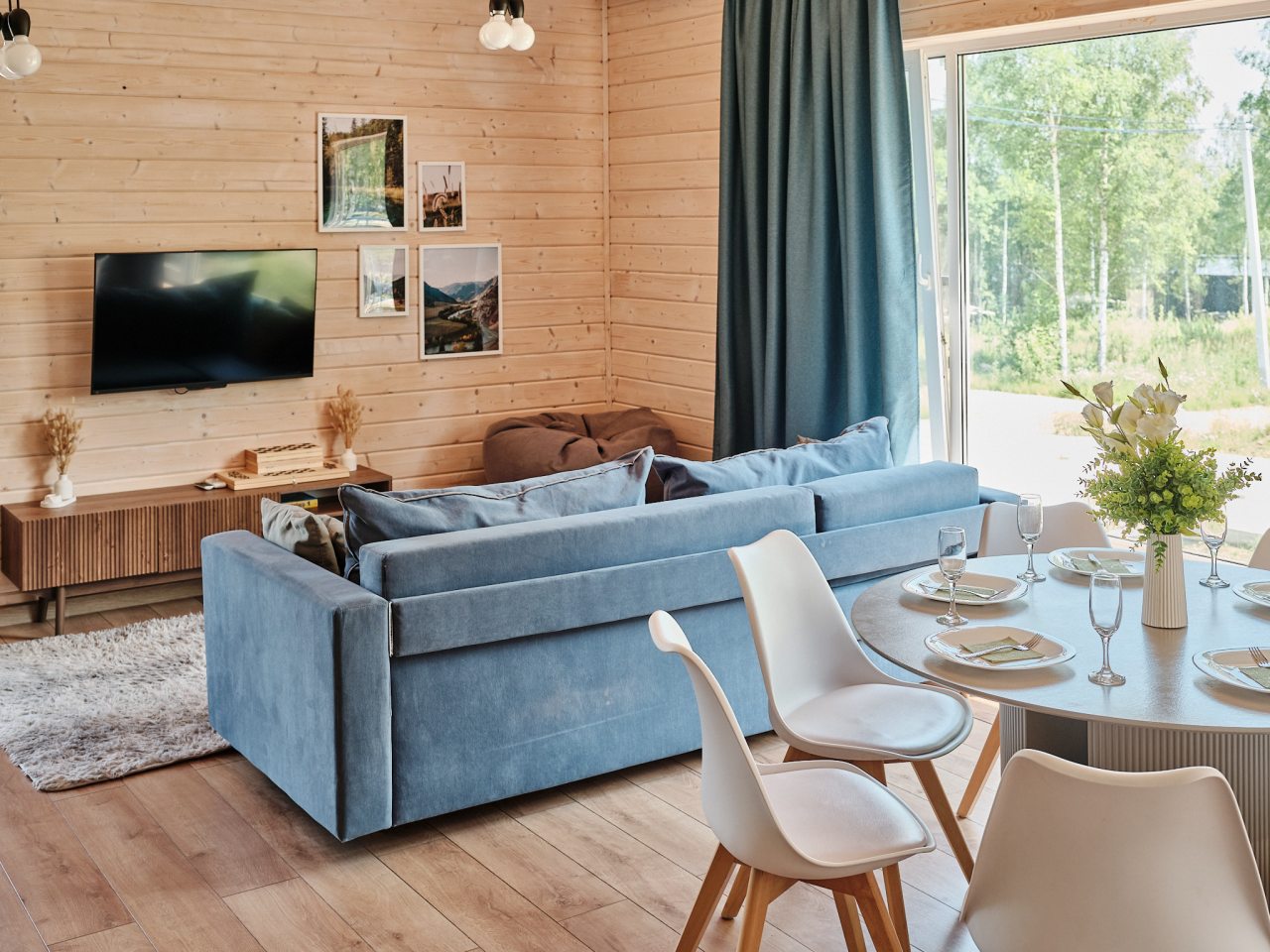 Предлагаемые коттеджи с тремя спальнями, террасой и просторной гостиной-кухней, оснащены комфортными спальными местами (до восьми мест включительно), мебелью, широким диваном, телевизором со Smart TV с сотнями лучших фильмов и сериалов, а также Wi-Fi для доступа к интернету. В ванной комнате есть стиральная машина, набор полотенец, фен и средства личной гигиены.