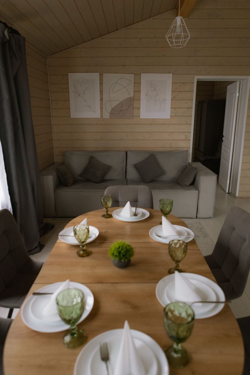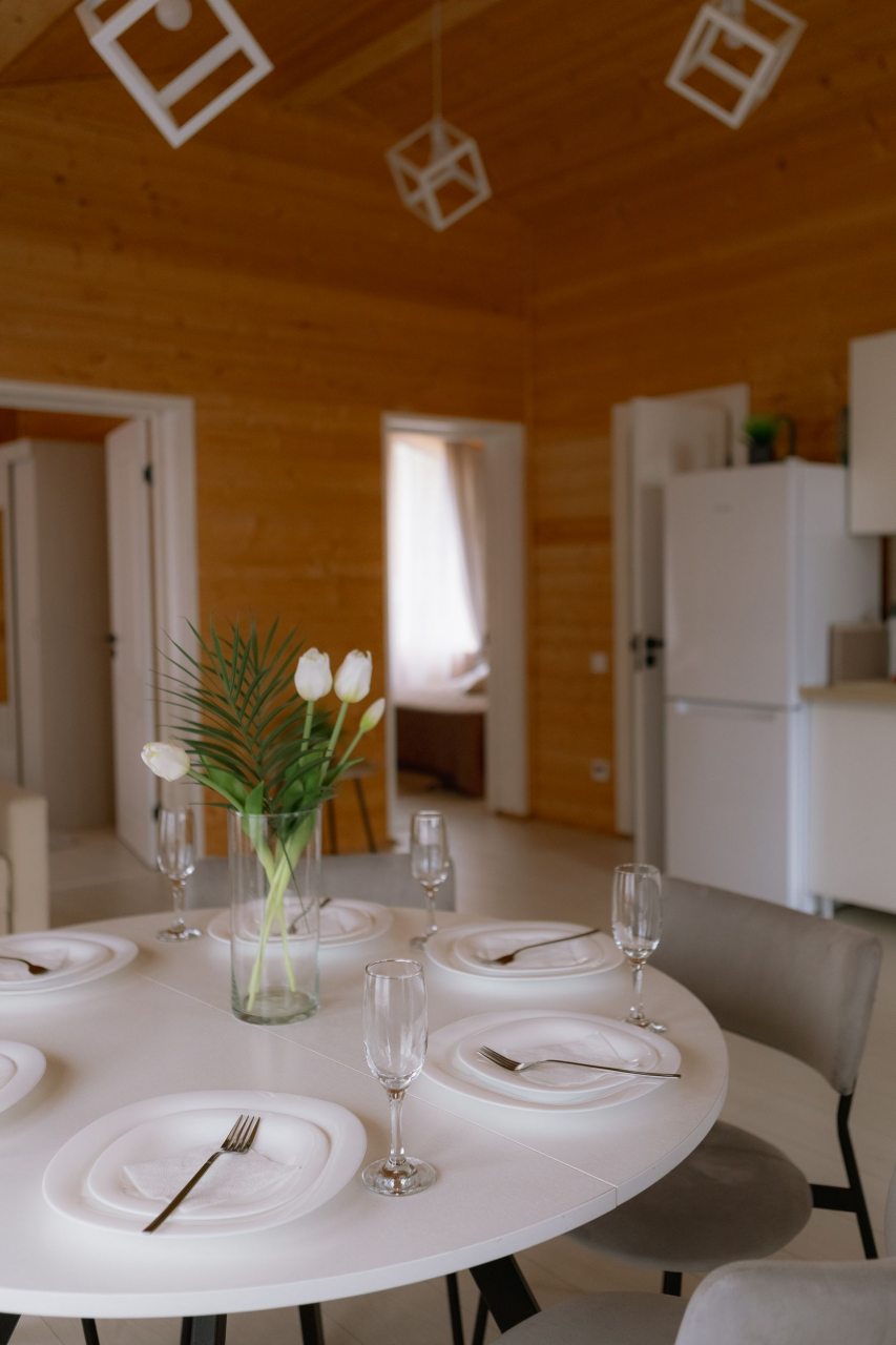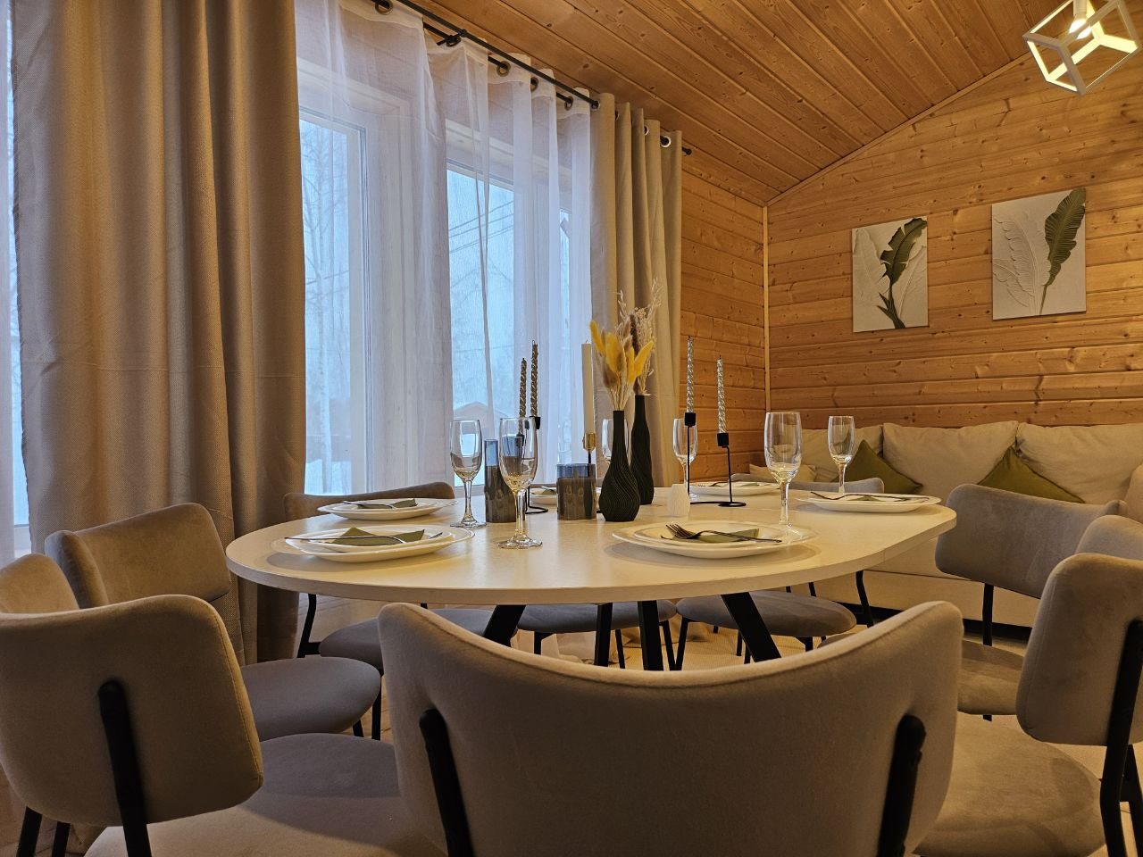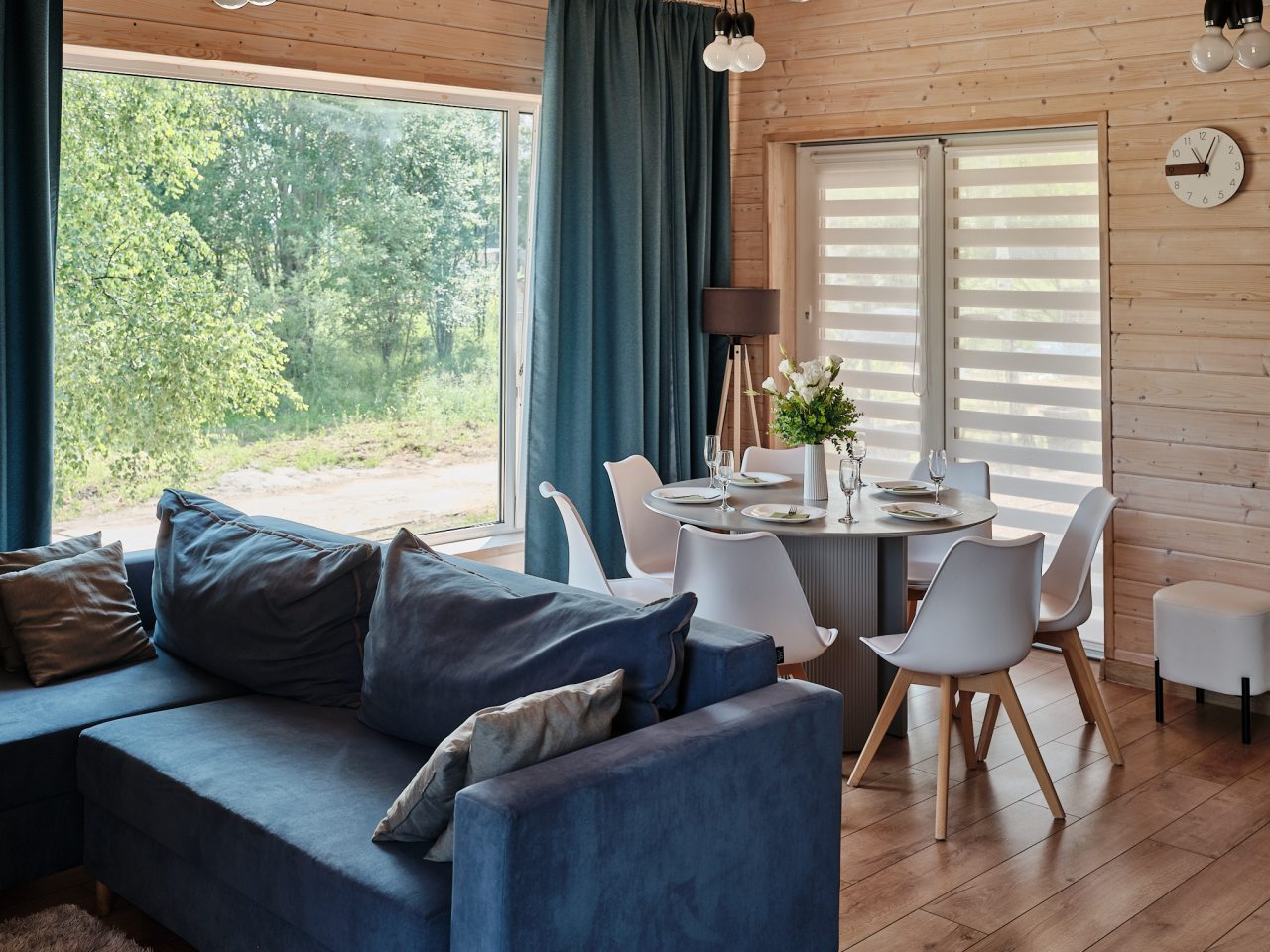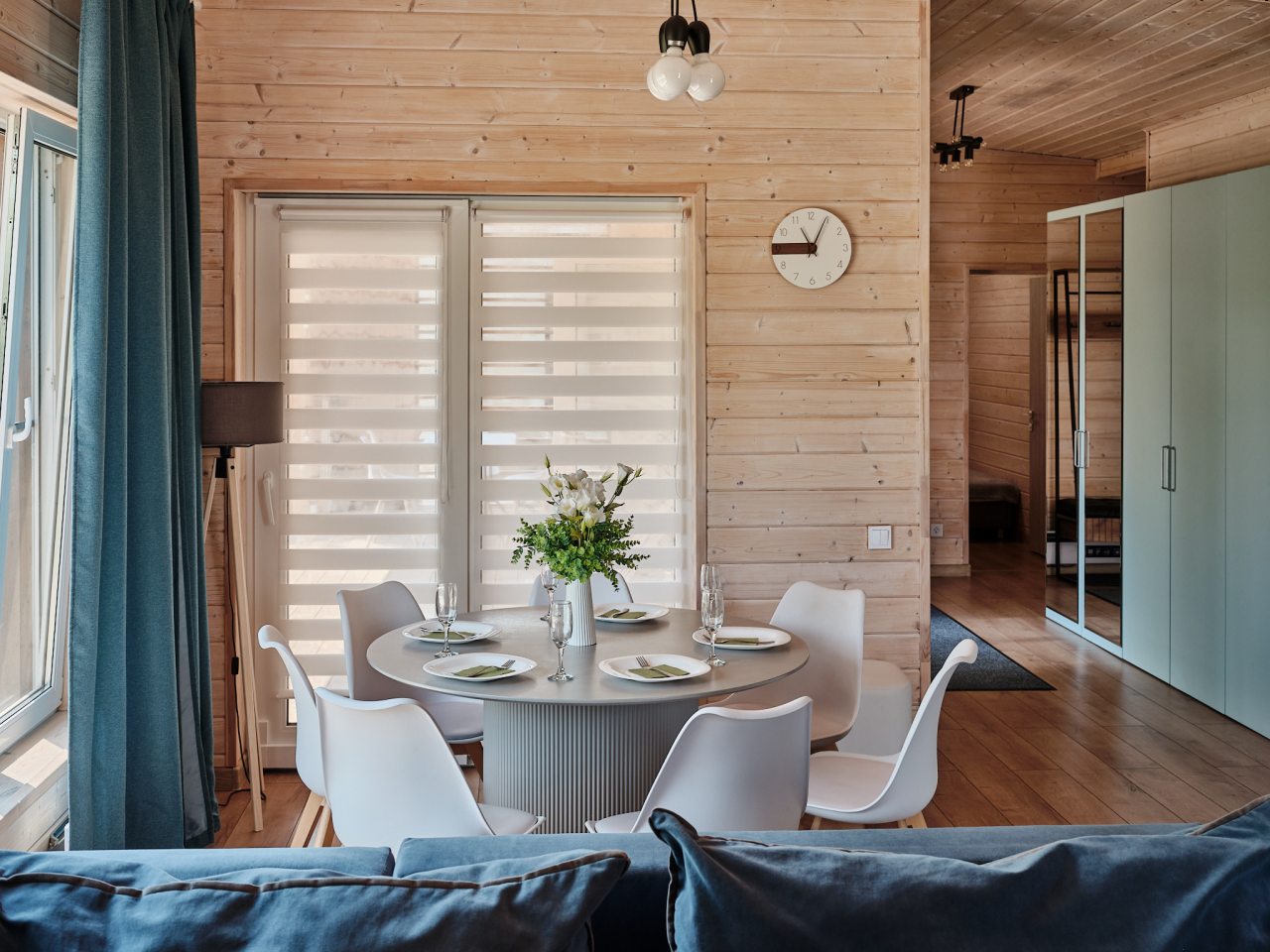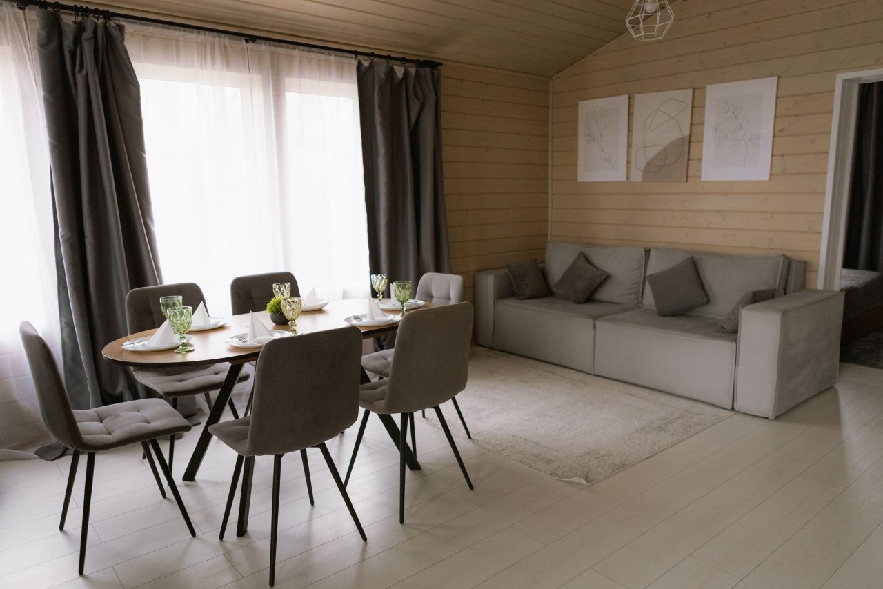 Предлагаемые коттеджи с тремя спальнями, террасой и просторной гостиной-кухней, оснащены комфортными спальными местами (до восьми мест включительно), мебелью, широким диваном, телевизором со Smart TV с сотнями лучших фильмов и сериалов, а также Wi-Fi для доступа к интернету. В ванной комнате есть стиральная машина, набор полотенец, фен и средства личной гигиены.