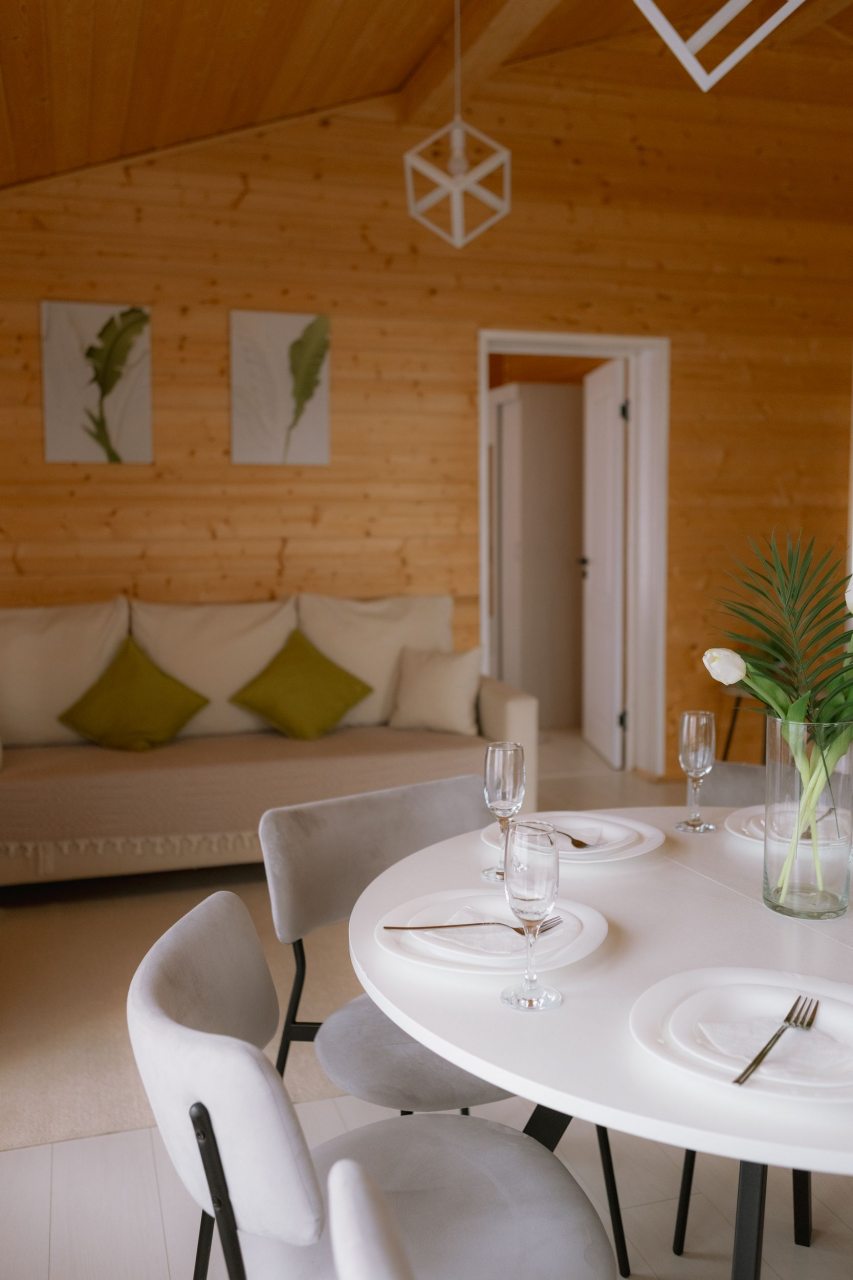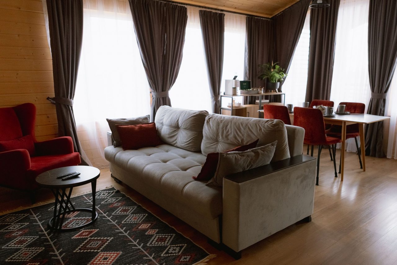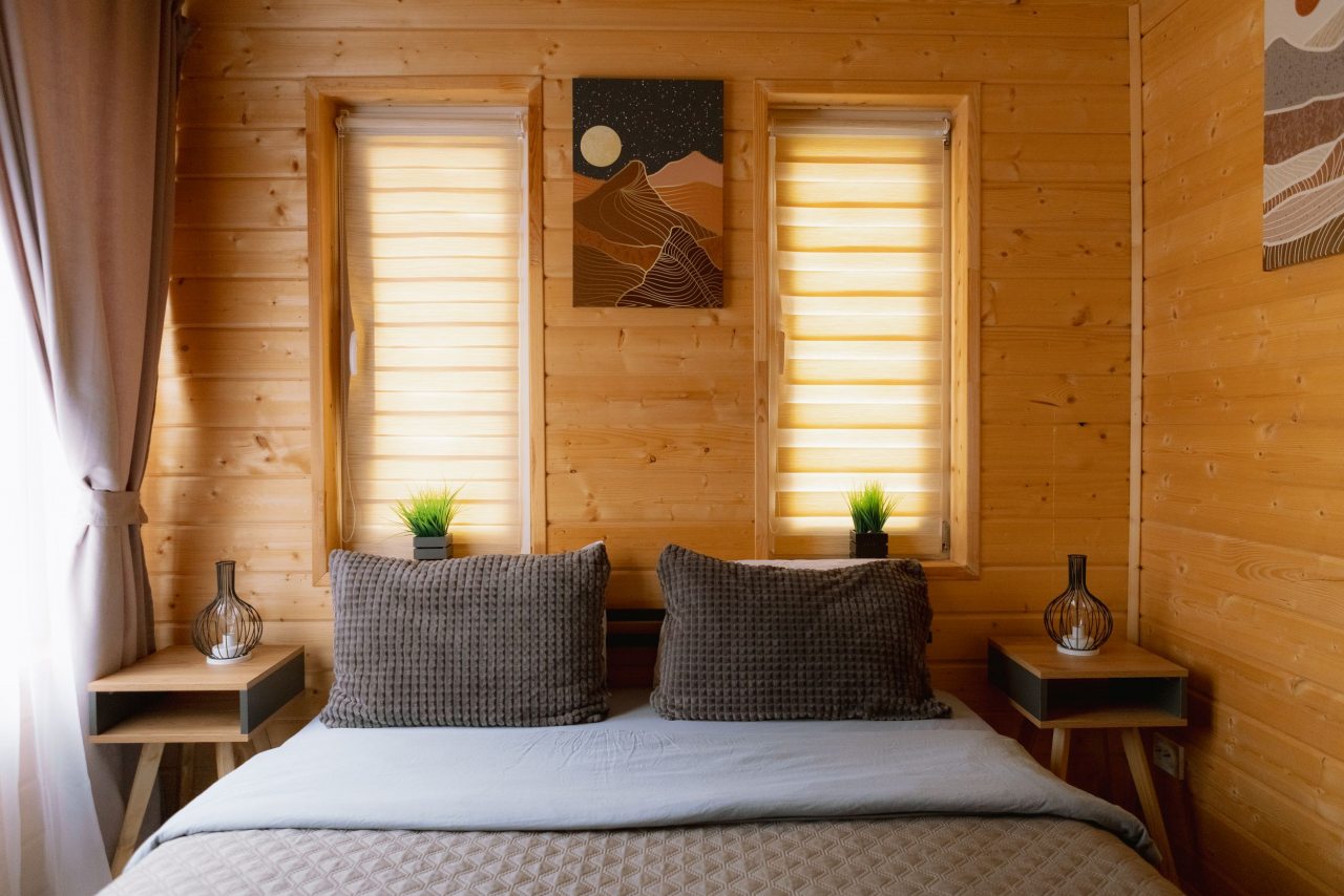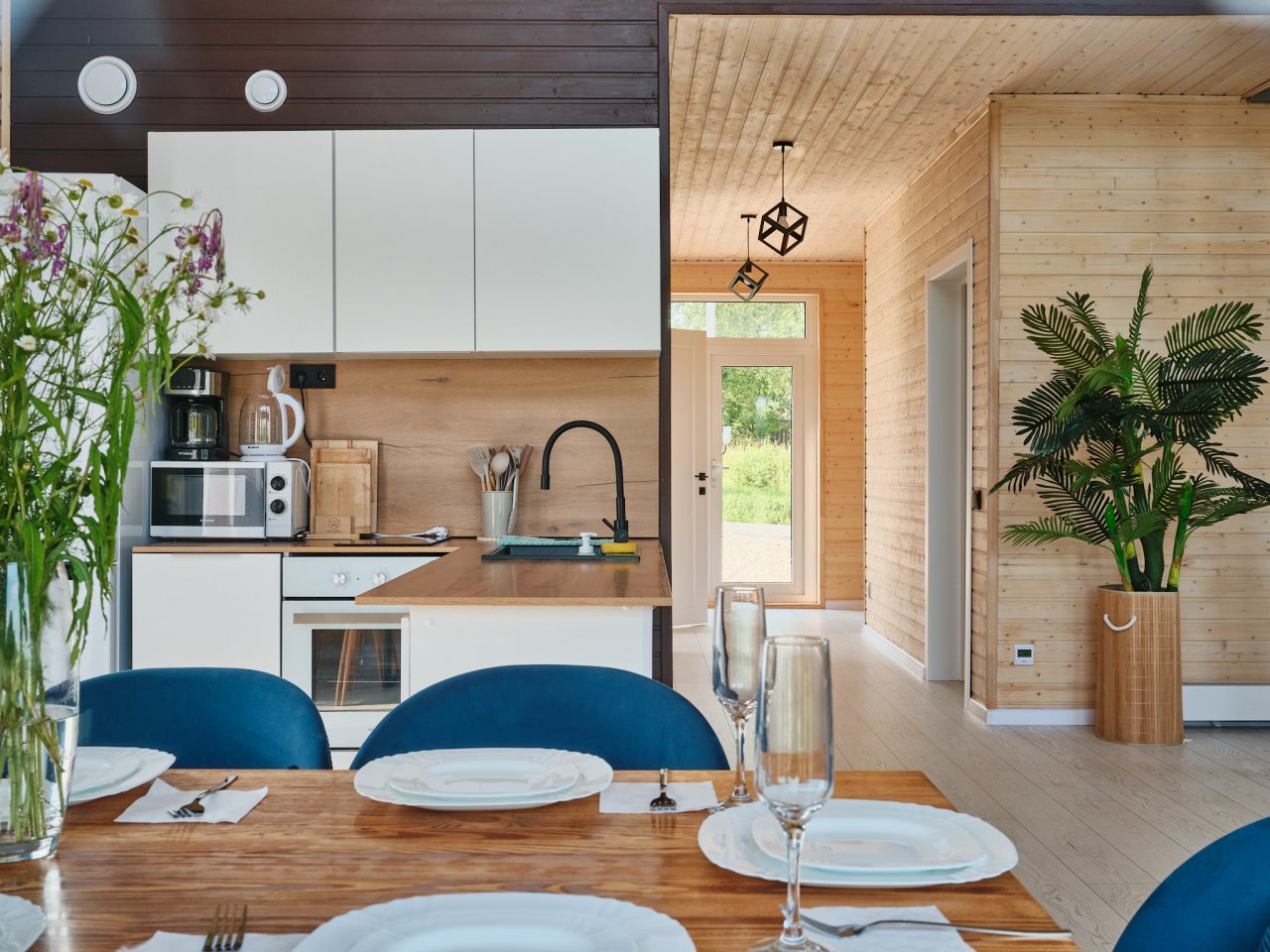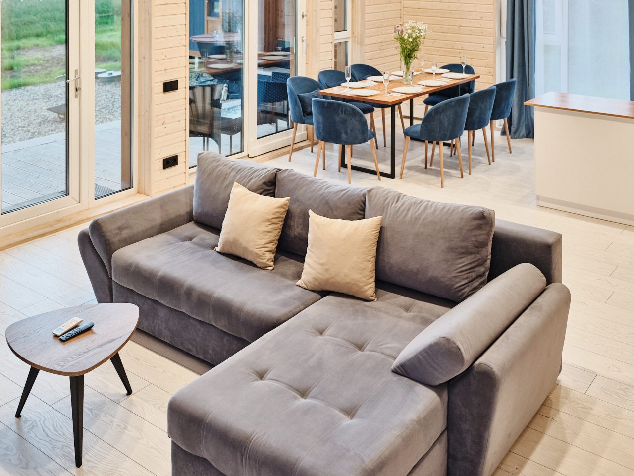 Предлагаемые коттеджи с тремя спальнями, террасой и просторной гостиной-кухней, оснащены комфортными спальными местами (до восьми мест включительно), мебелью, широким диваном, телевизором со Smart TV с сотнями лучших фильмов и сериалов, а также Wi-Fi для доступа к интернету. В ванной комнате есть стиральная машина, набор полотенец, фен и средства личной гигиены.