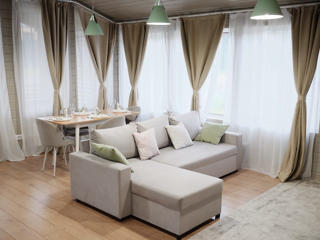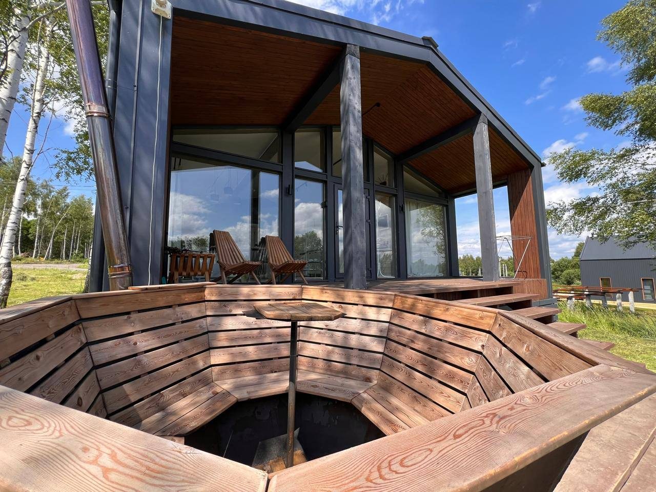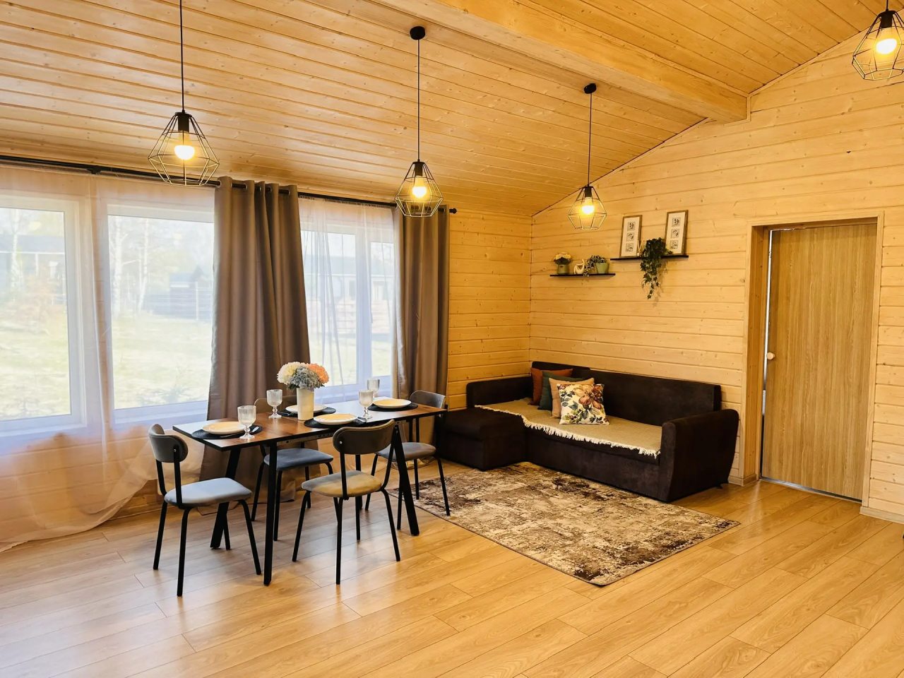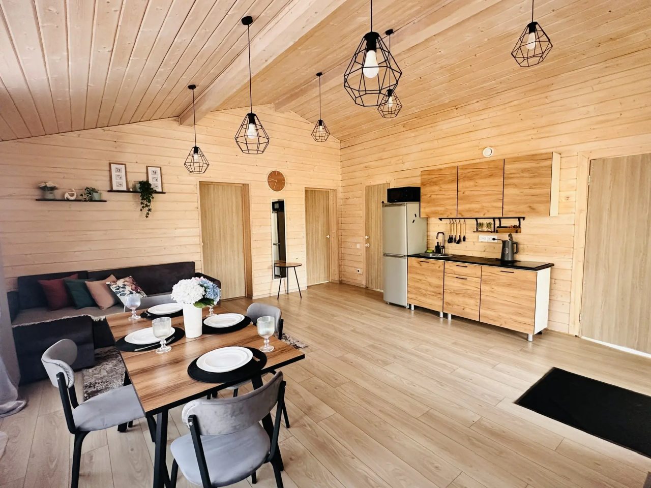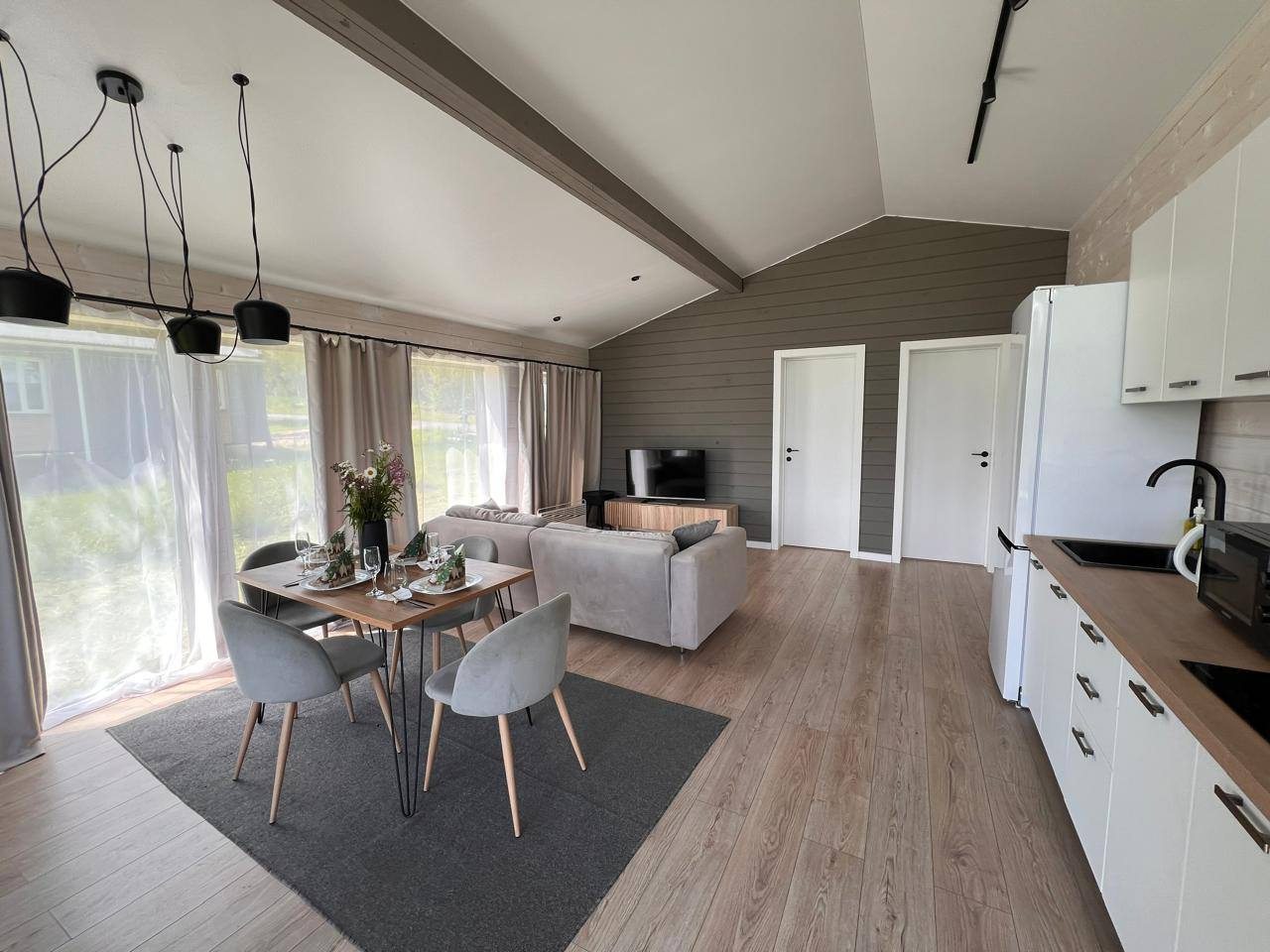Предлагаемые коттеджи с тремя спальнями, террасой и просторной гостиной-кухней, оснащены комфортными спальными местами (до восьми мест включительно), мебелью, широким диваном, телевизором со Smart TV с сотнями лучших фильмов и сериалов, а также Wi-Fi для доступа к интернету. В ванной комнате есть стиральная машина, набор полотенец, фен и средства личной гигиены.