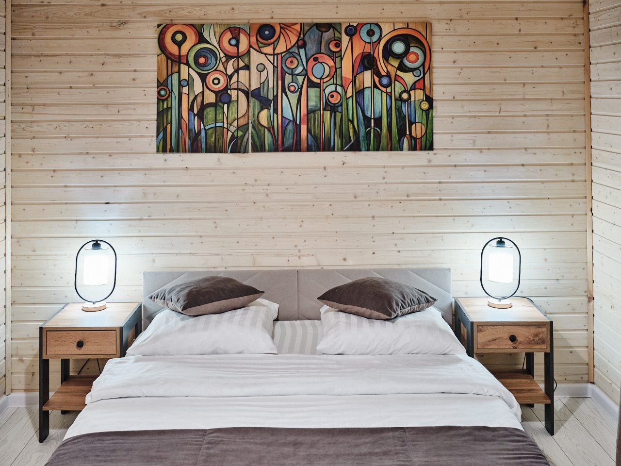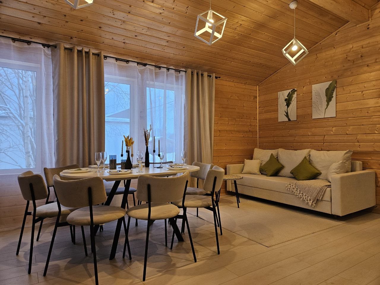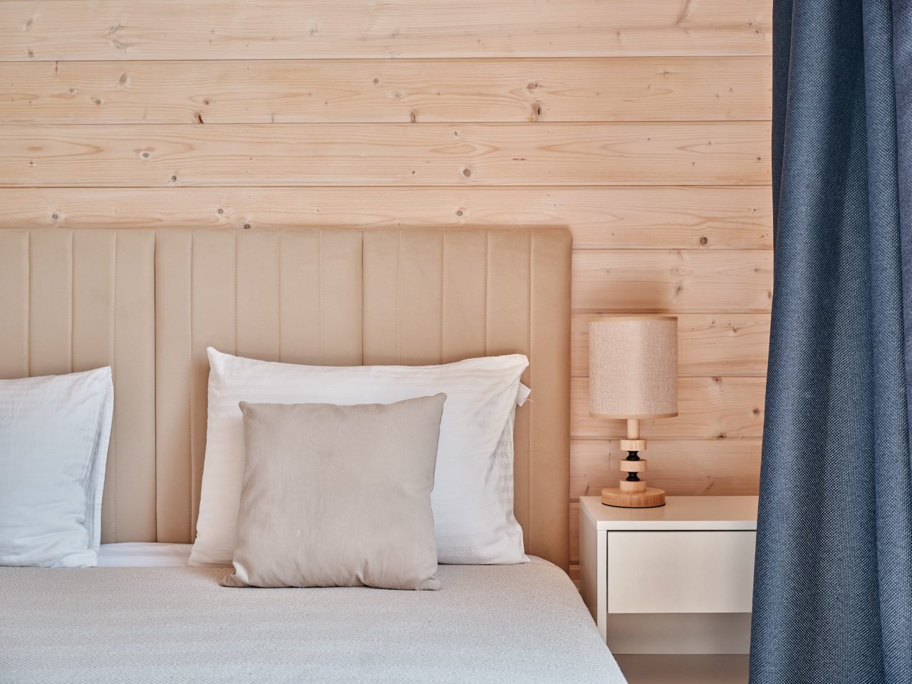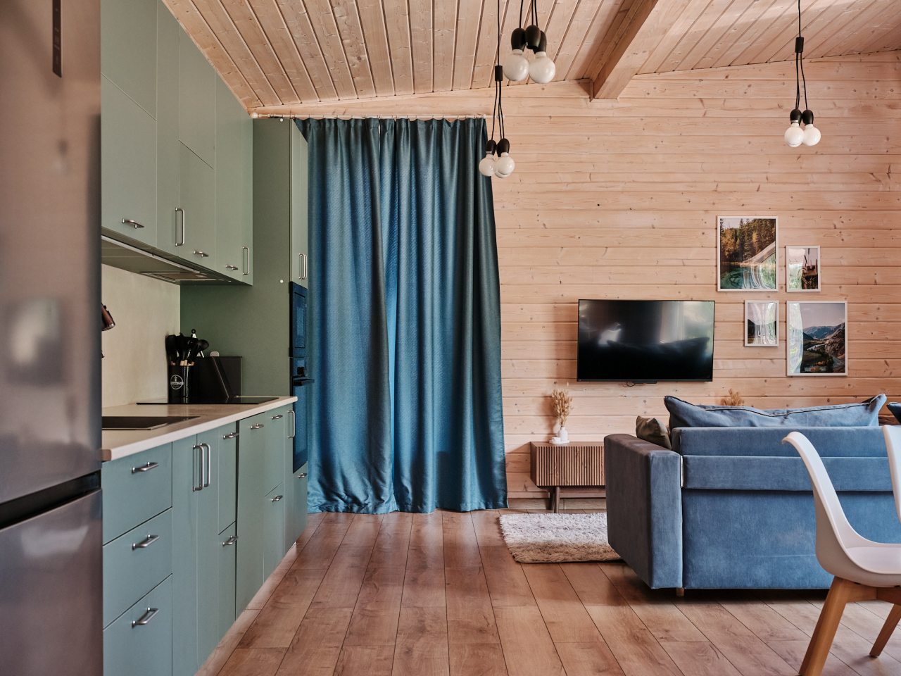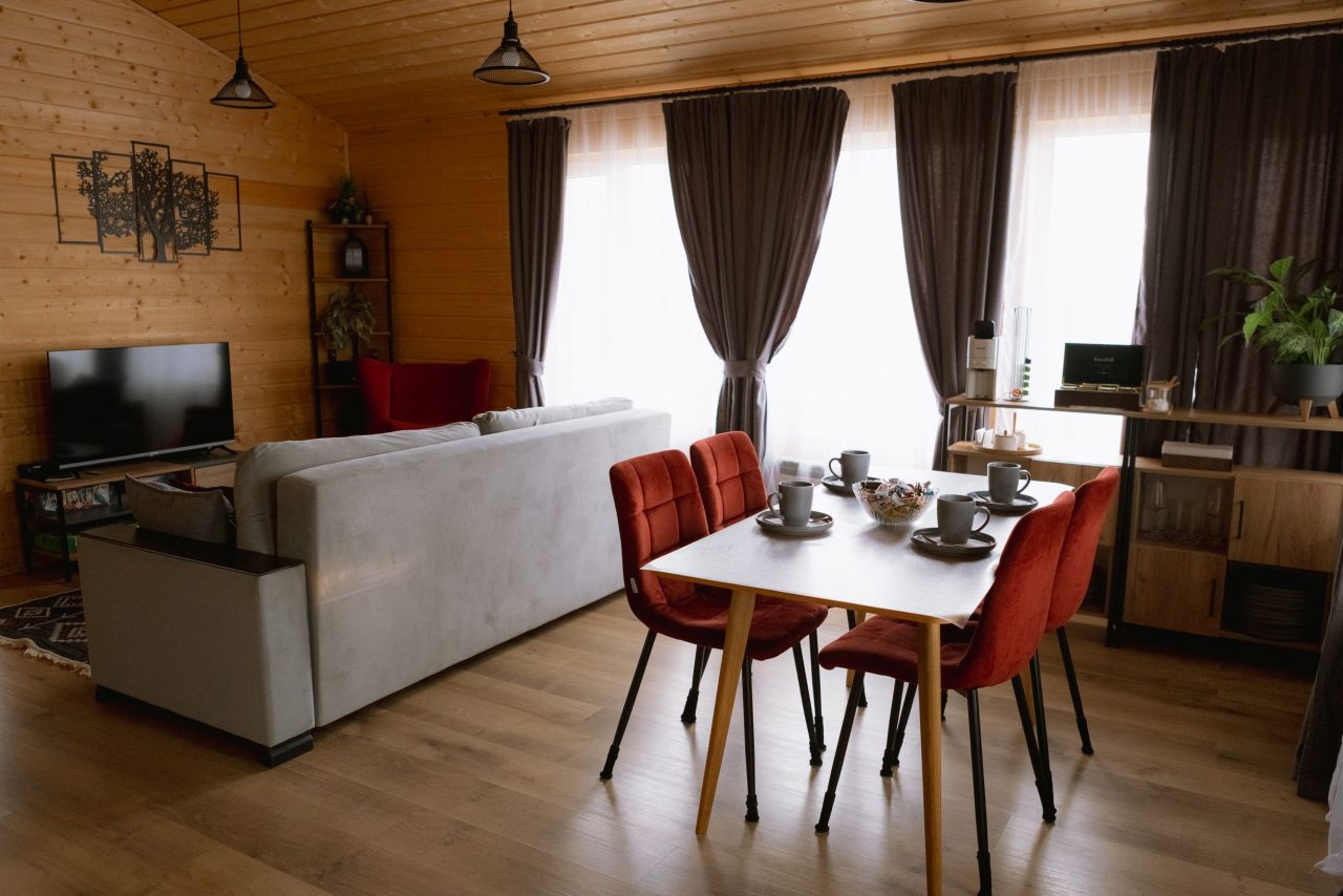 Предлагаемые коттеджи с тремя спальнями, террасой и просторной гостиной-кухней, оснащены комфортными спальными местами (до восьми мест включительно), мебелью, широким диваном, телевизором со Smart TV с сотнями лучших фильмов и сериалов, а также Wi-Fi для доступа к интернету. В ванной комнате есть стиральная машина, набор полотенец, фен и средства личной гигиены.
