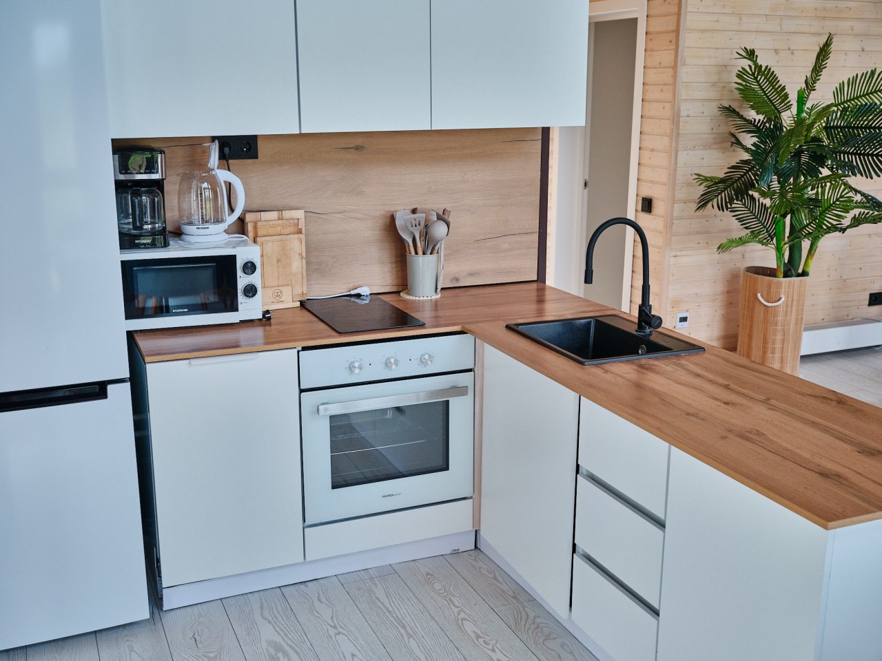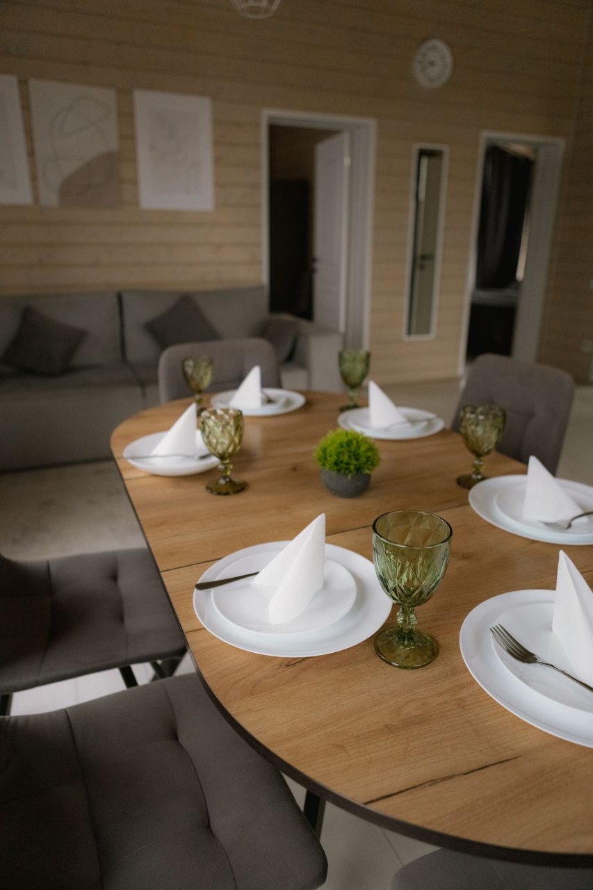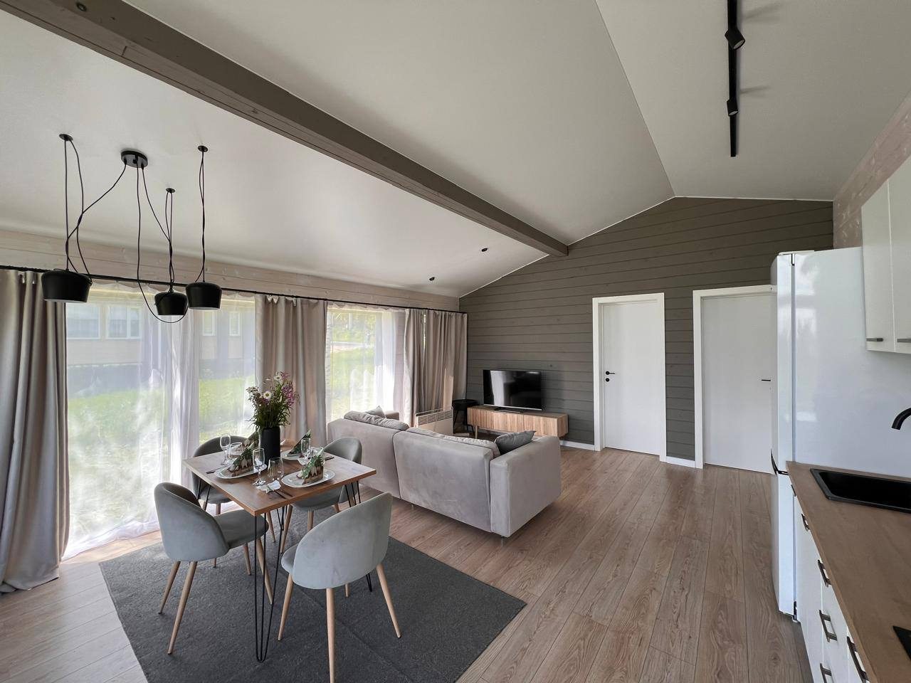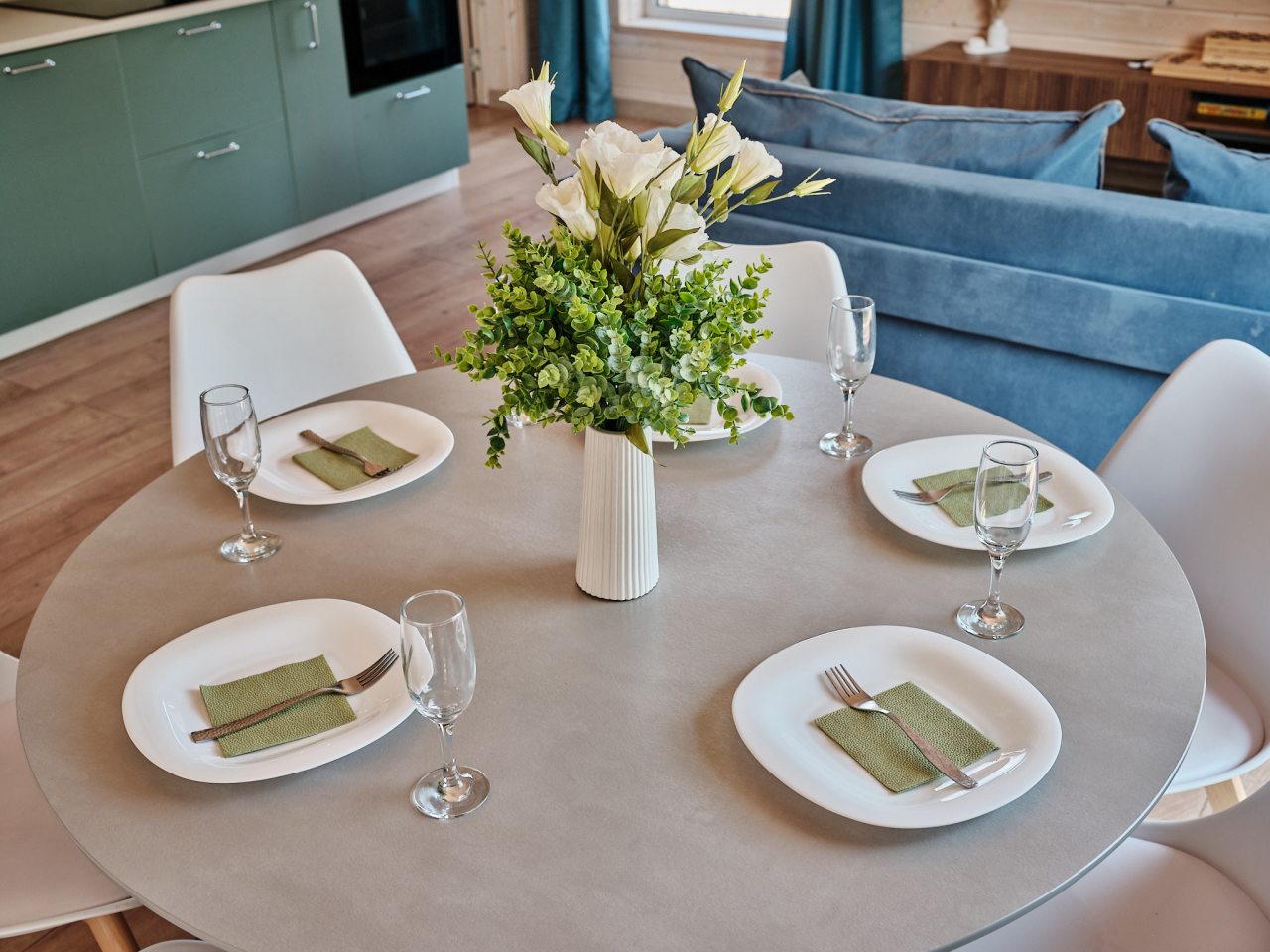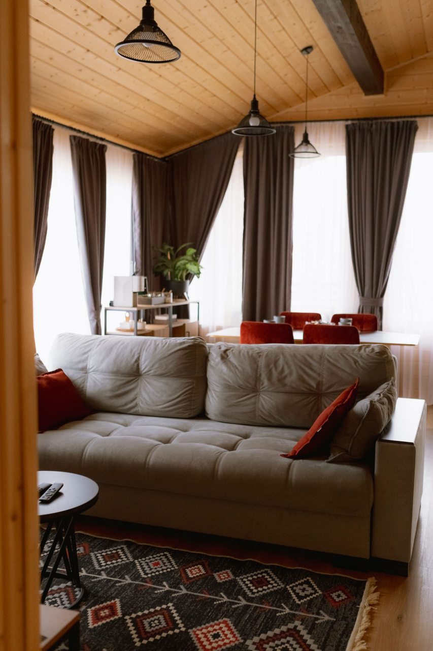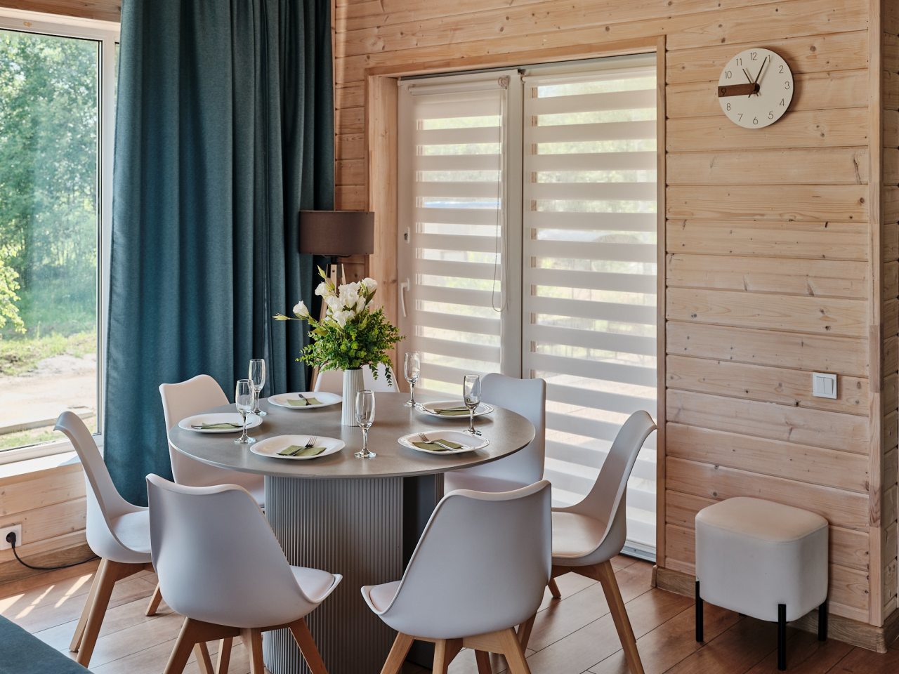 Предлагаемые коттеджи с тремя спальнями, террасой и просторной гостиной-кухней, оснащены комфортными спальными местами (до восьми мест включительно), мебелью, широким диваном, телевизором со Smart TV с сотнями лучших фильмов и сериалов, а также Wi-Fi для доступа к интернету. В ванной комнате есть стиральная машина, набор полотенец, фен и средства личной гигиены.