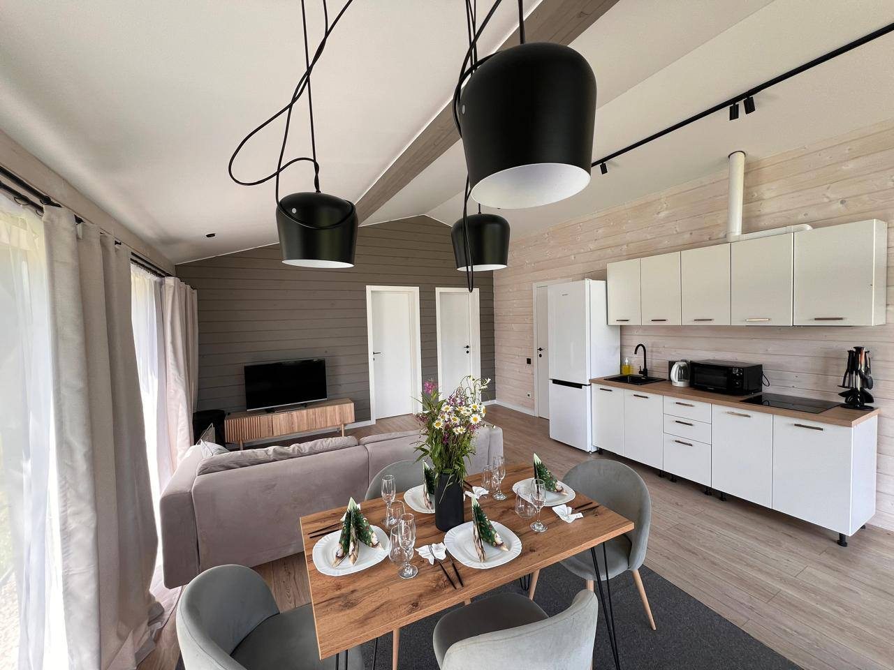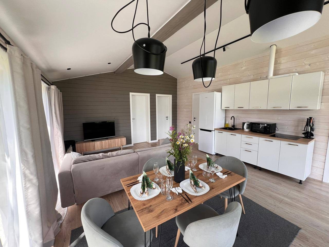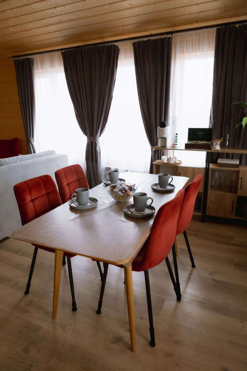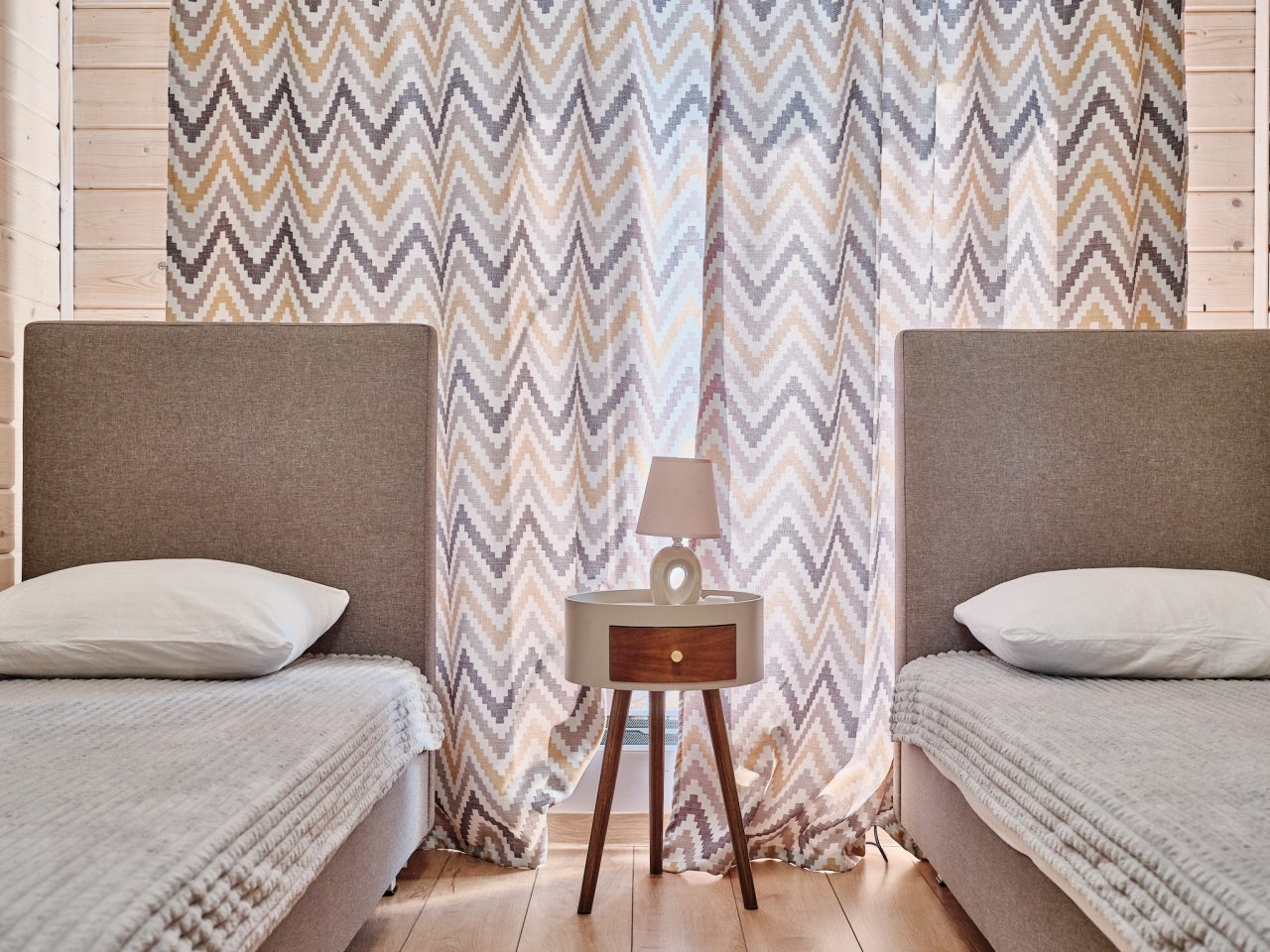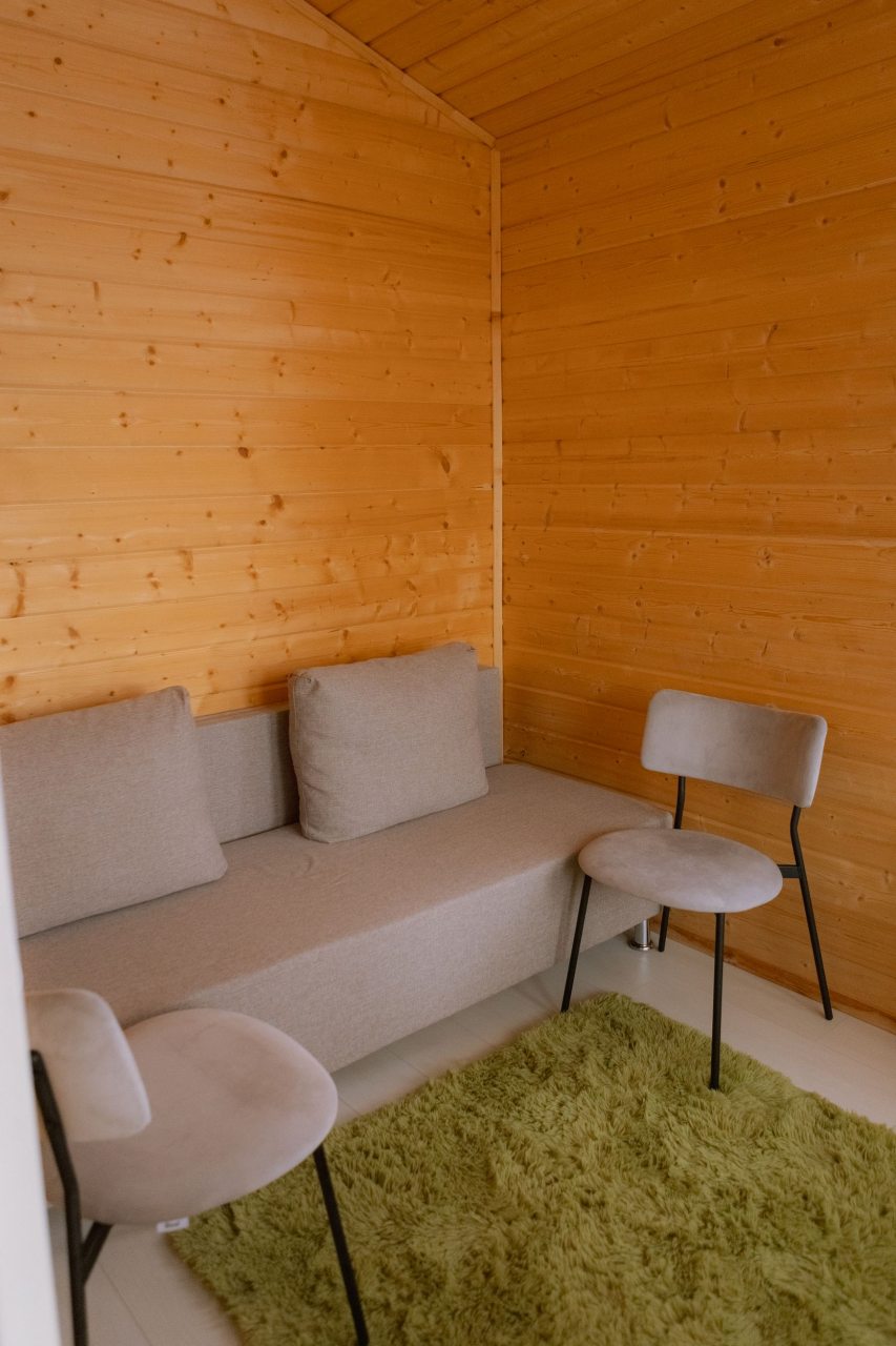 Предлагаемые коттеджи с тремя спальнями, террасой и просторной гостиной-кухней, оснащены комфортными спальными местами (до восьми мест включительно), мебелью, широким диваном, телевизором со Smart TV с сотнями лучших фильмов и сериалов, а также Wi-Fi для доступа к интернету. В ванной комнате есть стиральная машина, набор полотенец, фен и средства личной гигиены.