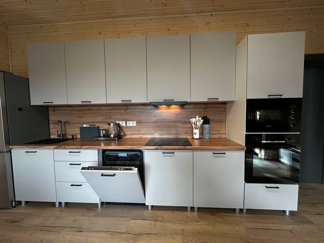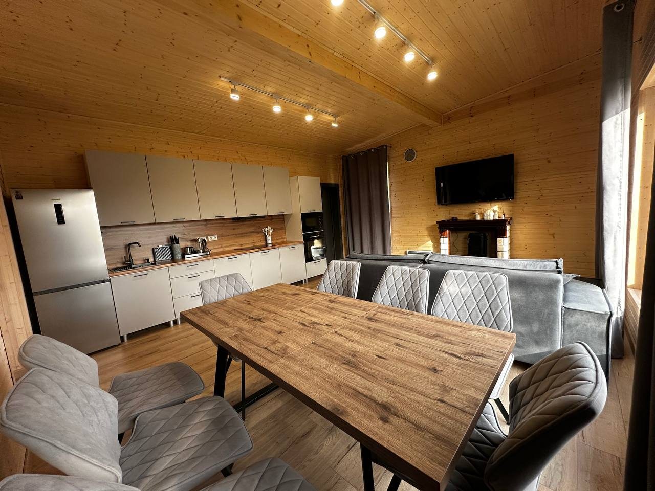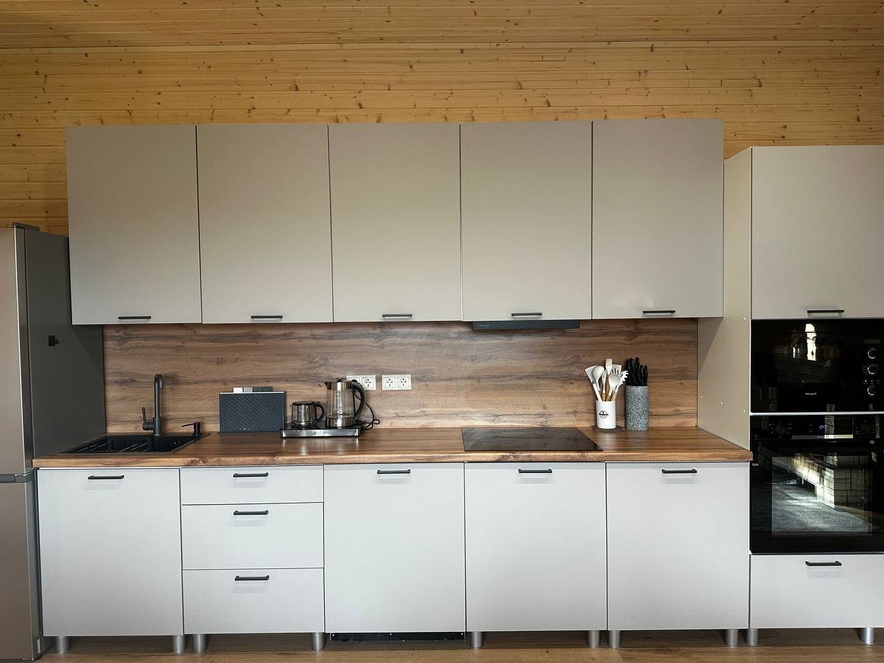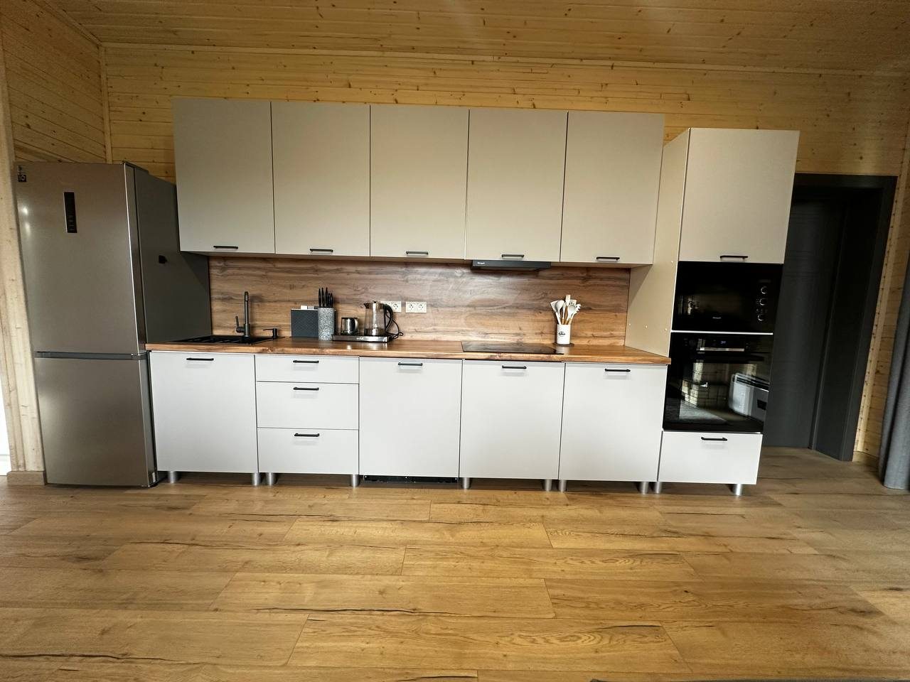 Кухня оборудована современной техникой и посудой: холодильником, плитой, посудой и большим обеденным столом, чтобы приготовление еды приносило только удовольствие. Также на территории дома большая оборудованная зона отдыха с мангалом.