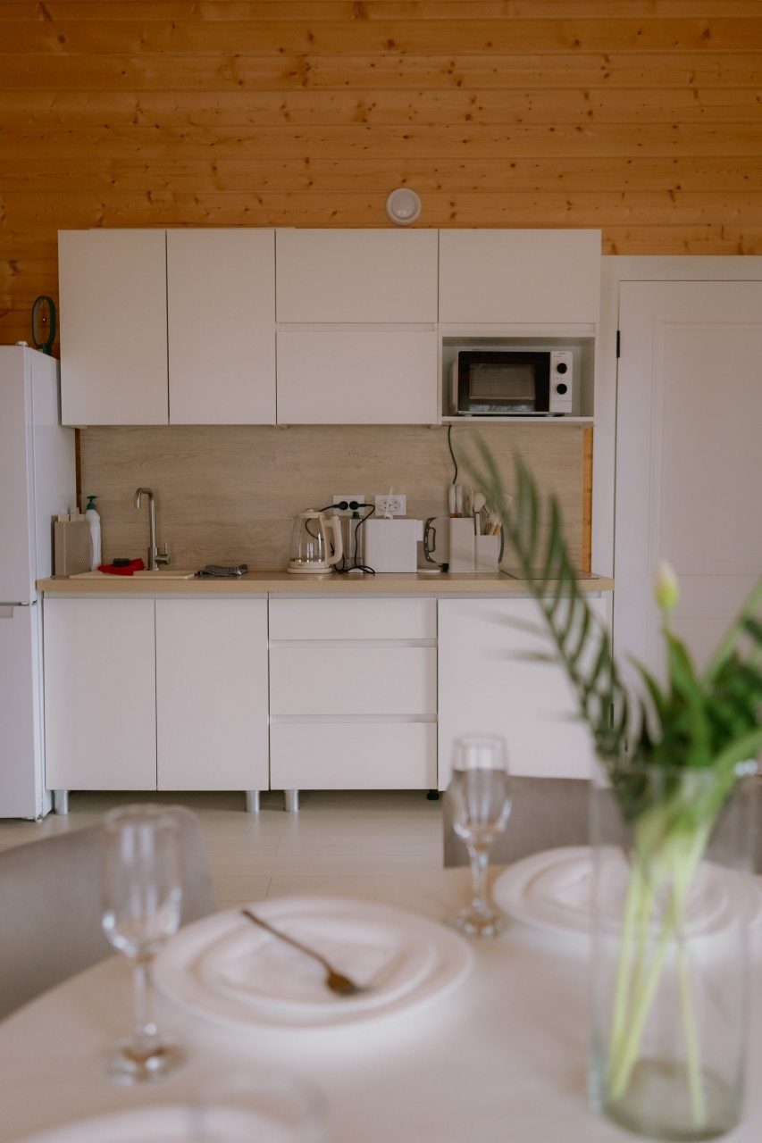 В наличии есть кухня, где можно готовить еду. Я оценила ее чистоту, так что мне нравилось там готовить – все современное, полный набор посуды, ощущение, что ты у себя дома. В целом, сложилось впечатление, что за территорией ухаживают, тут следят не просто за порядком, но стараются усовершенствовать пространство. Согласитесь, что в подобные места хочется возвращаться.
