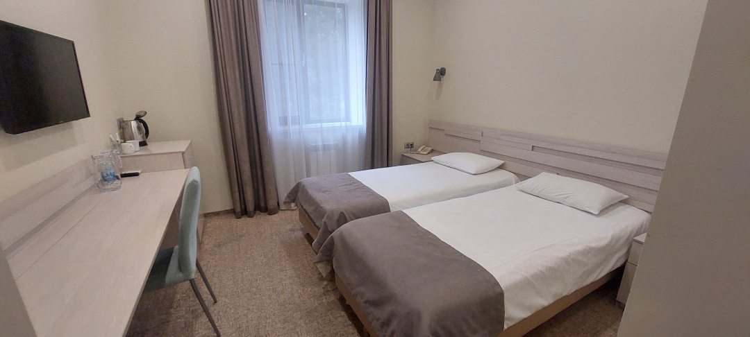 Из недостатков: нет уборки,даже если ставишь табличку. В номере нет тапочек, наборов с пастой,бумагу дают,если только просить. Грязно в номере изначально. Слышимость сильная. Интернет плохой.