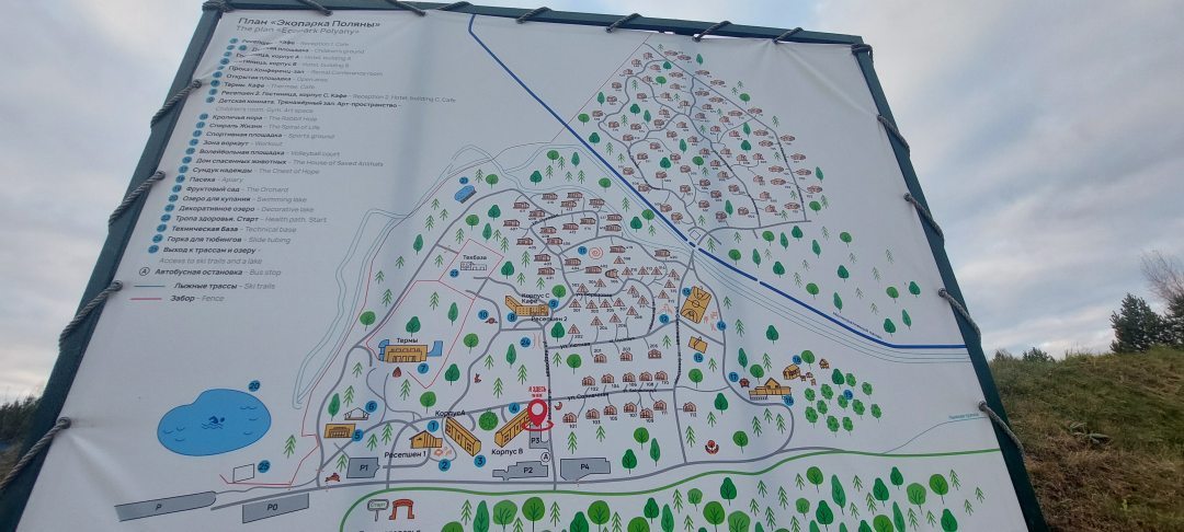 Возможность погулять на свежем воздухе, помедитировать, поплавать в термах, попариться. Важно, что можно останавливаться с собакой. Правильная атмосфера, и очень впечатляют и заставляют задуматься интересные плакатики по всей территории. На них интересные изречения